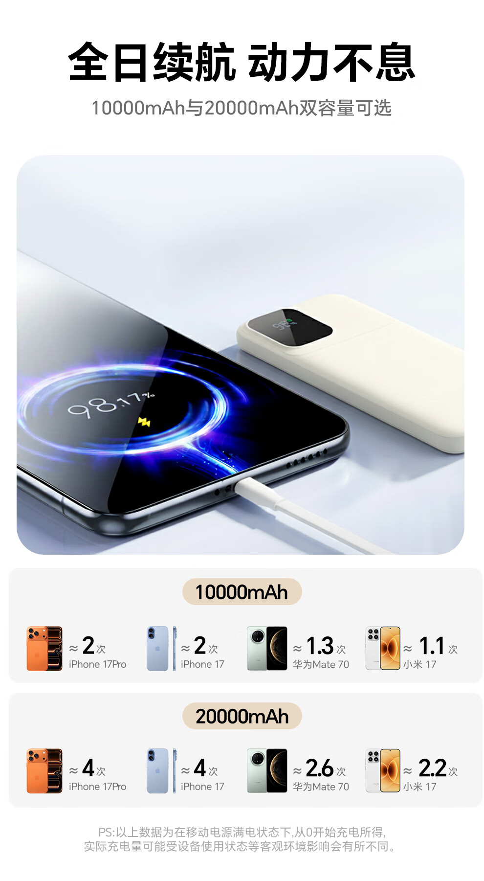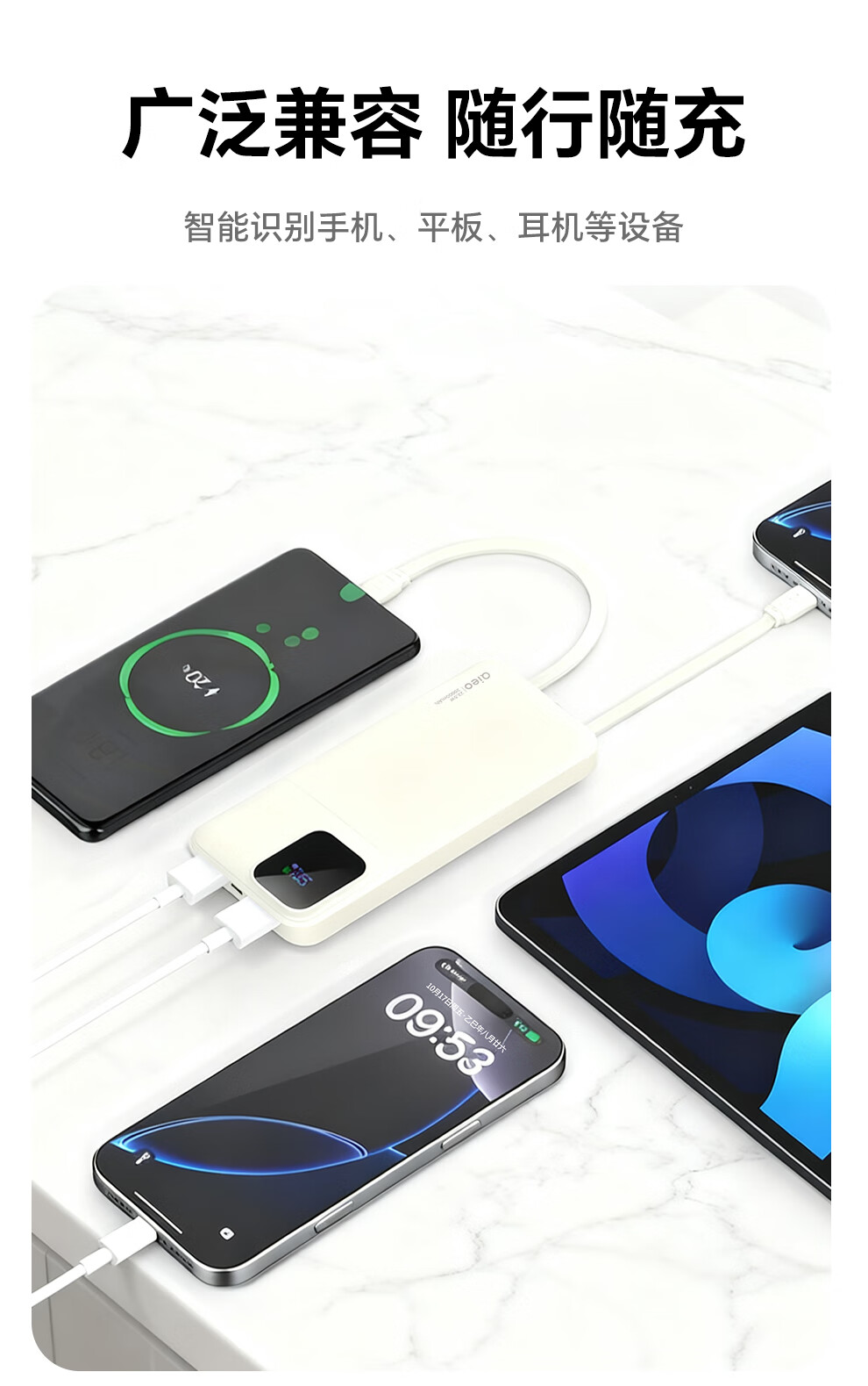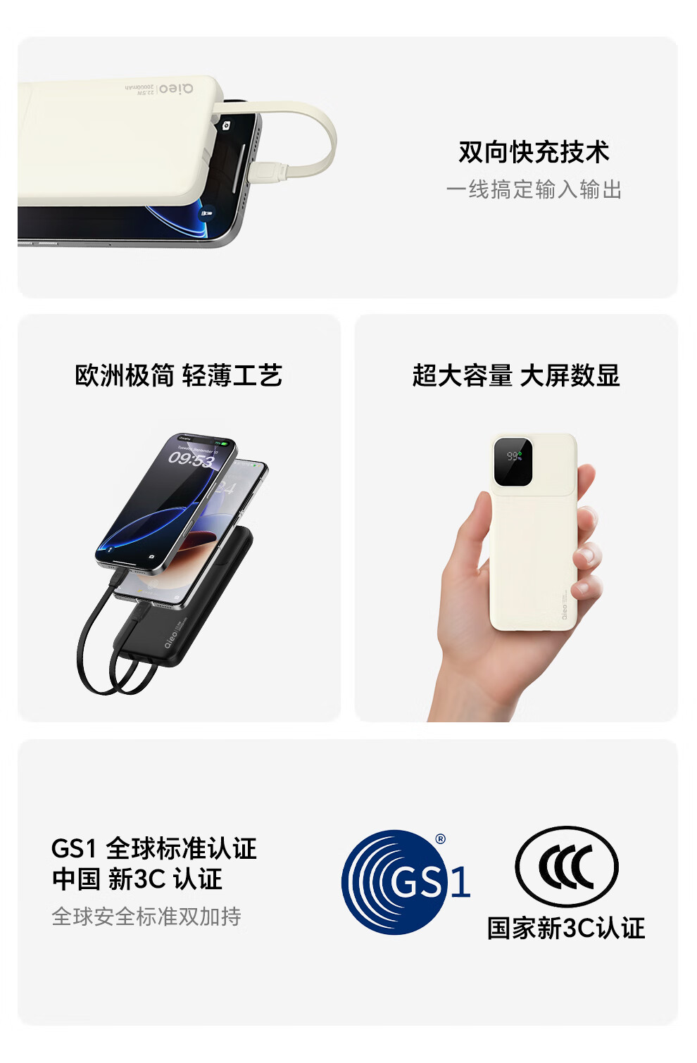 Qieo【新3c认证丨百万热销】充电宝20000毫安 可上飞机自带双线轻薄大容量 超级快充小米华为苹果手机 新3C【2万毫安|超级快充】标准版 【新国家3C认证|最快今日达】