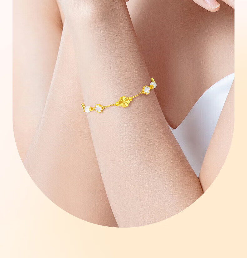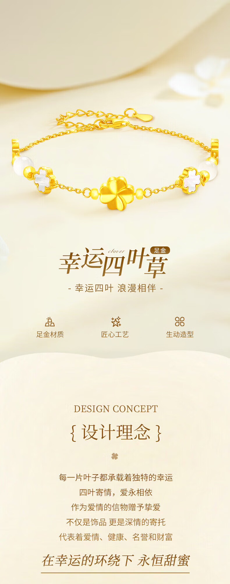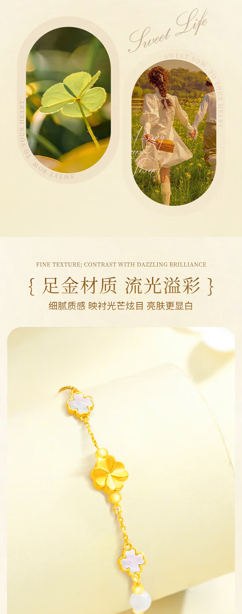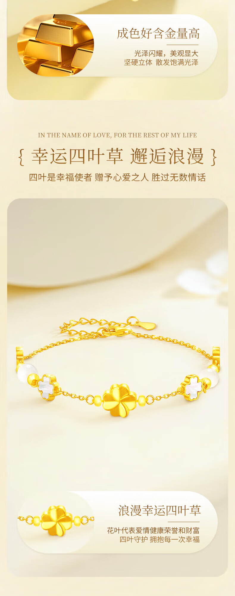 老凤祥黄金手链女款999足金四叶草转运珠手链本命年生日送女友老婆礼物 刻字贺卡/幸运四叶草转运珠【配银珠链+品牌礼盒】