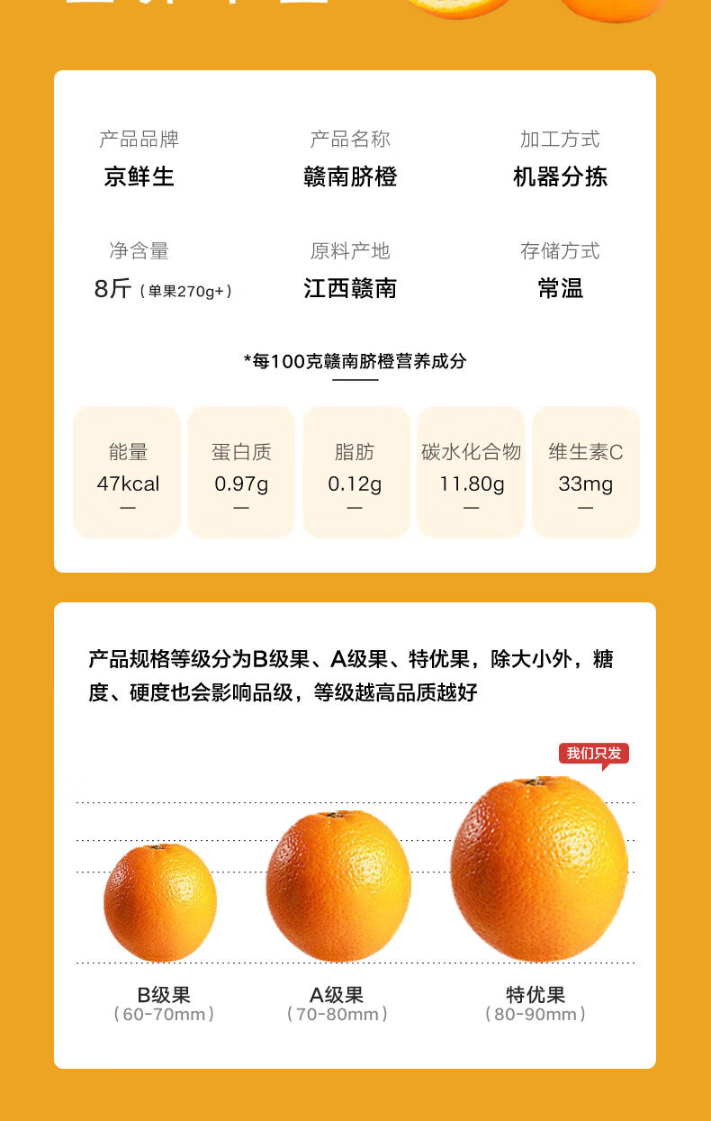 京鲜生 江西赣南脐橙 净重8斤 单果150g+ 生鲜水果 源头直发包邮