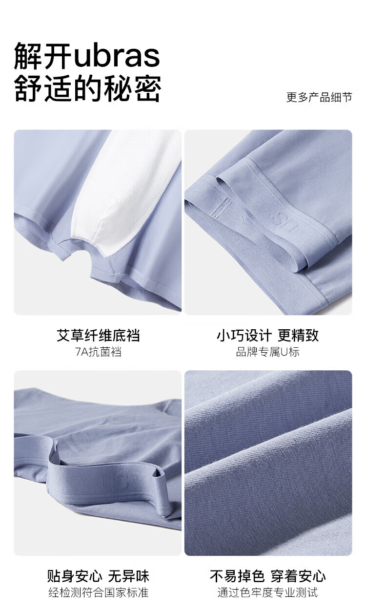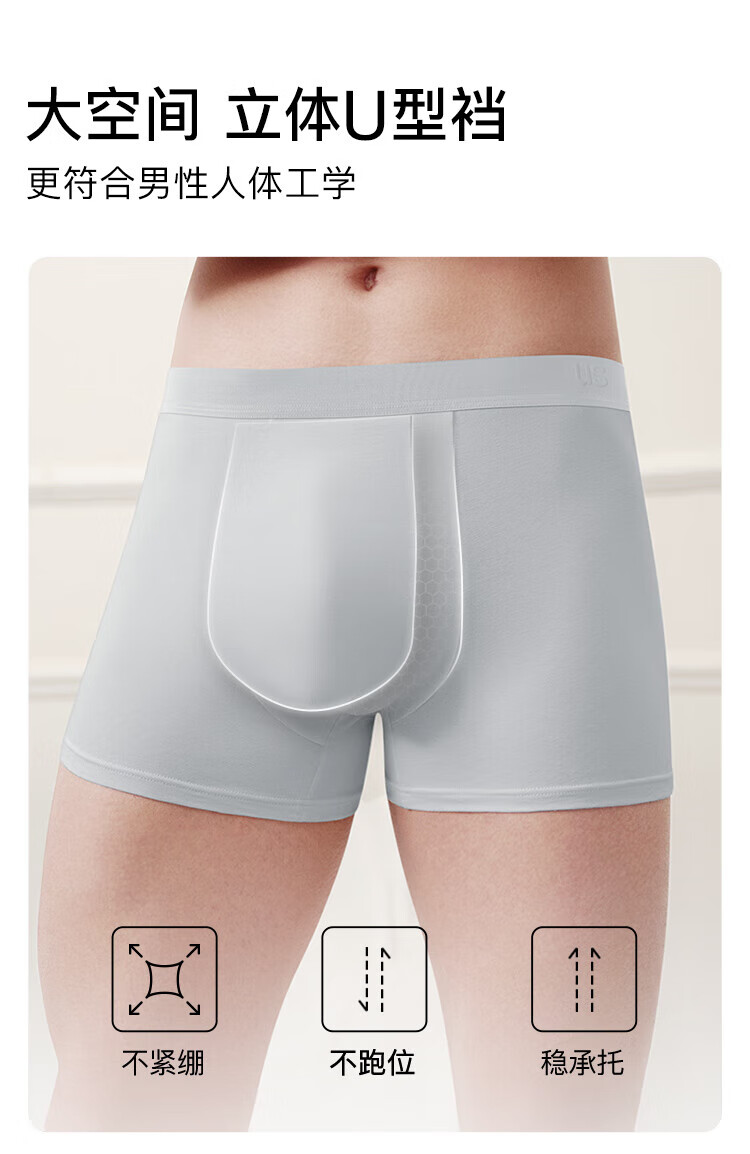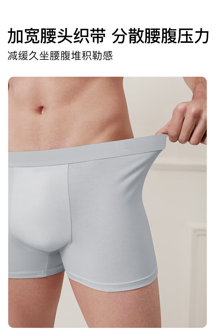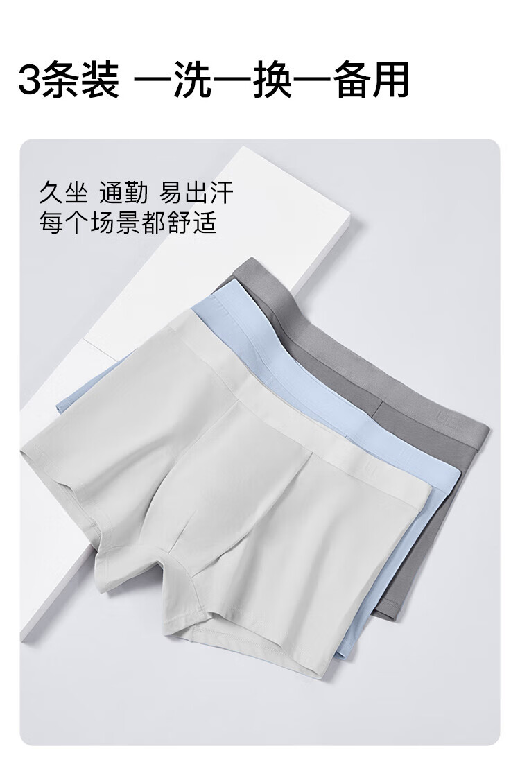 ubras【棉7A抗菌裆】网眼裆内裤男士舒适透气中腰四角裤三条装 奶盐蓝色+椰青灰色+鸽羽灰色 3条 L