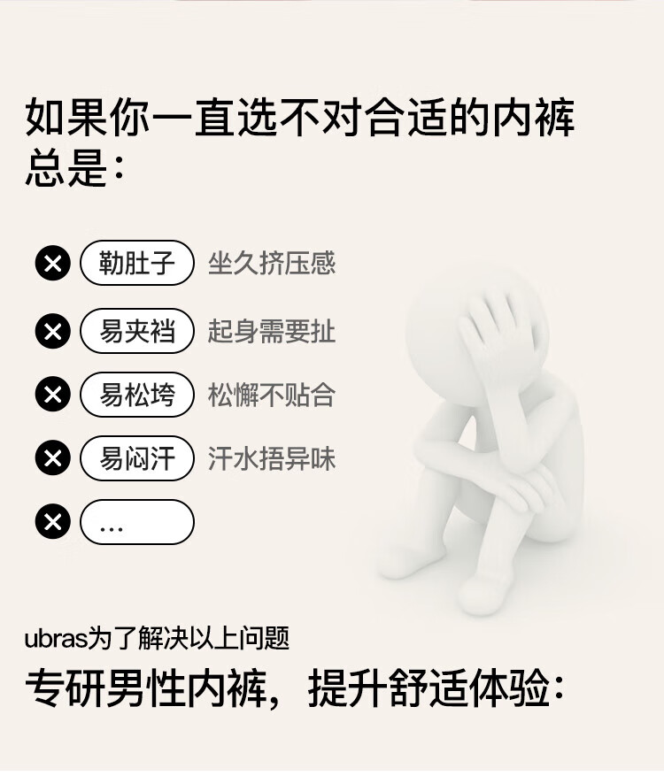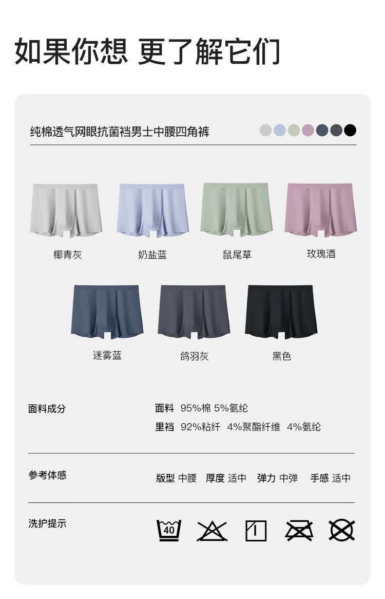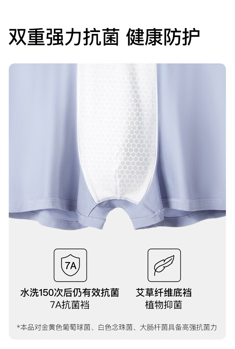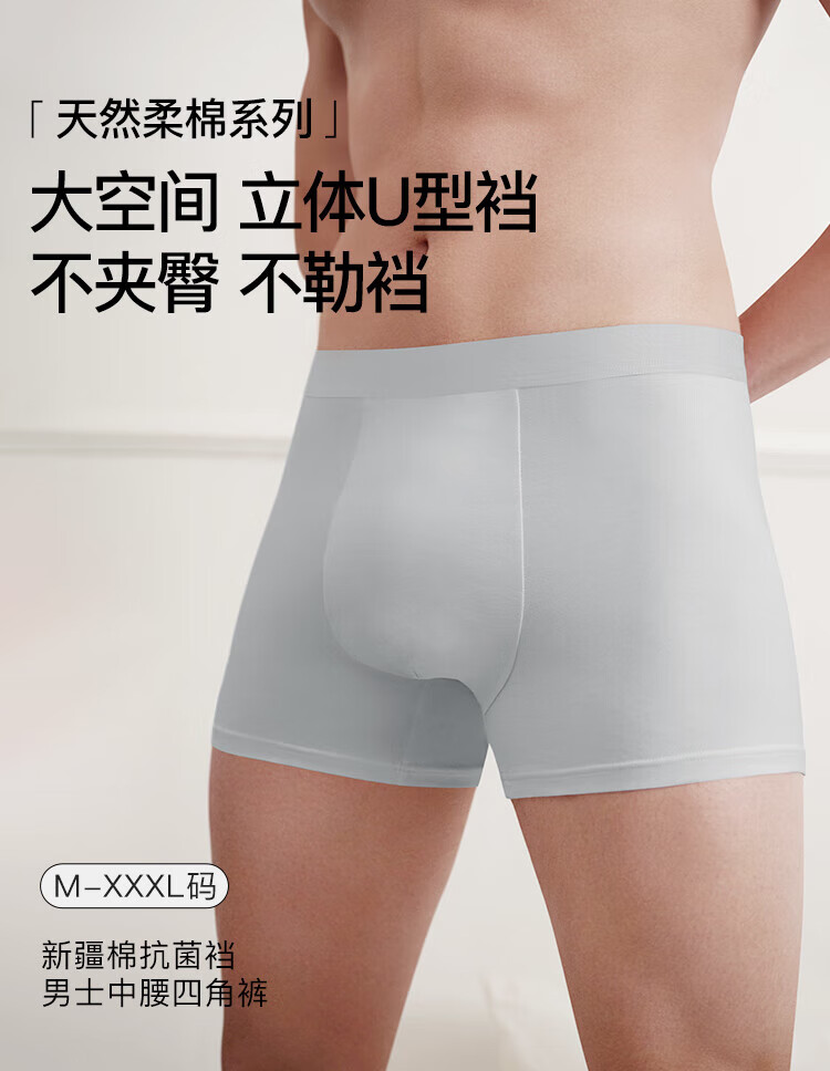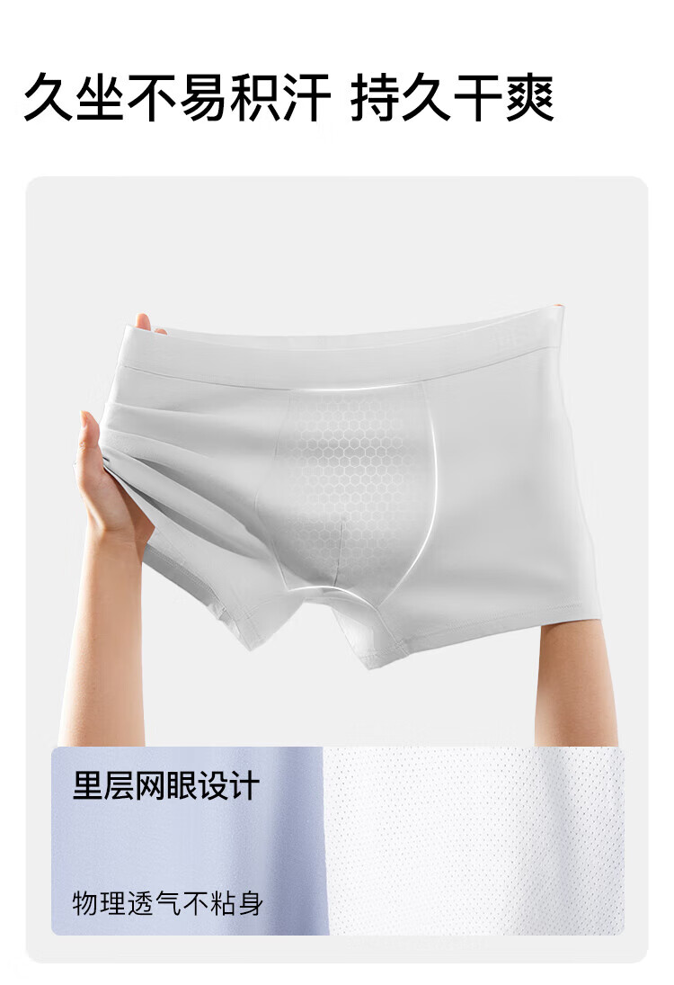 ubras【棉7A抗菌裆】网眼裆内裤男士舒适透气中腰四角裤三条装 奶盐蓝色+椰青灰色+鸽羽灰色 3条 L