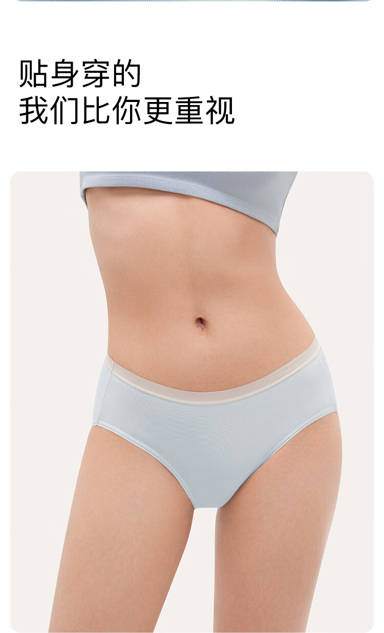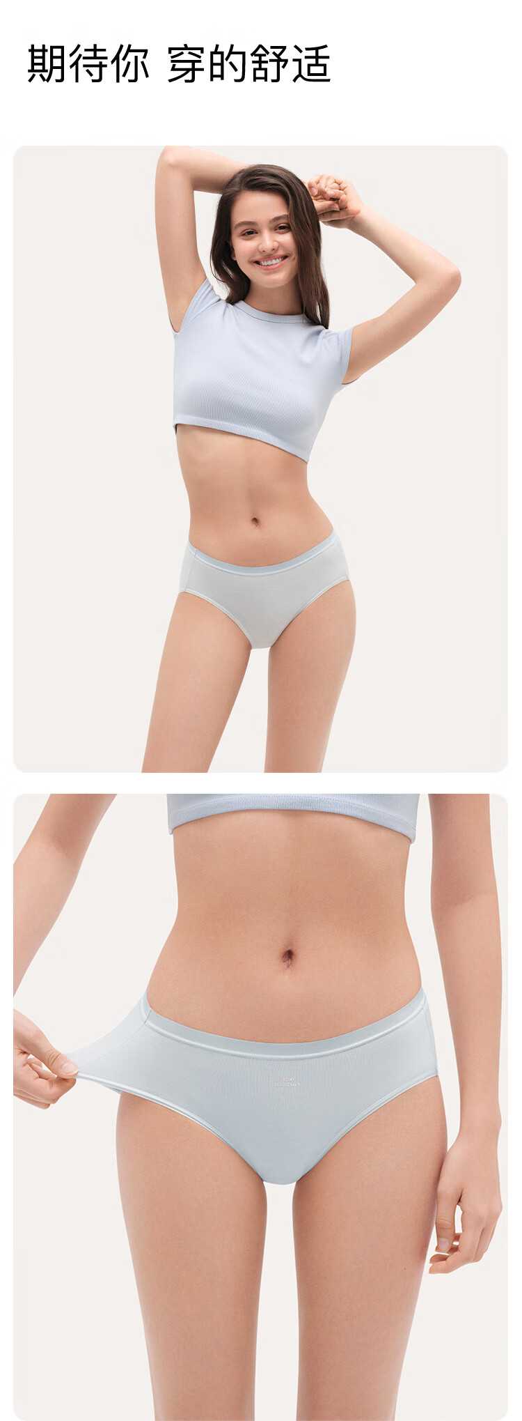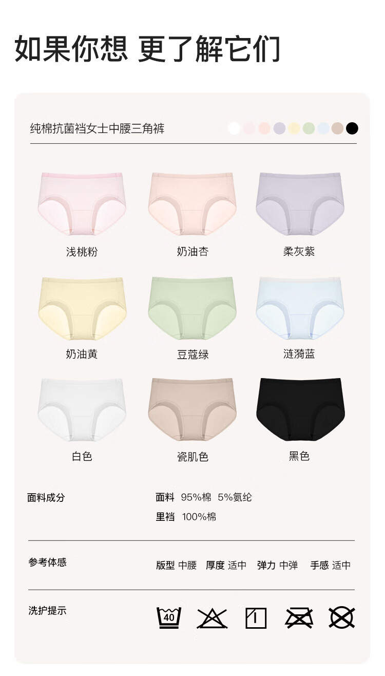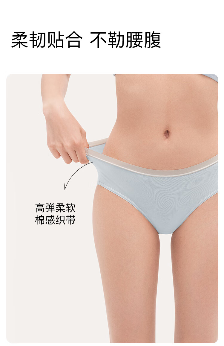 ubras【纯棉抗菌裆】亲肤透气女士内裤中腰三角裤7A抗菌(三条装) 豆蔻绿色+浅桃粉色+奶油杏色 3条 M