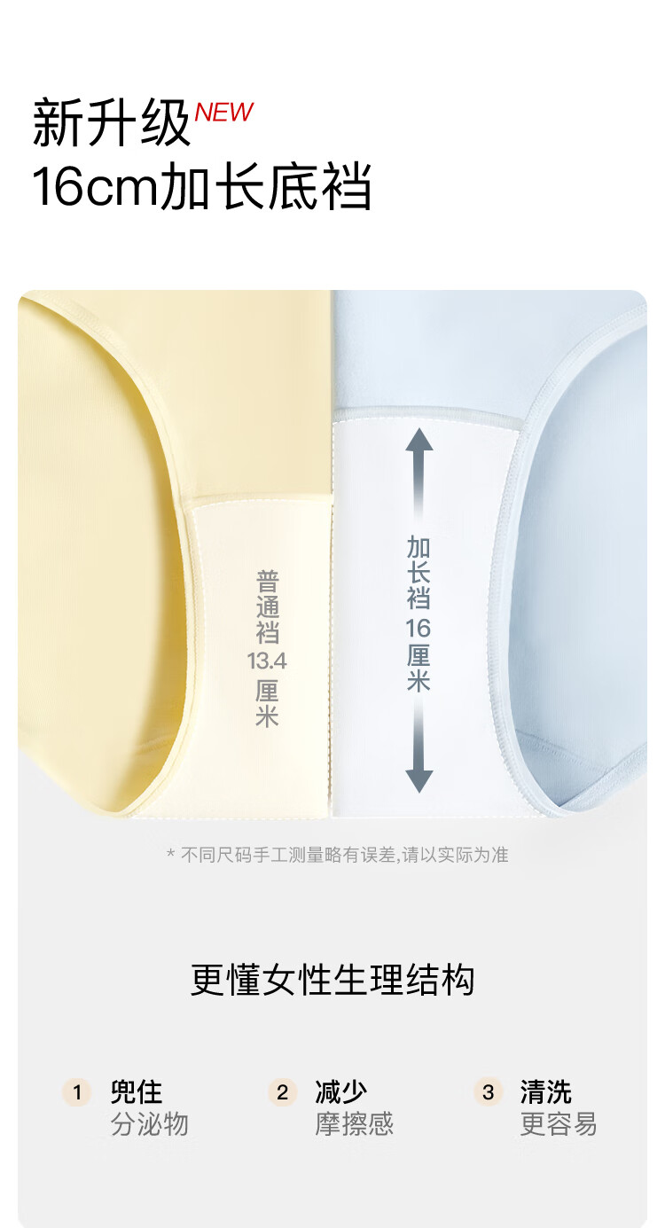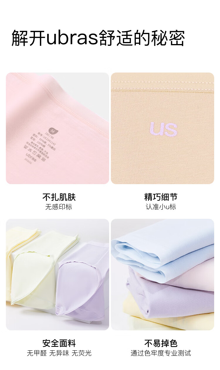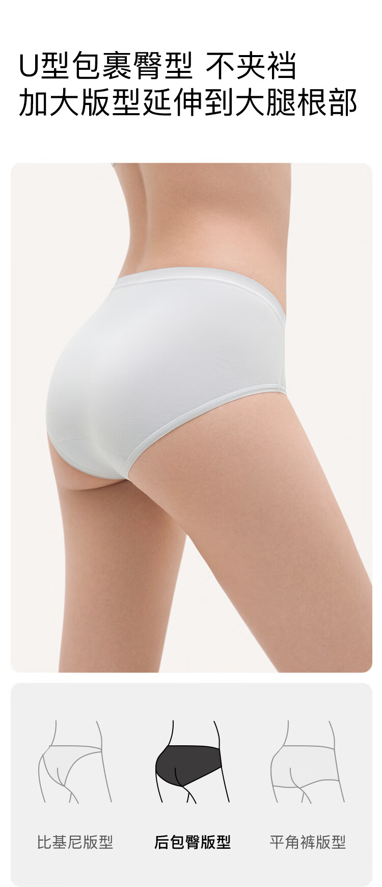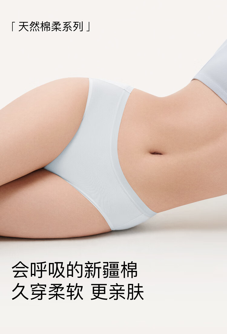 ubras【纯棉抗菌裆】亲肤透气女士内裤中腰三角裤7A抗菌(三条装) 豆蔻绿色+浅桃粉色+奶油杏色 3条 M