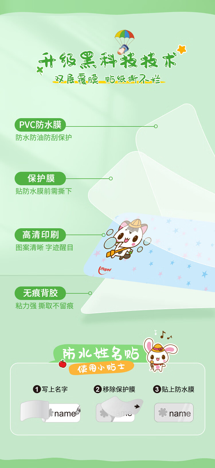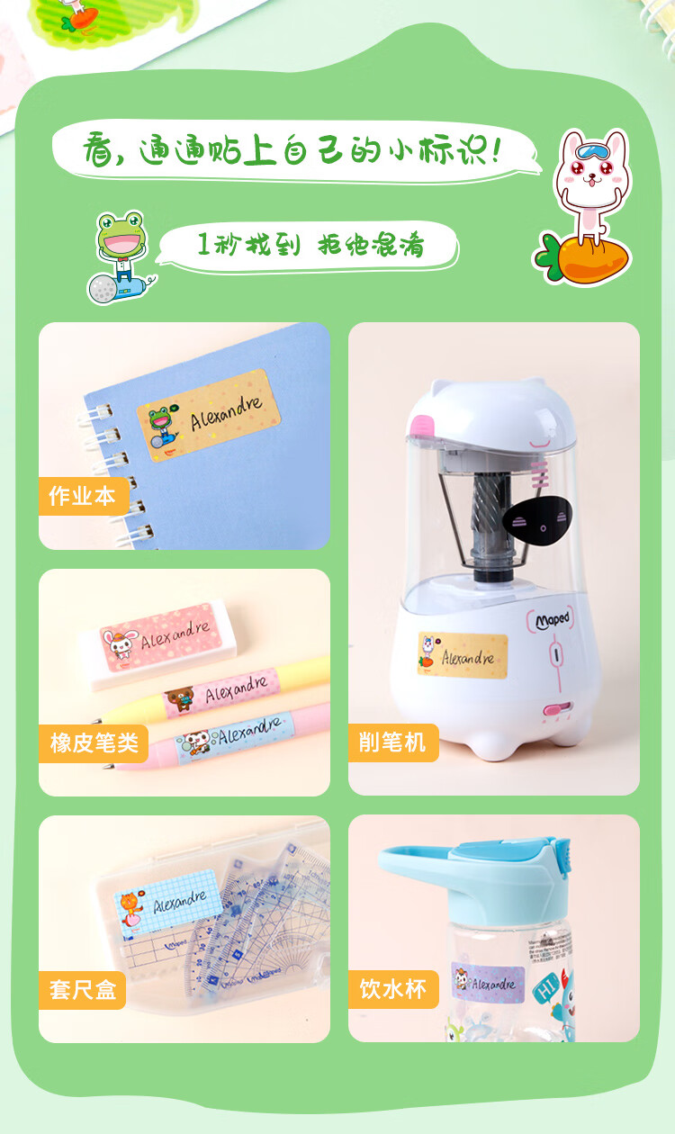马培德(Maped)卡通防水姓名贴 儿童幼儿学生班级名字贴纸 即用即贴 无痕手写标签 775111CH随机图案【16枚/张】