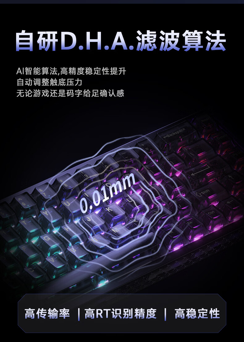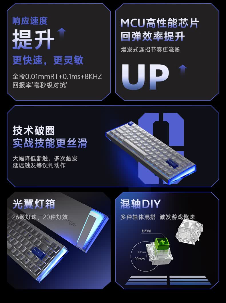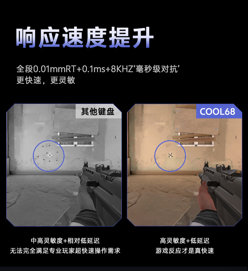 达尔优Cool68 磁轴电竞游戏机械键盘 68键客制化有线侧翼灯光透明键盘三角洲 FPS网页双驱动炫酷灯箱 透明版(冰刃磁轴)