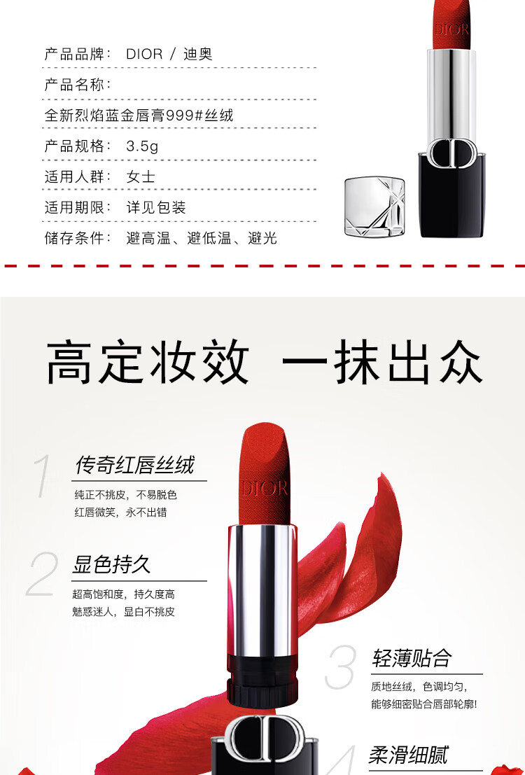 迪奥(Dior)烈艳蓝金唇膏 丝绒999 3.5g