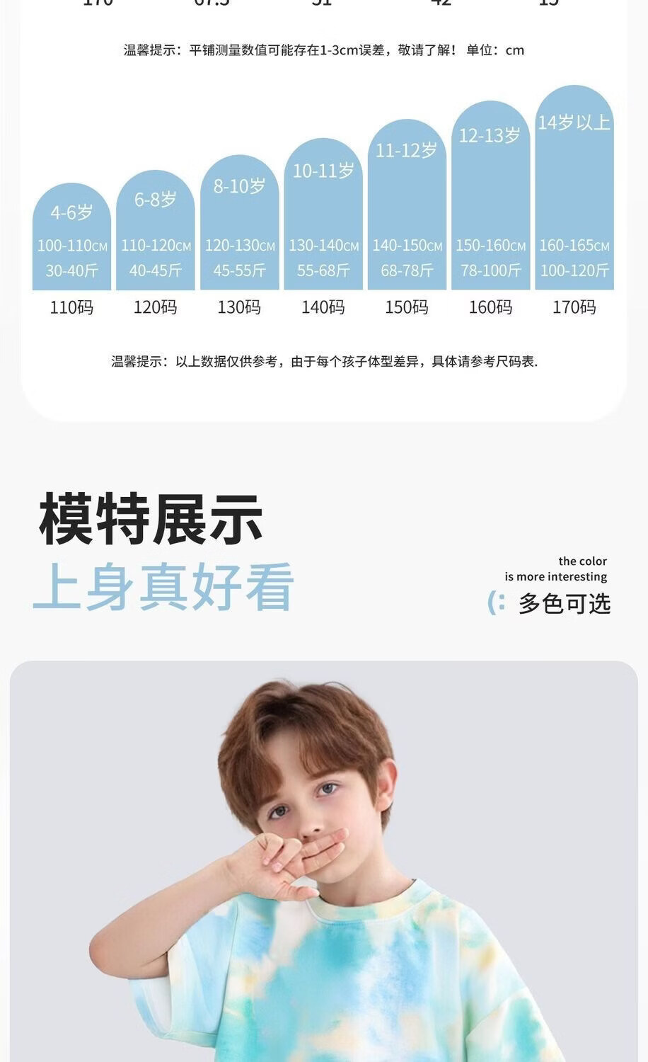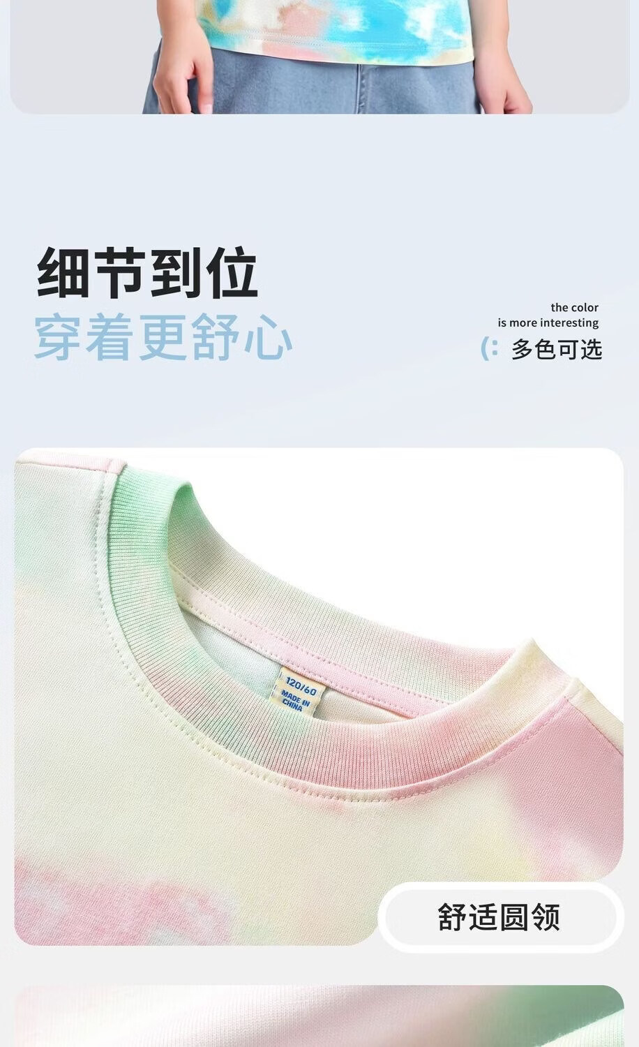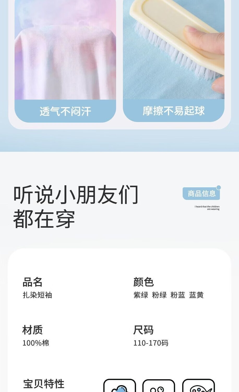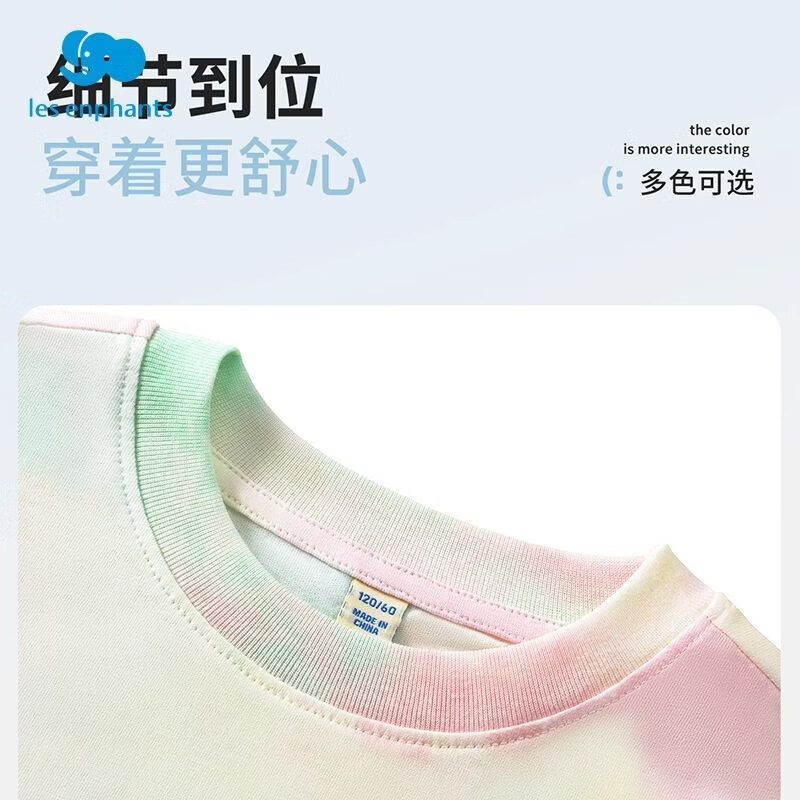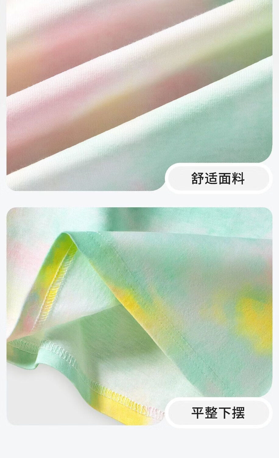唐狮(TonLion)女童短袖t恤扎染设计童装网红同款小女孩夏季纯棉 紫绿棉 110