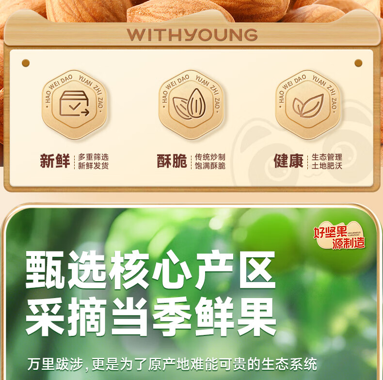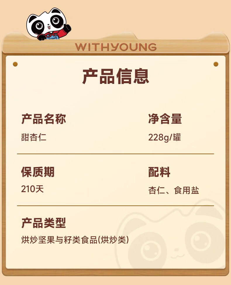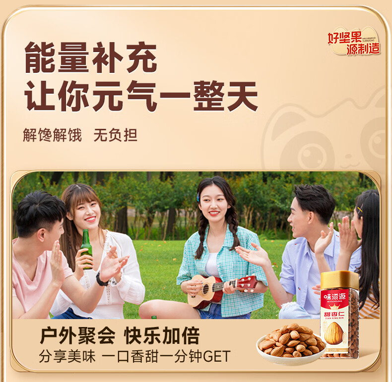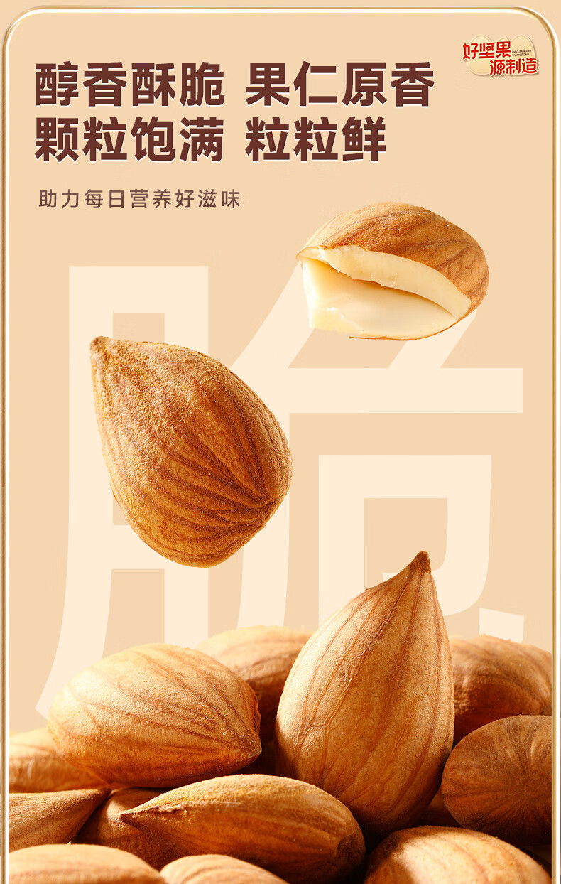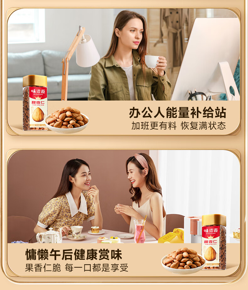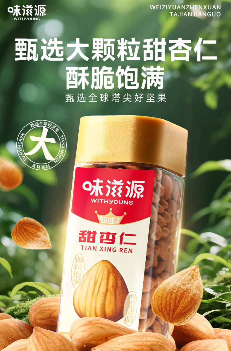 味滋源甜杏仁 南杏仁生甜不苦烘焙原味坚果可做杏仁露果干年货 228g/罐*2