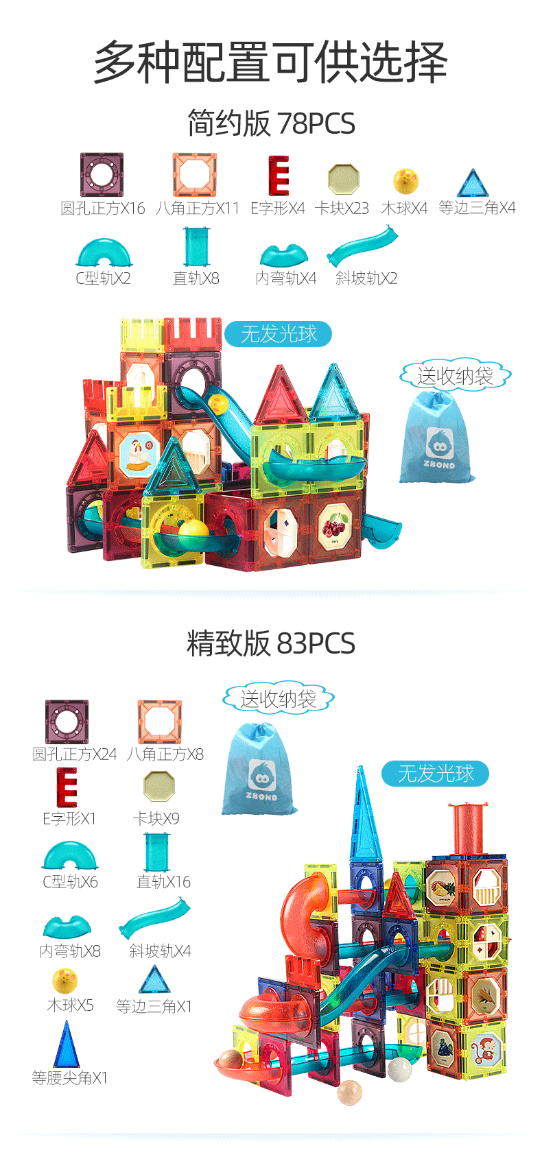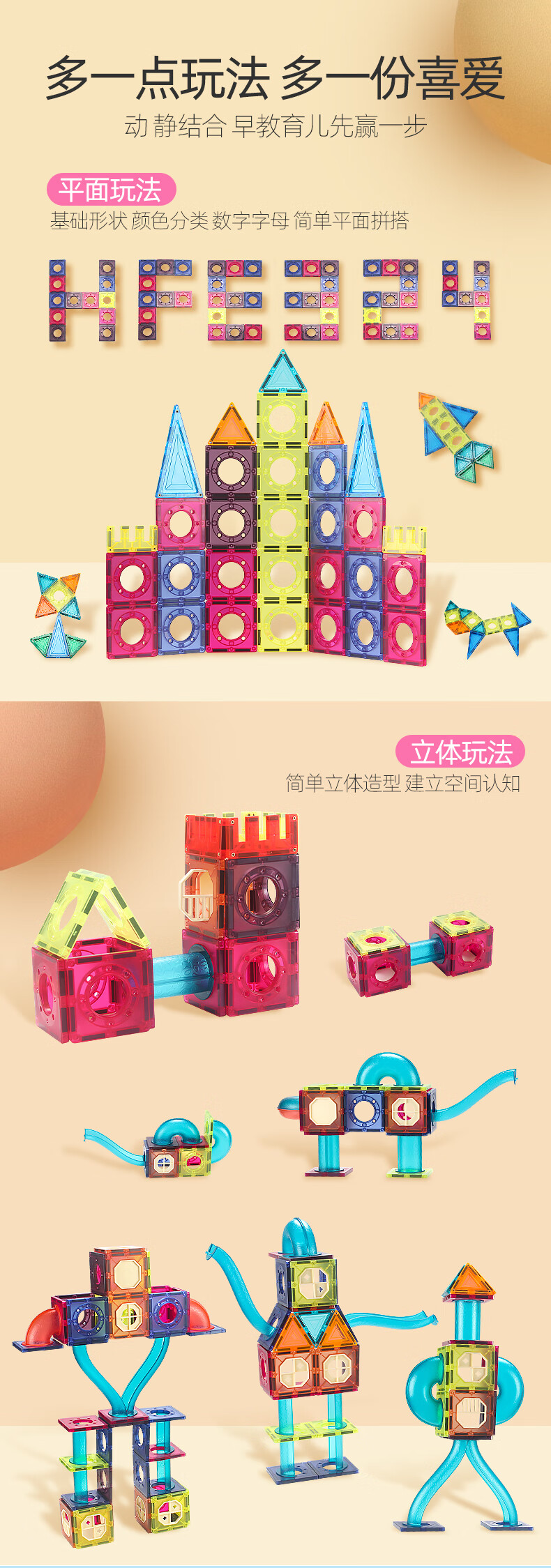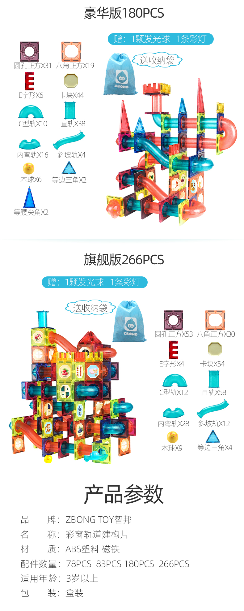 智邦(ZBOND TOY)彩窗轨道磁力片儿童智力玩具动脑拼装磁铁积木多功能宝宝男孩女孩 【旗舰版】轨道磁力片266pcs