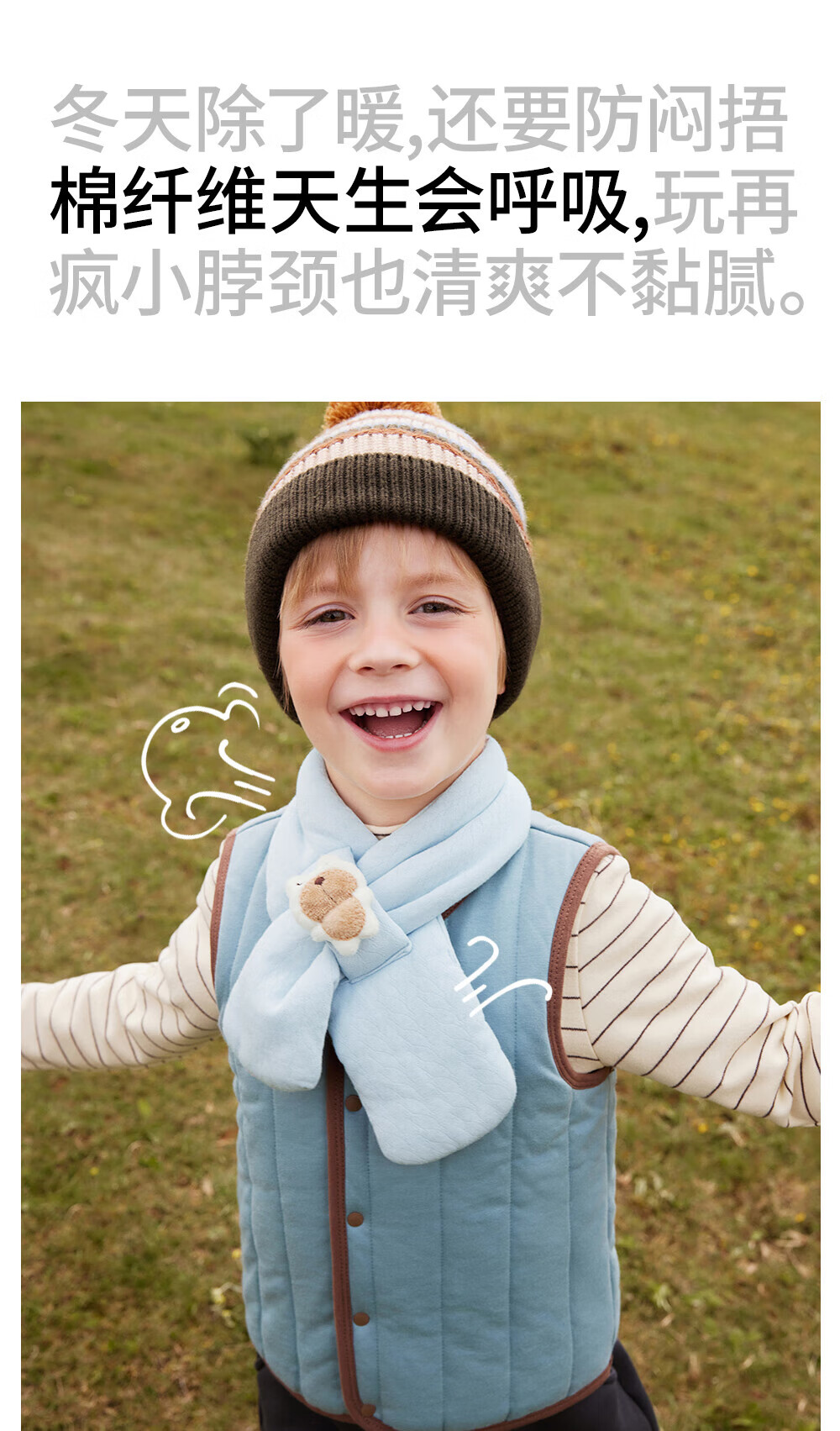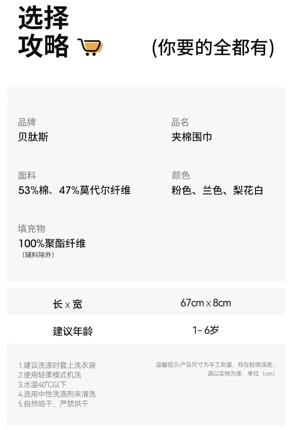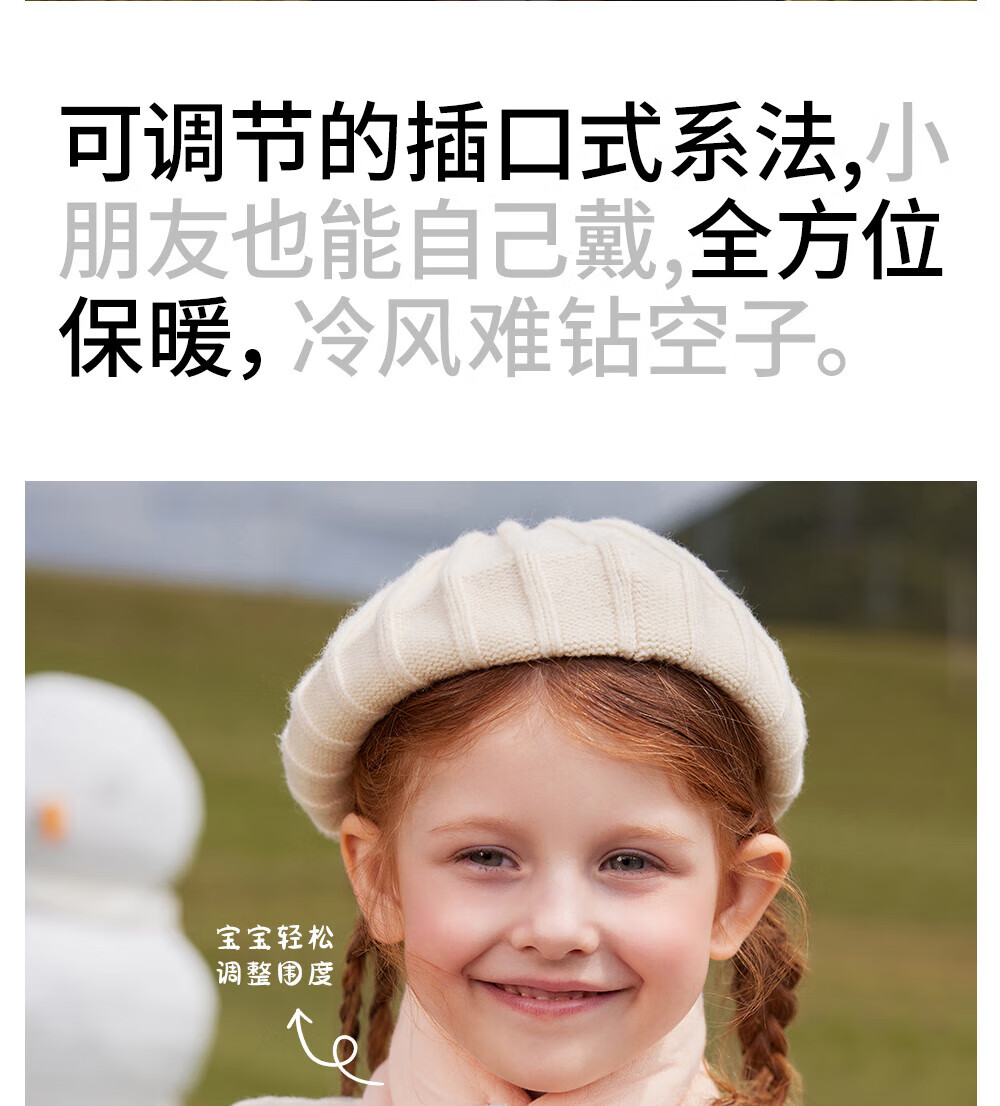 贝肽斯儿童围巾冬季男女童宝宝冬天防风婴幼儿夹棉护颈保暖围脖 粉色 【三层锁暖 柔软亲肤】 1-6岁