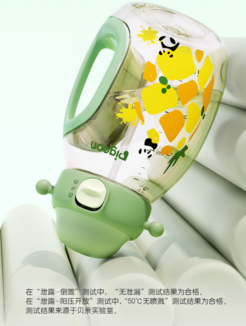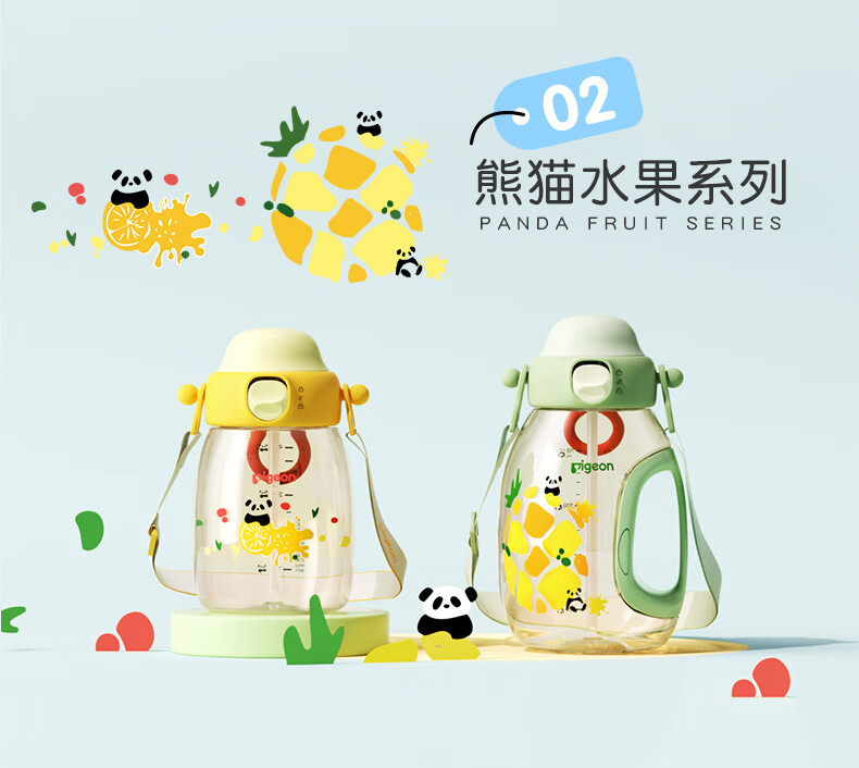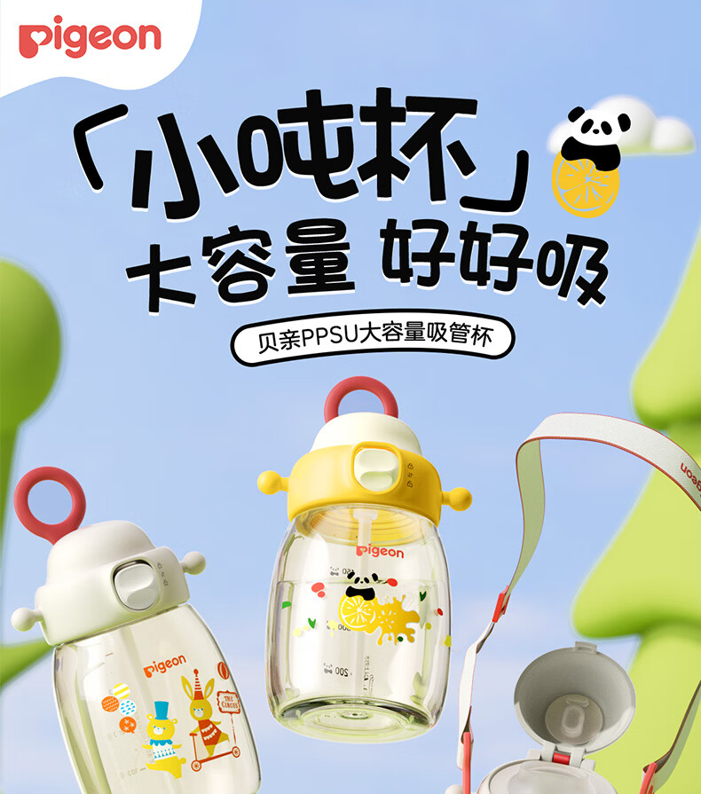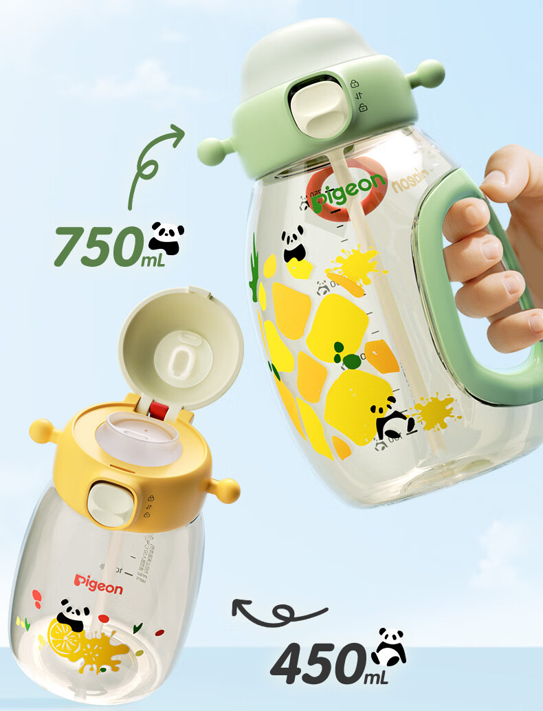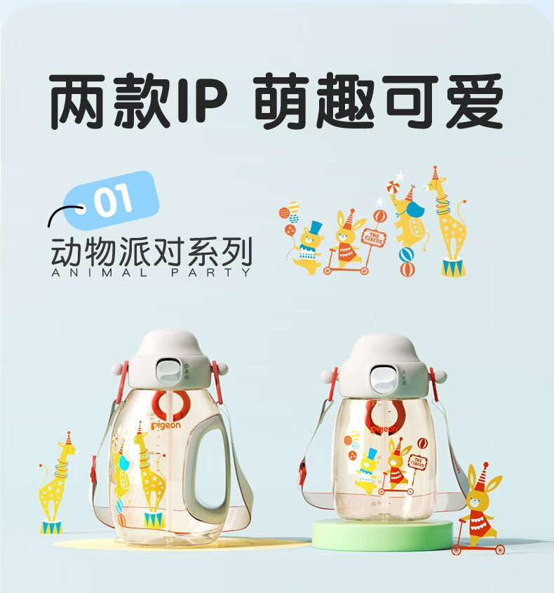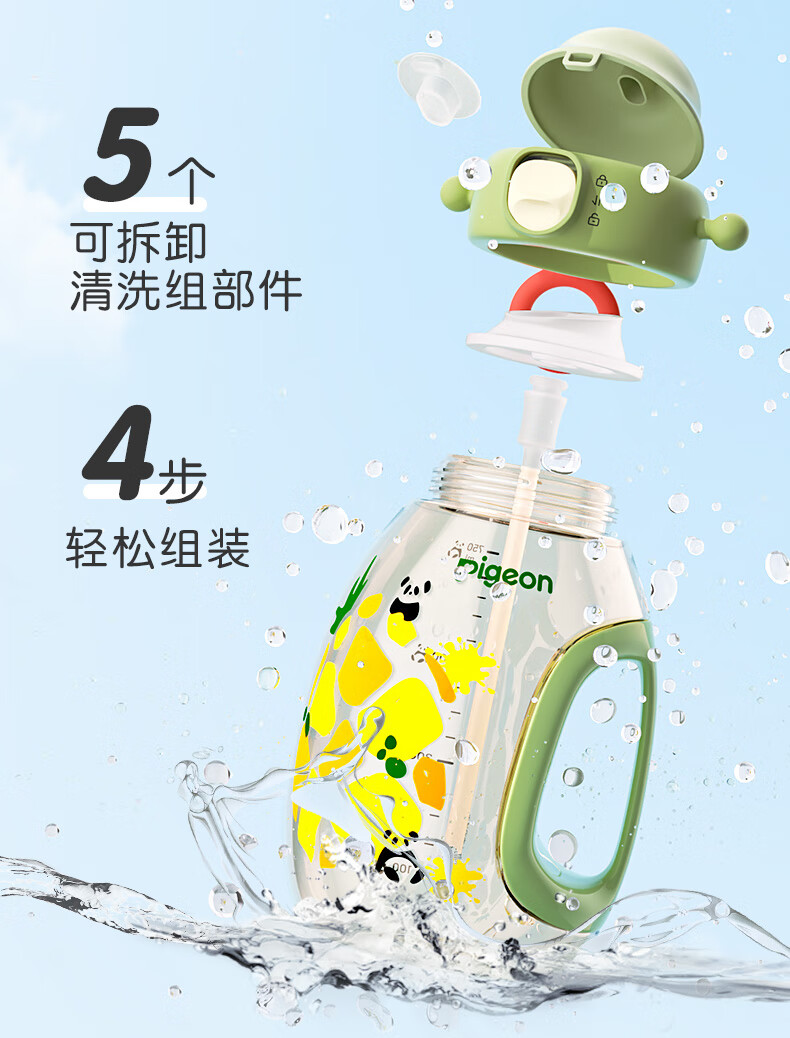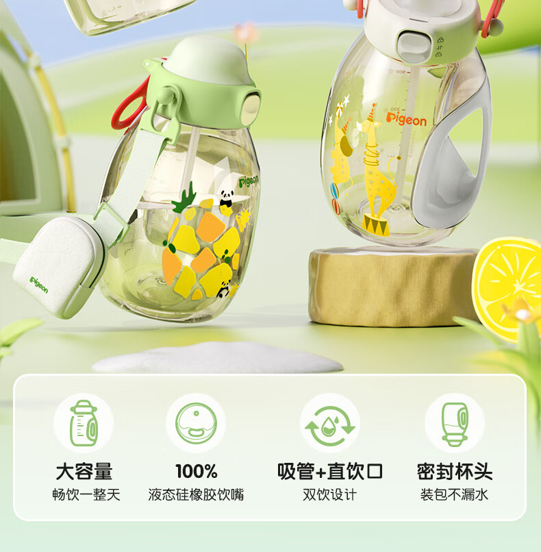 贝亲水杯 儿童水杯 宝宝喝水杯 大容量吨吨杯 PPSU材质双饮杯 吸管杯 450ML-动物派对-绿色-2岁+
