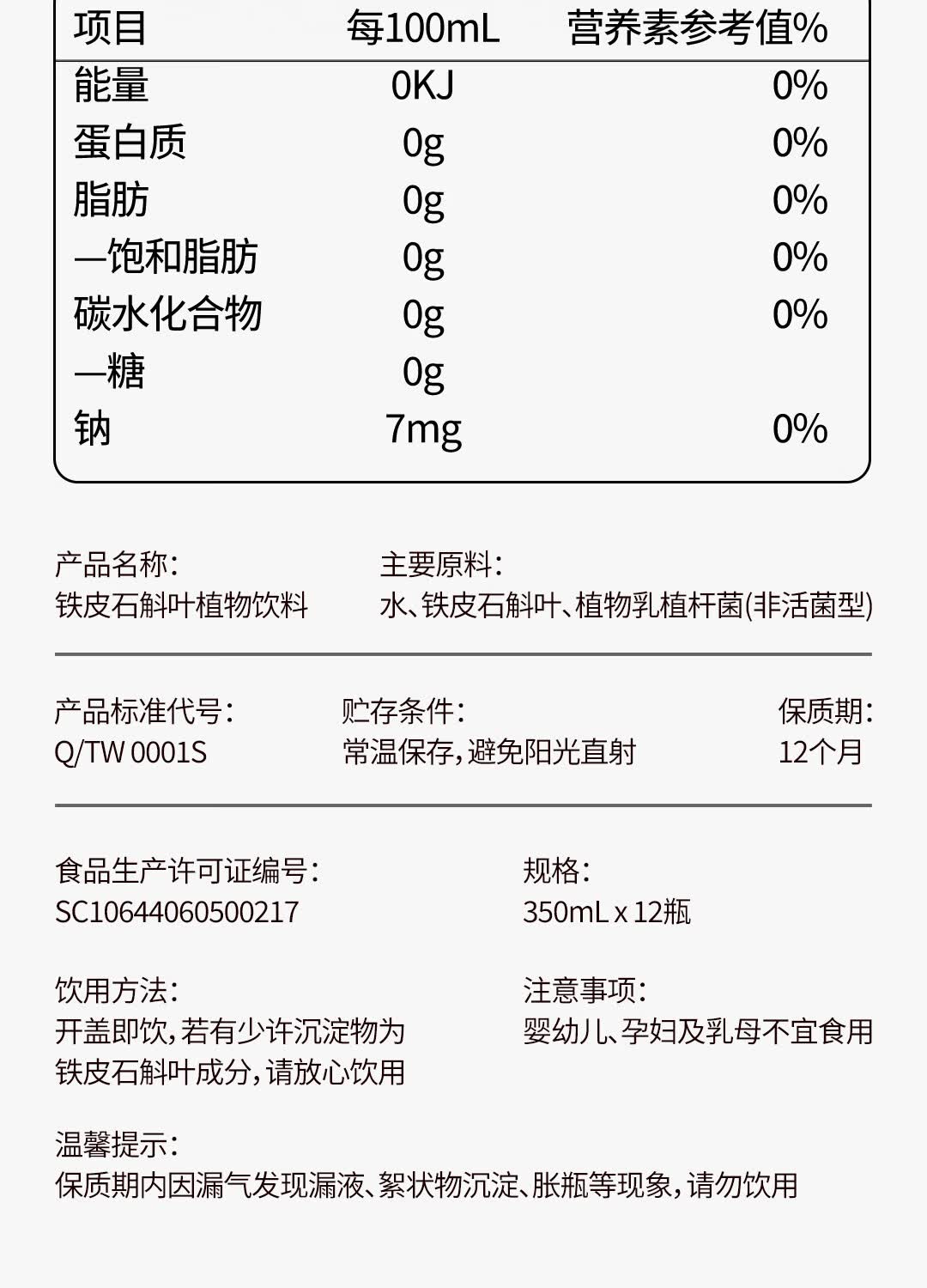 威门(warmen)石斛水正品 铁皮石斛提取液 即饮型养生饮料石斛养生水 常规款生威石斛水12瓶/箱