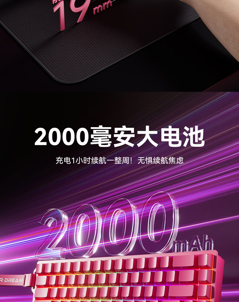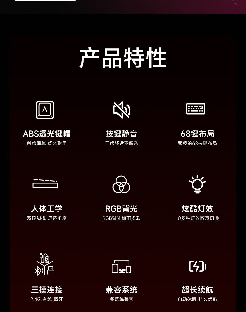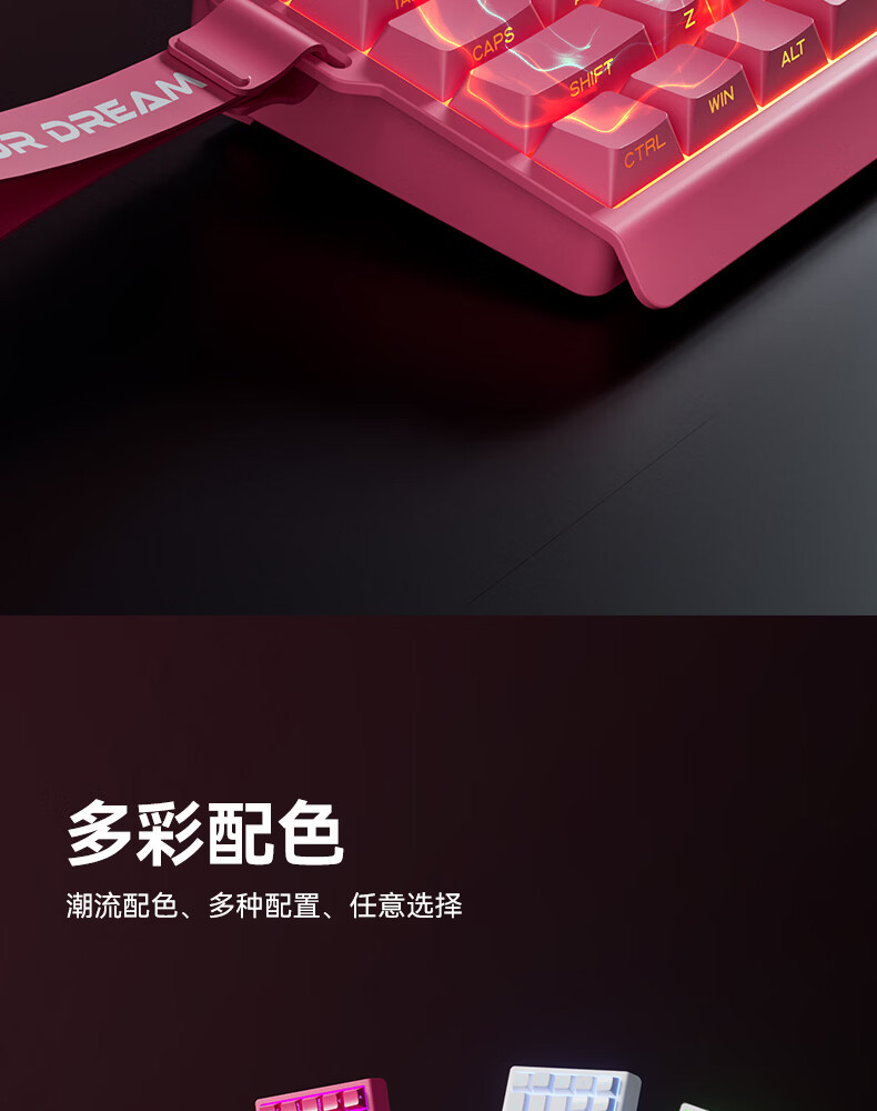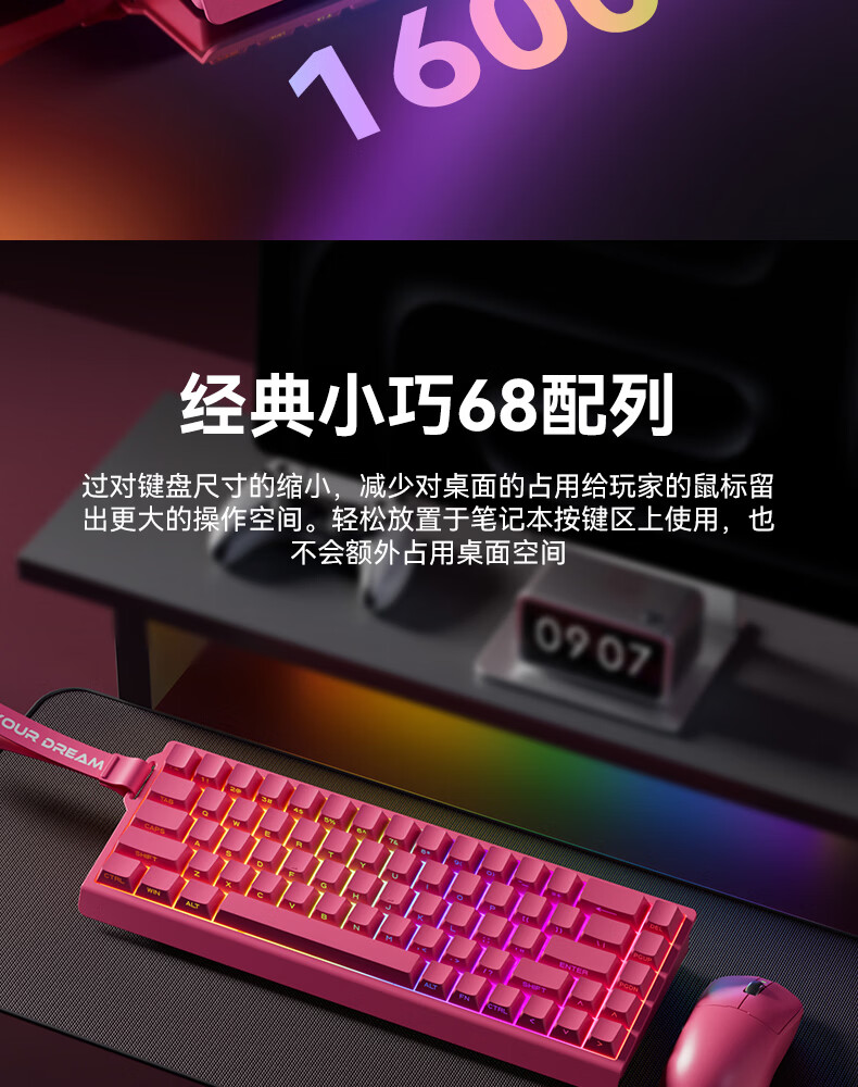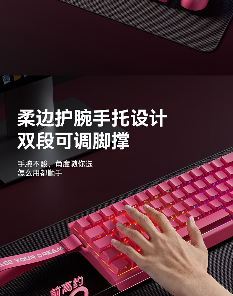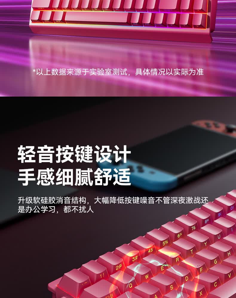 梦族【新品】Z68无线键盘有线蓝牙三模静音办公机械手感电竞游戏便携电脑笔记本薄膜键盘平板iPad专用 【浆果晶红】单键盘-无线三模