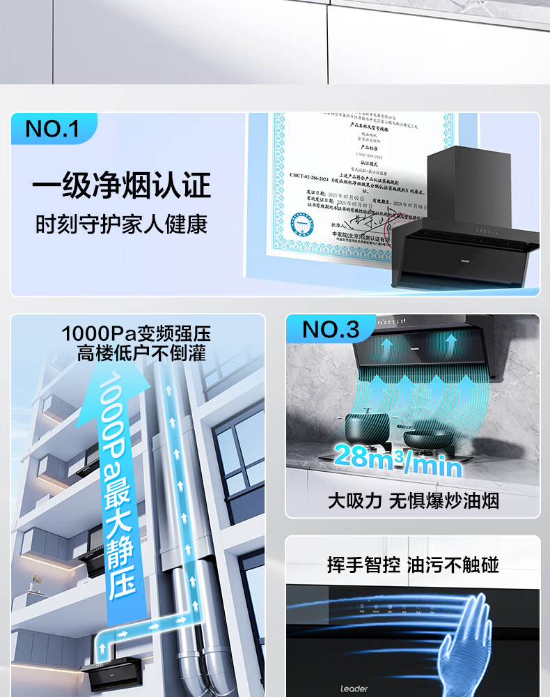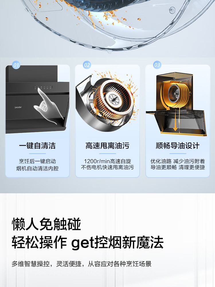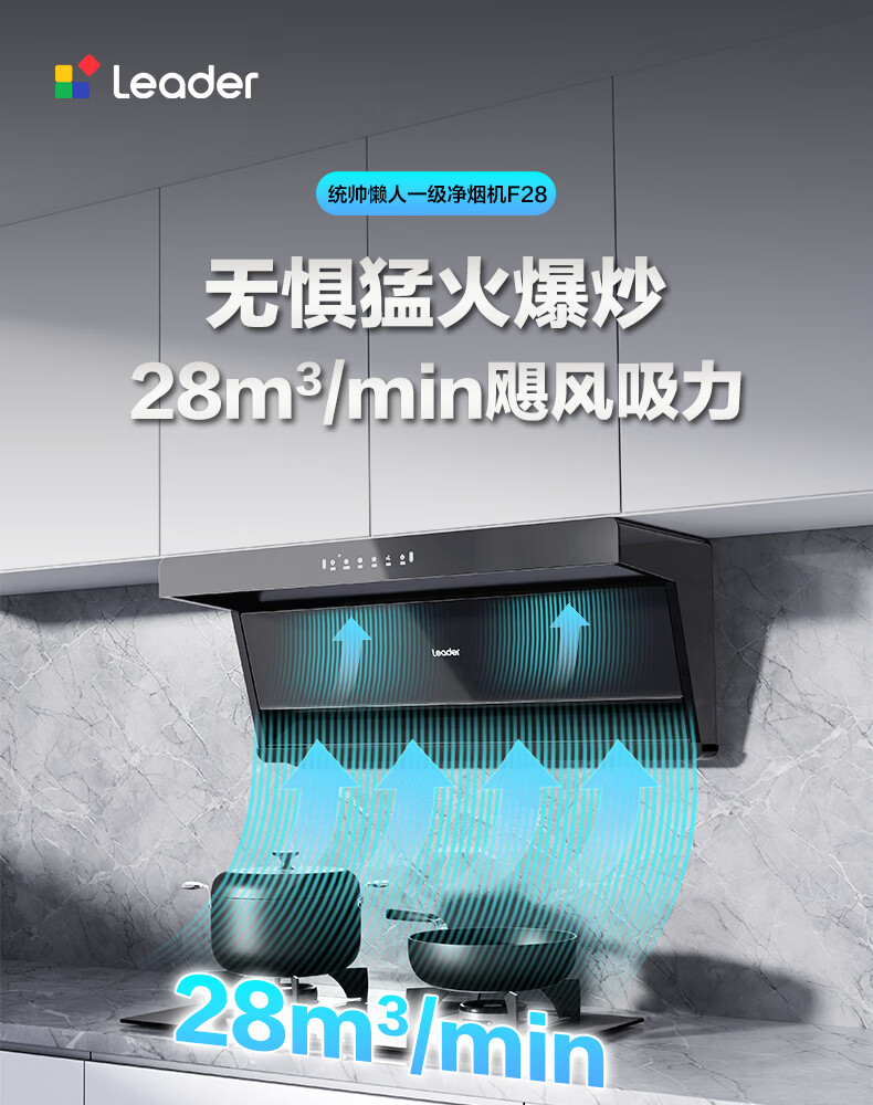 海尔(Haier)统帅(Leader)懒人油烟机一级净烟顶侧双吸抽油烟机自营国家补贴28风量大吸力油烟机F28 以旧换新