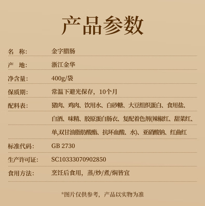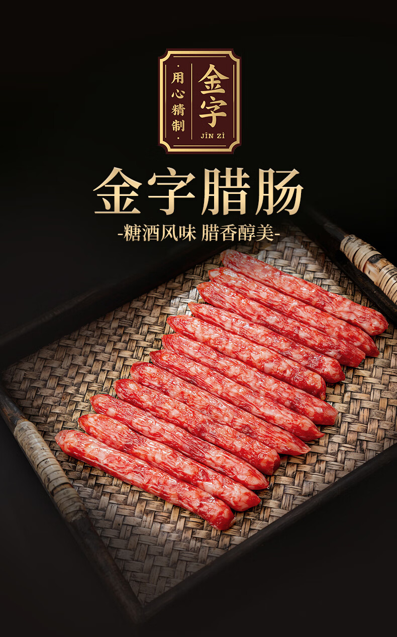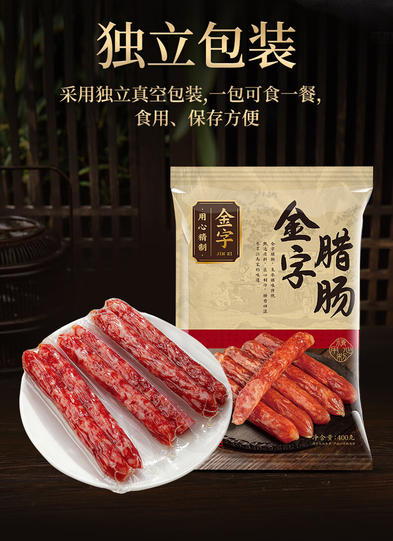 金字腊肠400g 加热即食 广式广味香肠 老字号咸甜酒香腊味腊肠