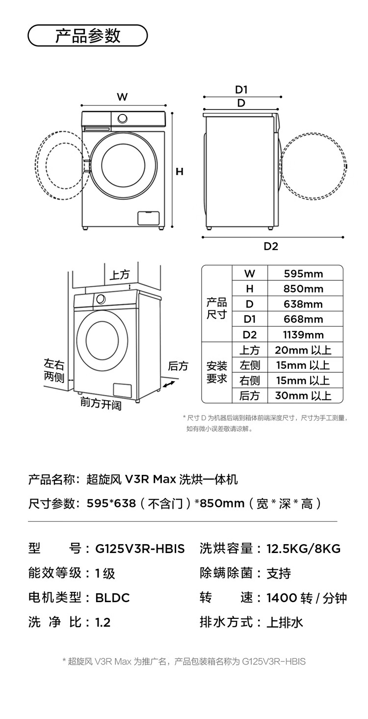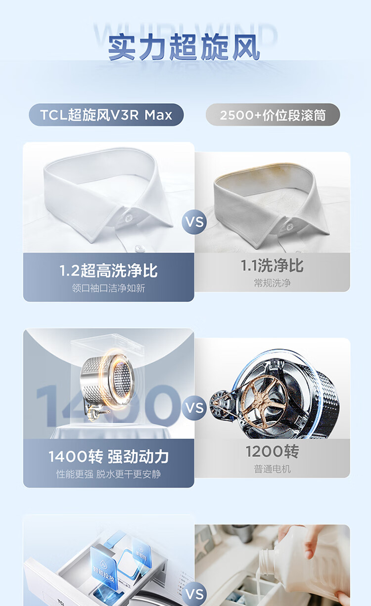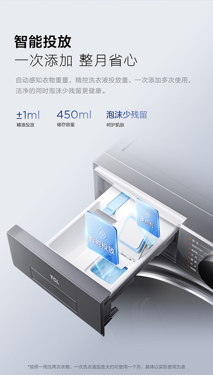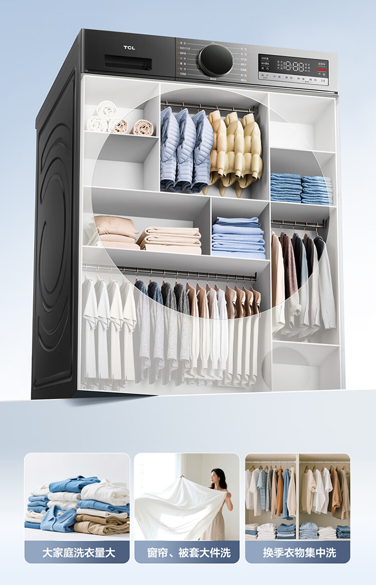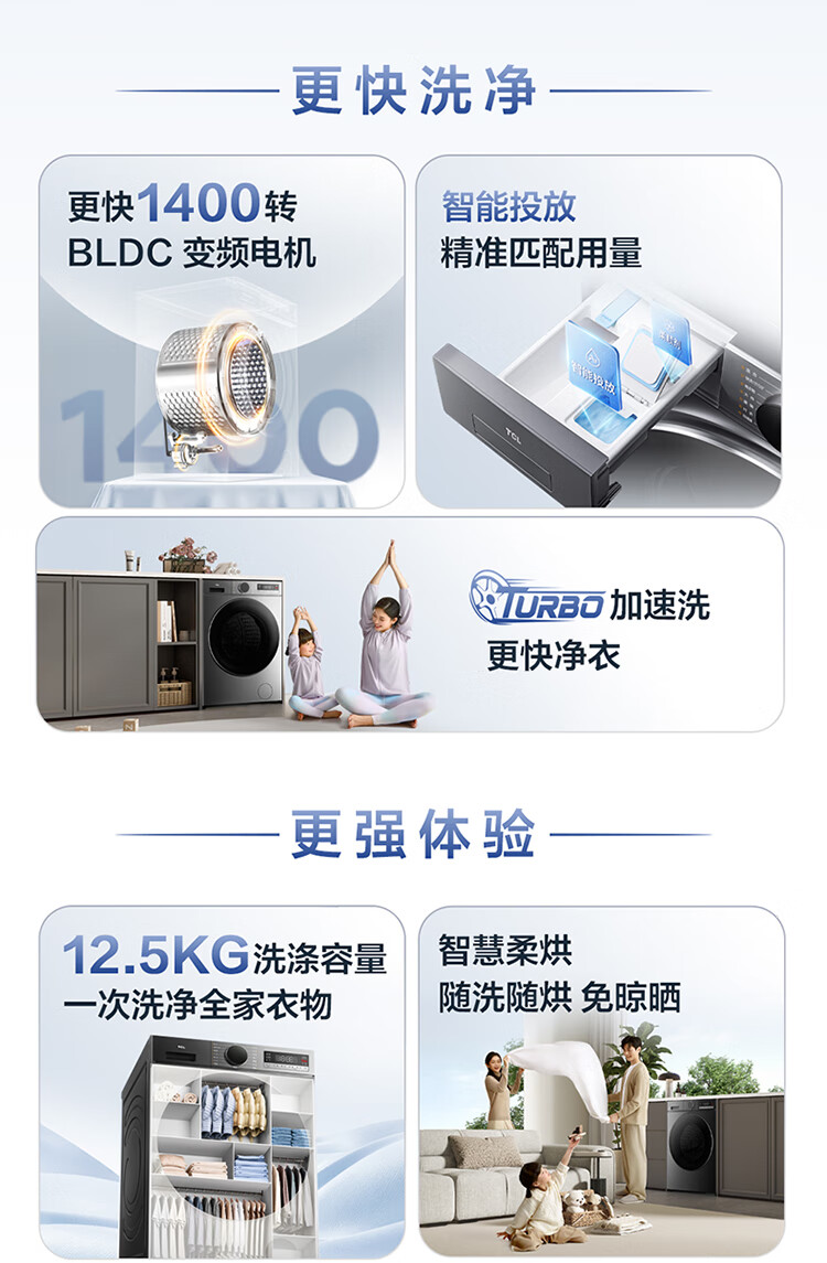 TCL超旋风V3R Max12.5公斤大容量洗烘一体智能投放 滚筒洗衣机全自动家用家电国家补贴G125V3R-HBIS