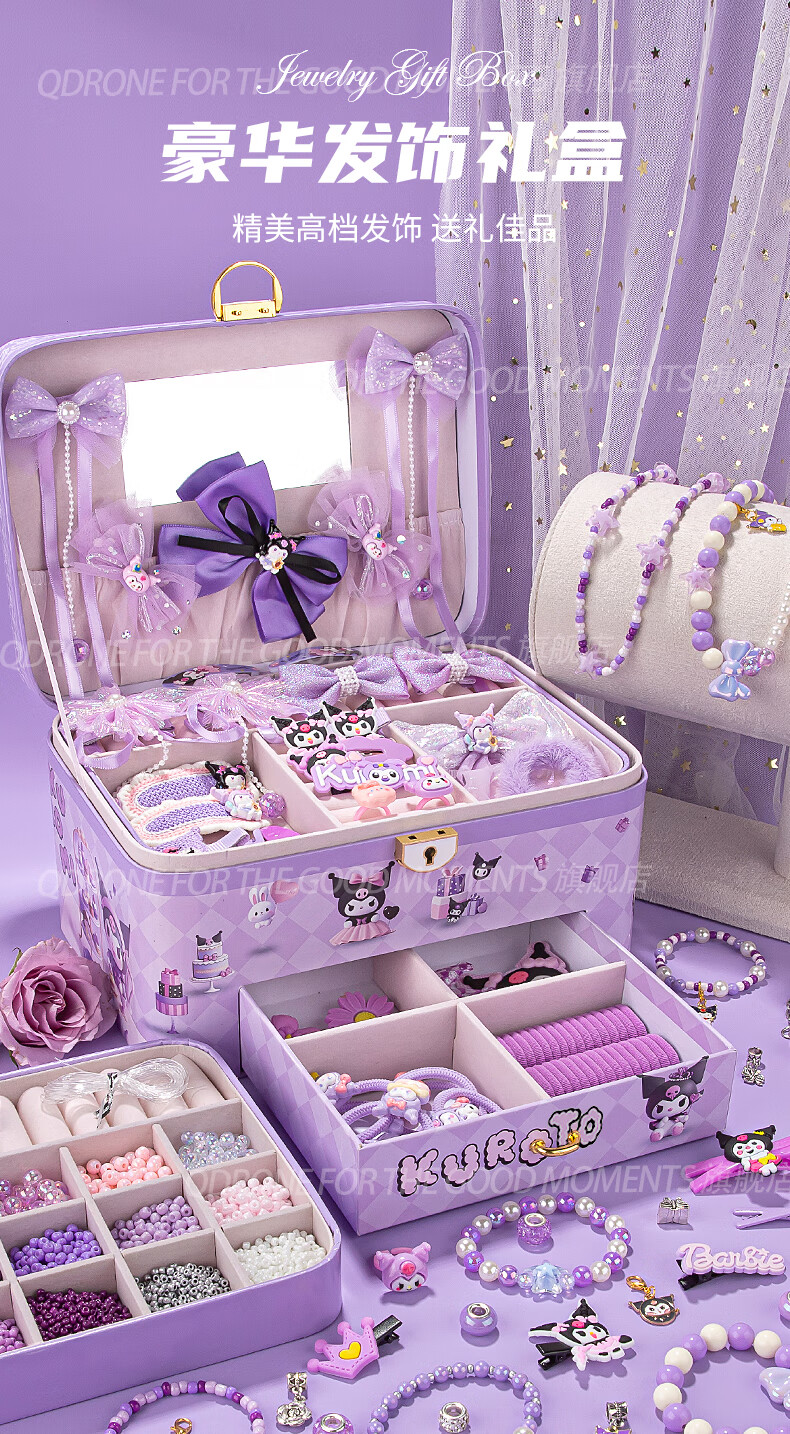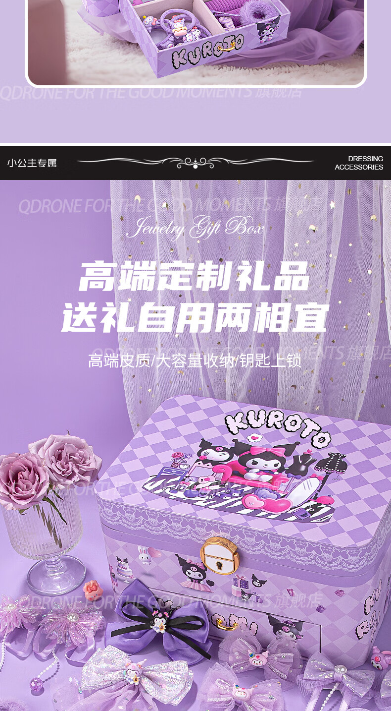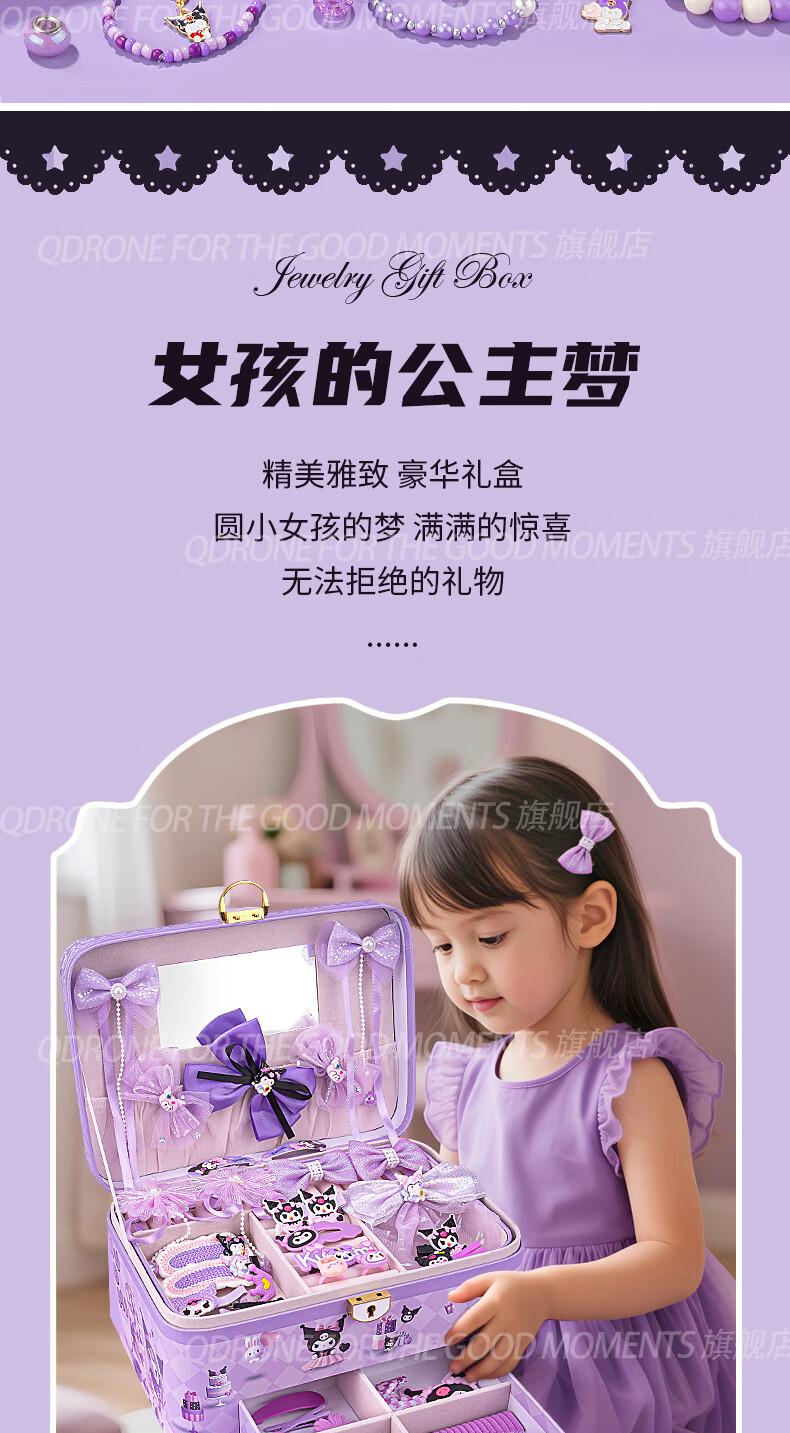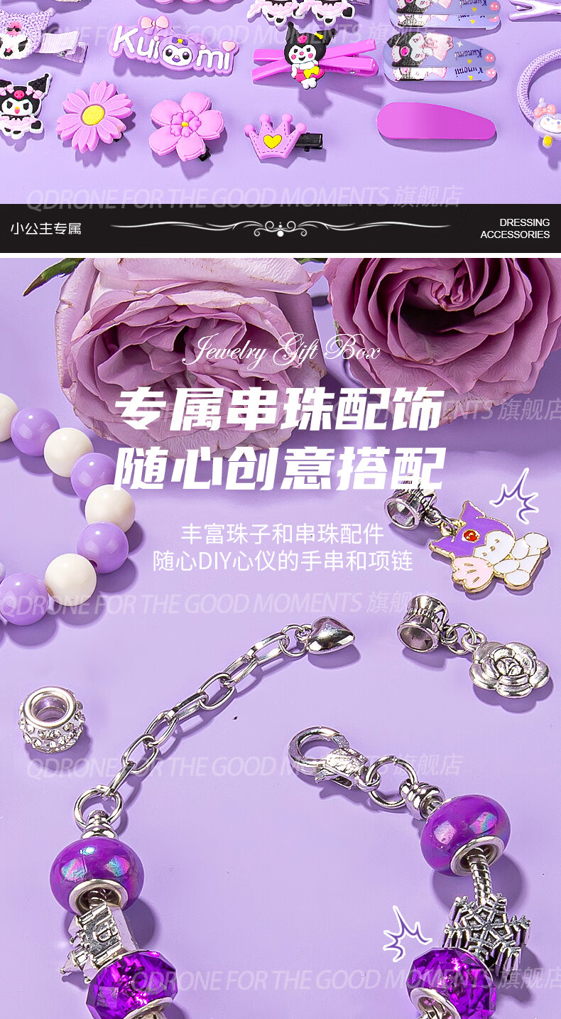 qdrone For the Good Moments圣诞礼物儿童8玩具女孩生日礼物6-10实用3岁7女童小女生发饰礼盒 酷洛紫高级定制礼盒(珠宝款) 5岁9岁串珠4岁12小女孩高档