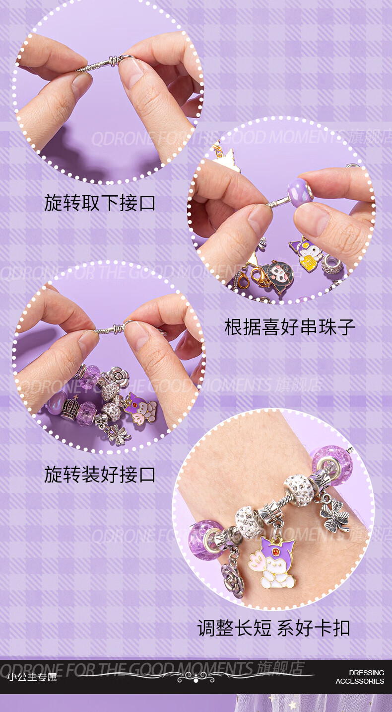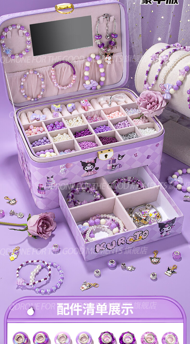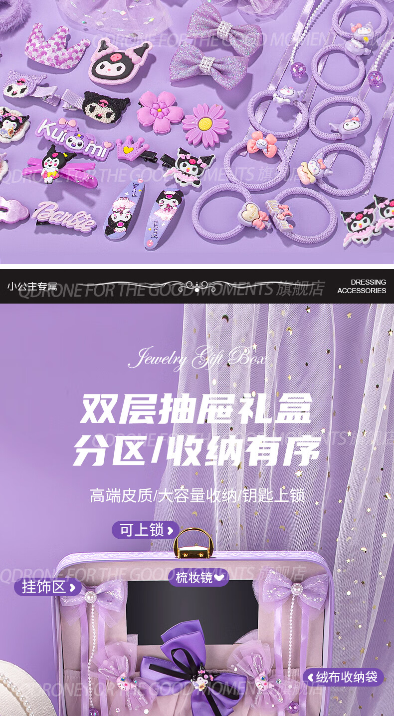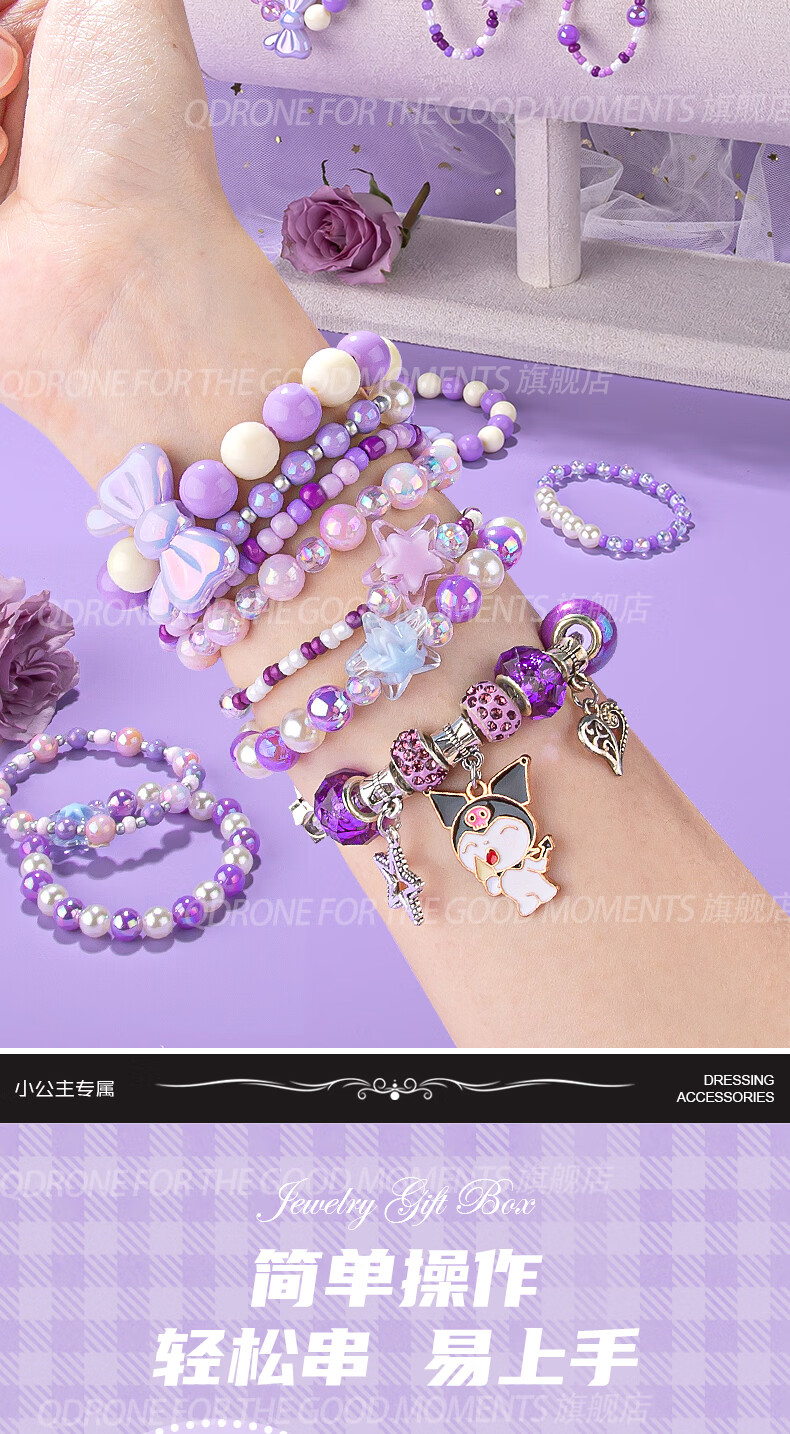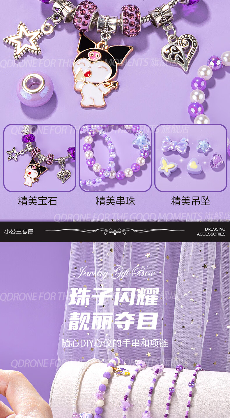 qdrone For the Good Moments圣诞礼物儿童8玩具女孩生日礼物6-10实用3岁7女童小女生发饰礼盒 酷洛紫高级定制礼盒(珠宝款) 5岁9岁串珠4岁12小女孩高档