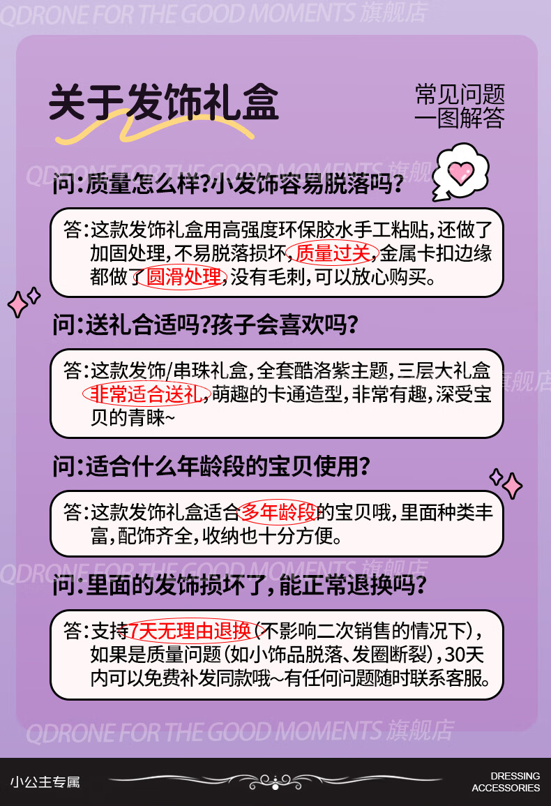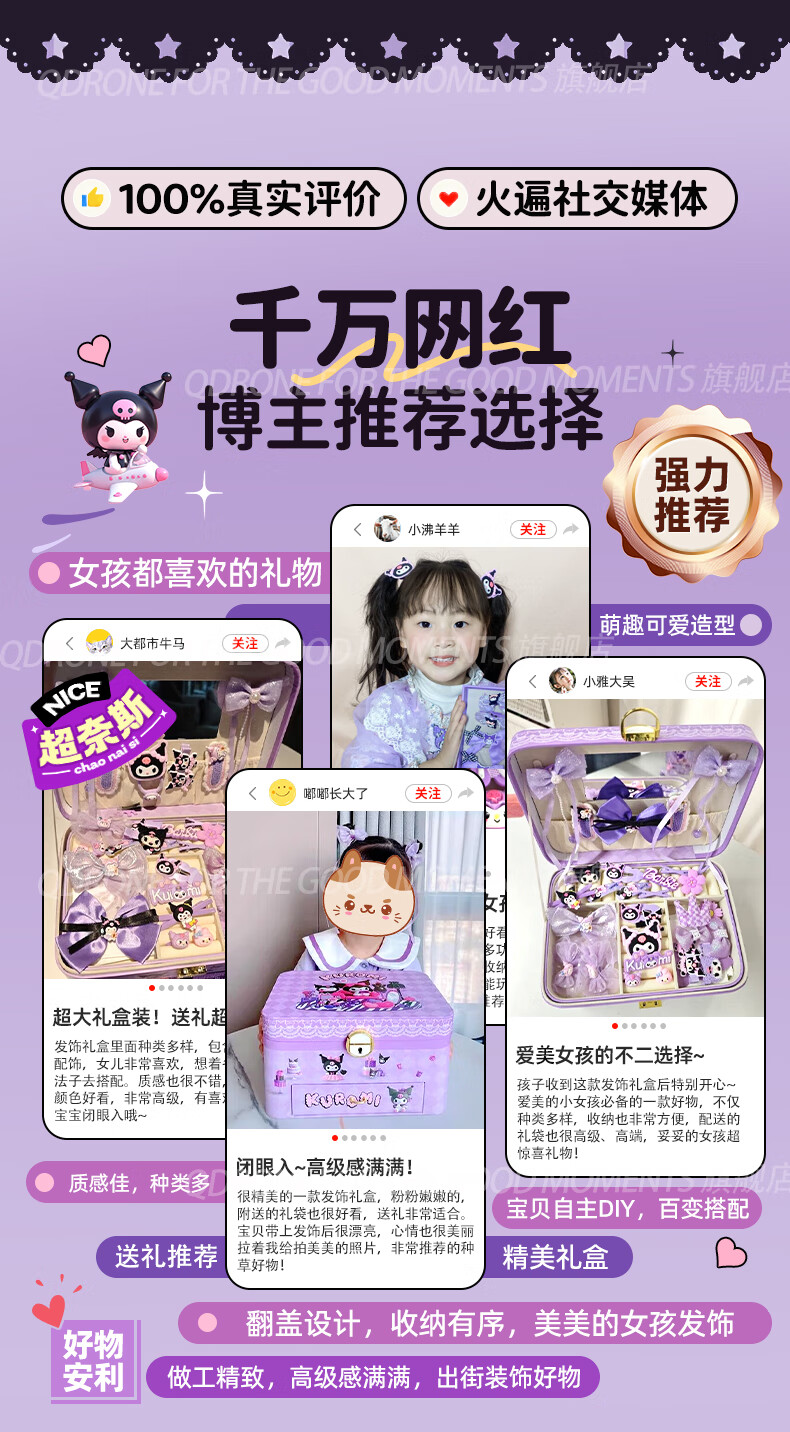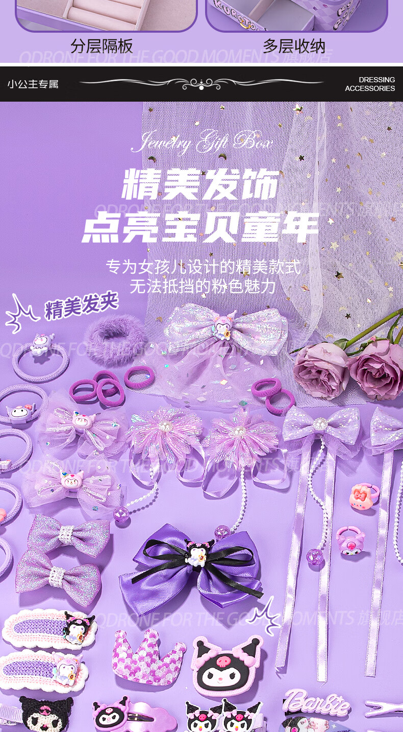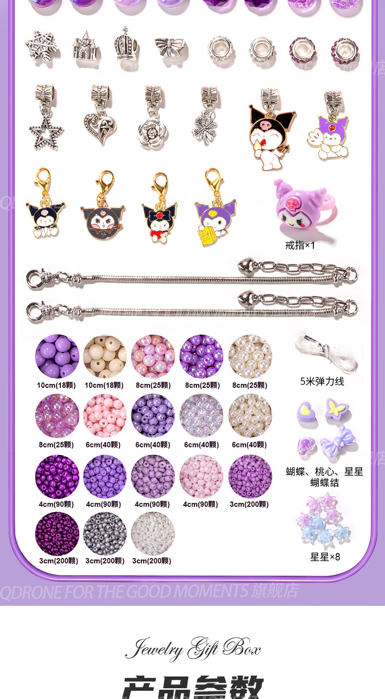 qdrone For the Good Moments圣诞礼物儿童8玩具女孩生日礼物6-10实用3岁7女童小女生发饰礼盒 酷洛紫高级定制礼盒(珠宝款) 5岁9岁串珠4岁12小女孩高档