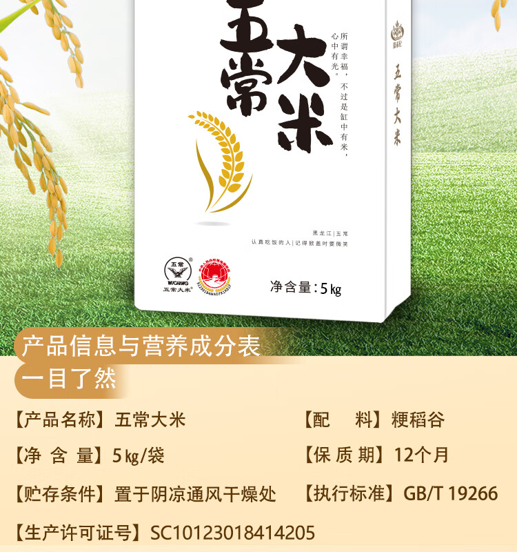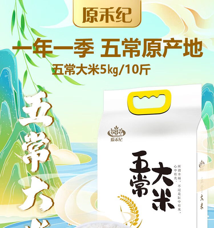 原禾纪五常大米5kg/10斤 东北大米 当季新米 GB/T19266真空包装香米粳米