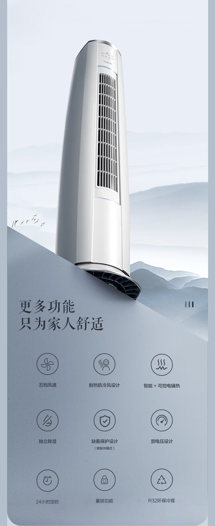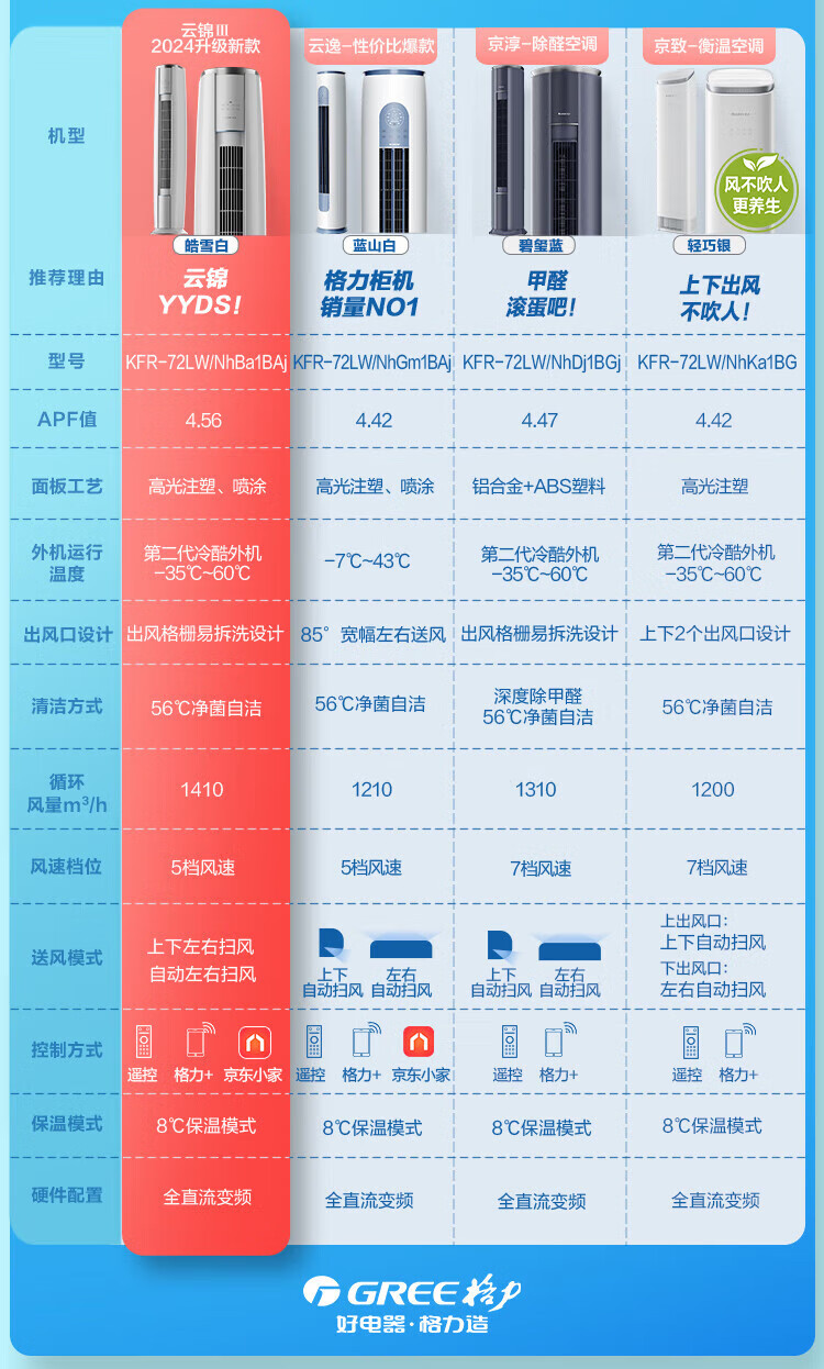 格力(GREE)空调 云锦三代 2匹/3匹新一级能效变频冷暖净菌自清洁智能WiFi客厅圆柱立式柜机 家电国家补贴20% 3匹 一级能效 云锦三代冷酷款(适用30-45㎡) (皓雪白)