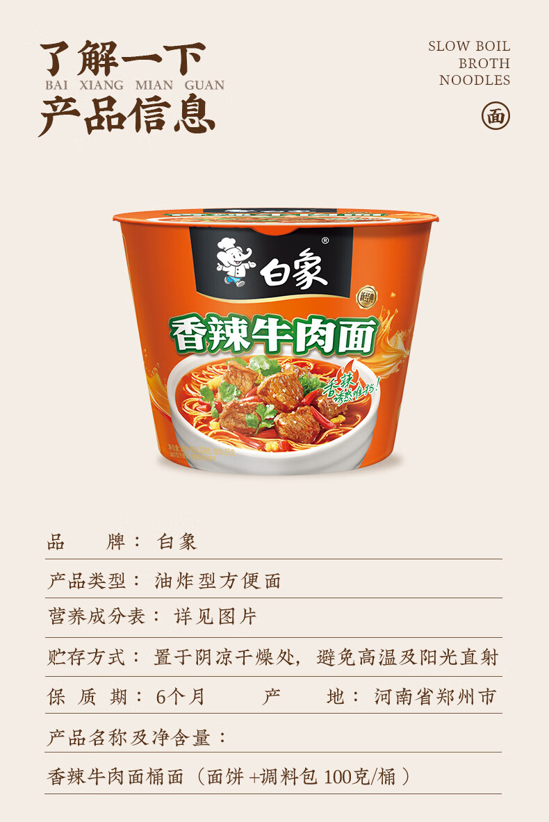 白象 方便面 经典香辣牛肉100g*12桶泡面整箱装