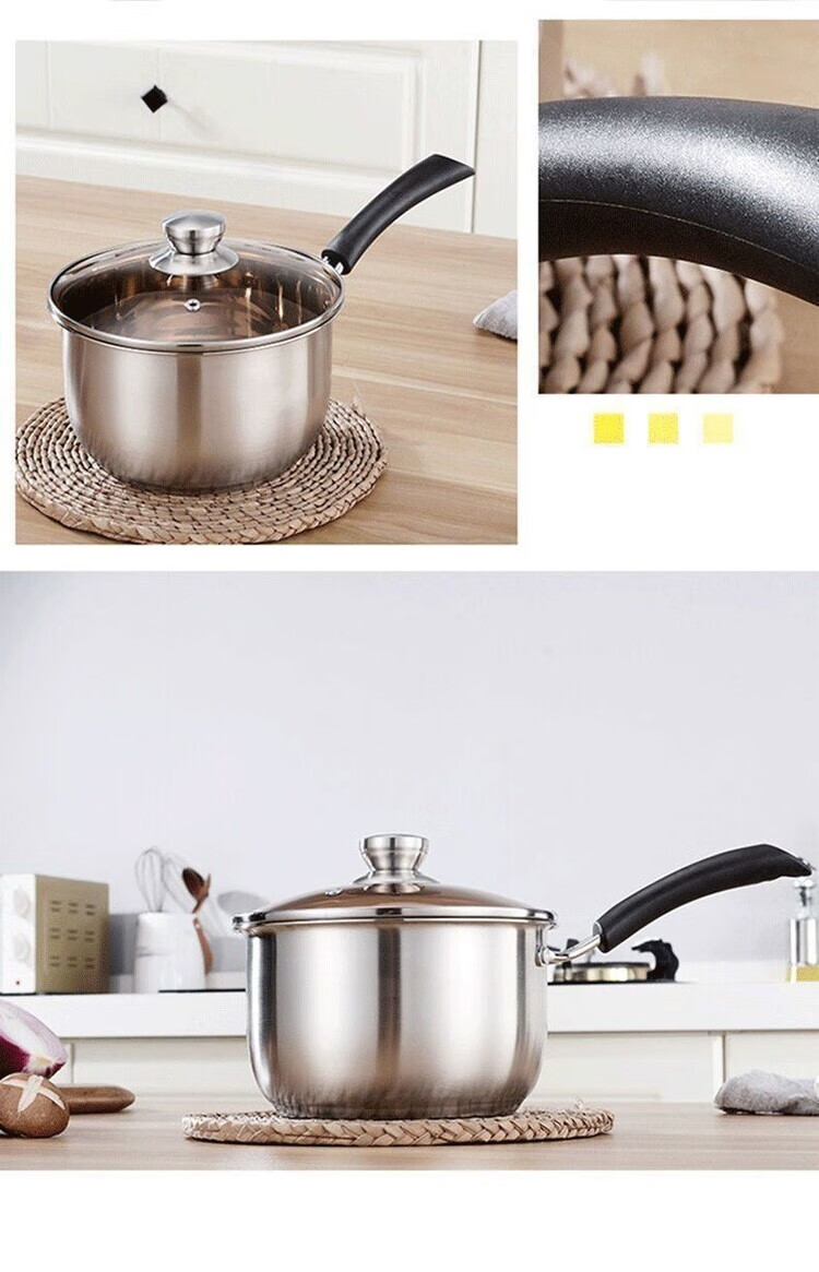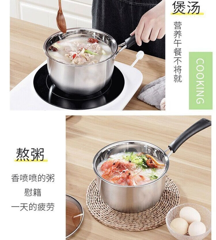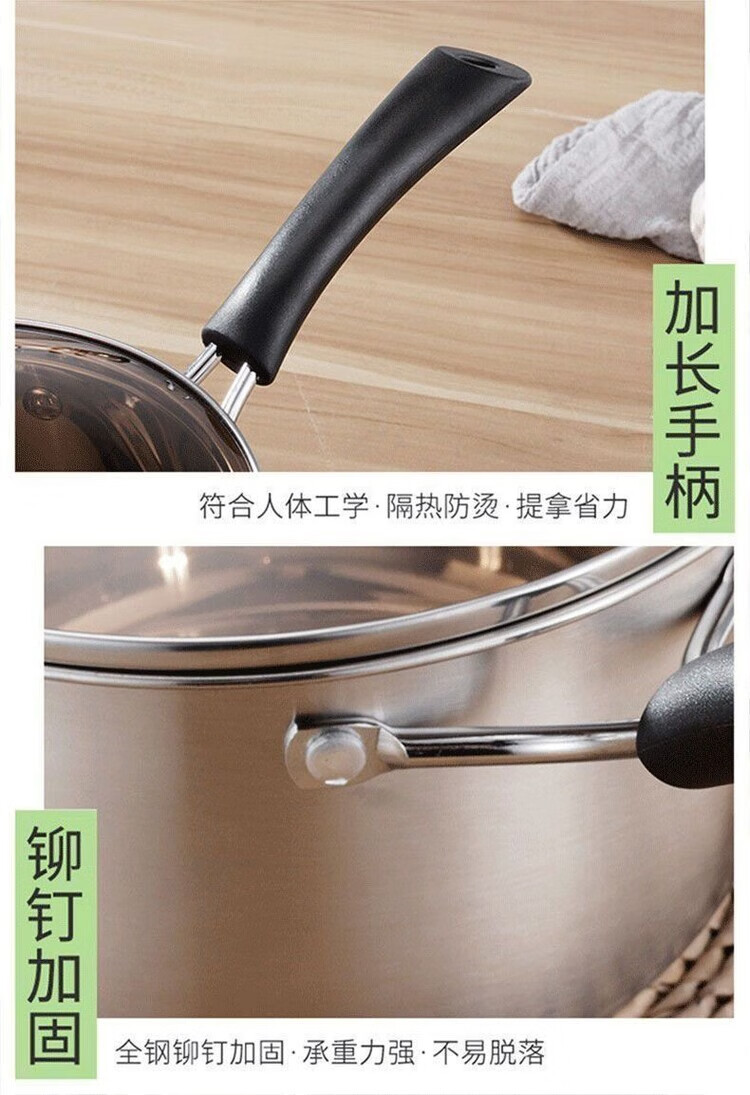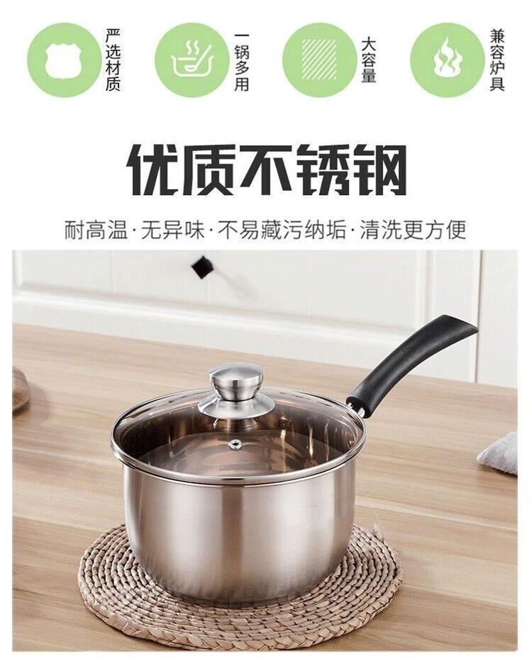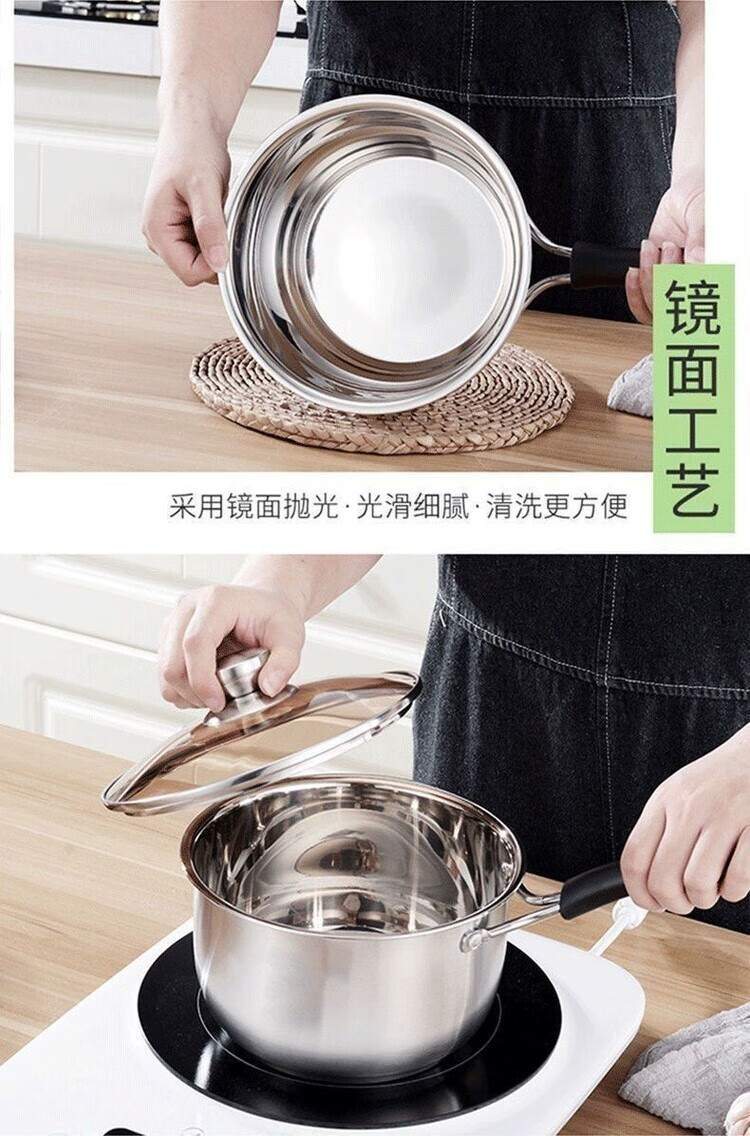 花沐禧奶锅不锈钢304加厚食品级家用泡面宝宝汤锅婴儿牛奶辅食电磁炉 无磁304不锈钢特厚锅底 1cm 16CM普通款无盖