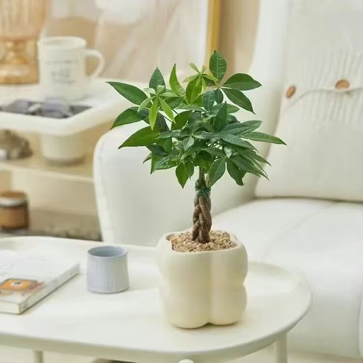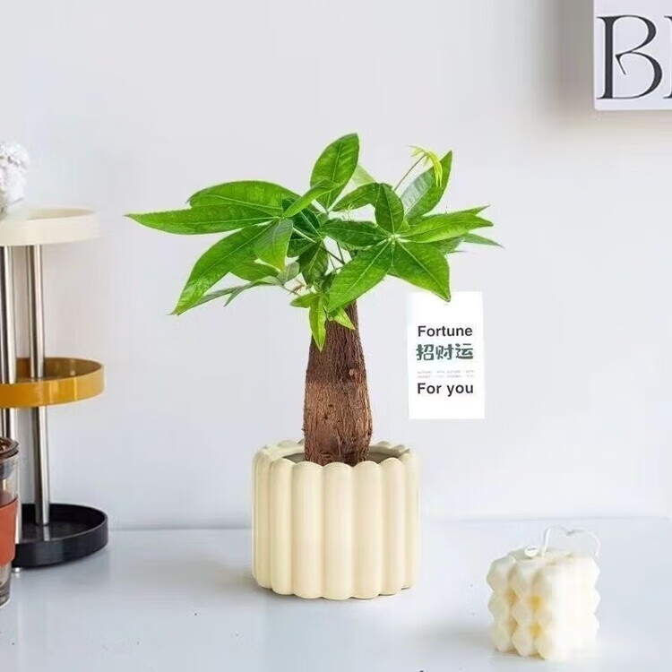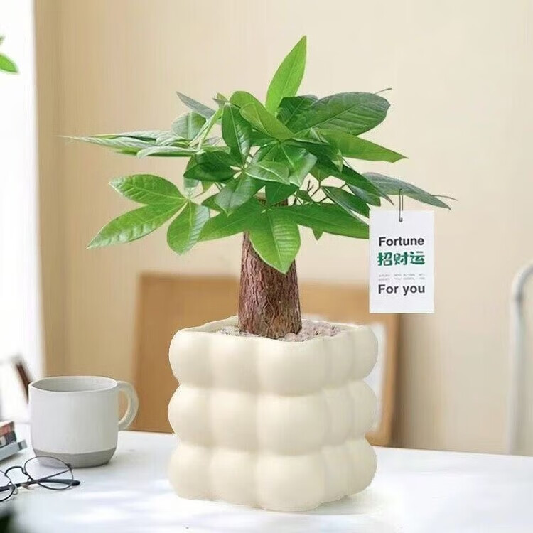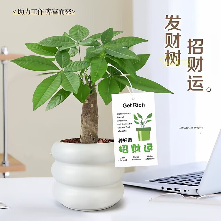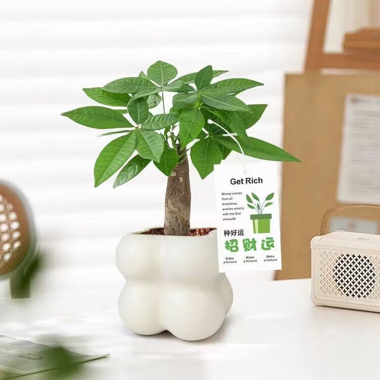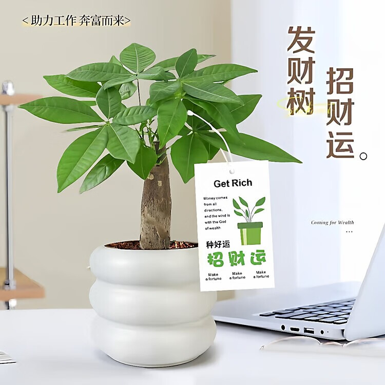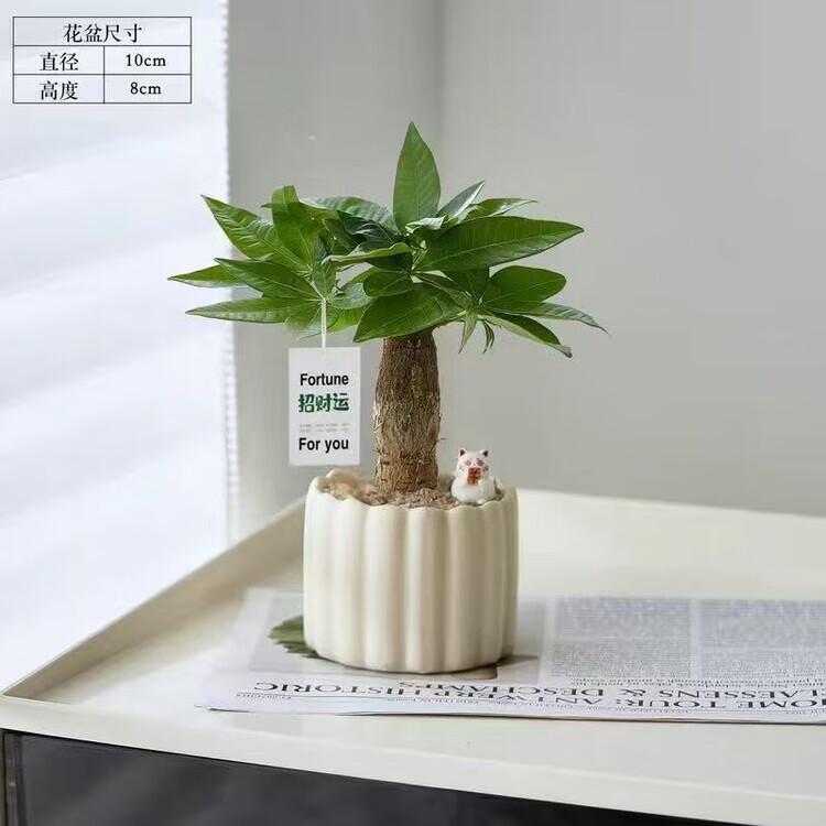 OYKTN发财树绿植小盆栽办公室桌面客厅创意招财解压摆件四季好养小盆景 发财树+舍得盆+方托盘 铺面石+吊牌 送肥料