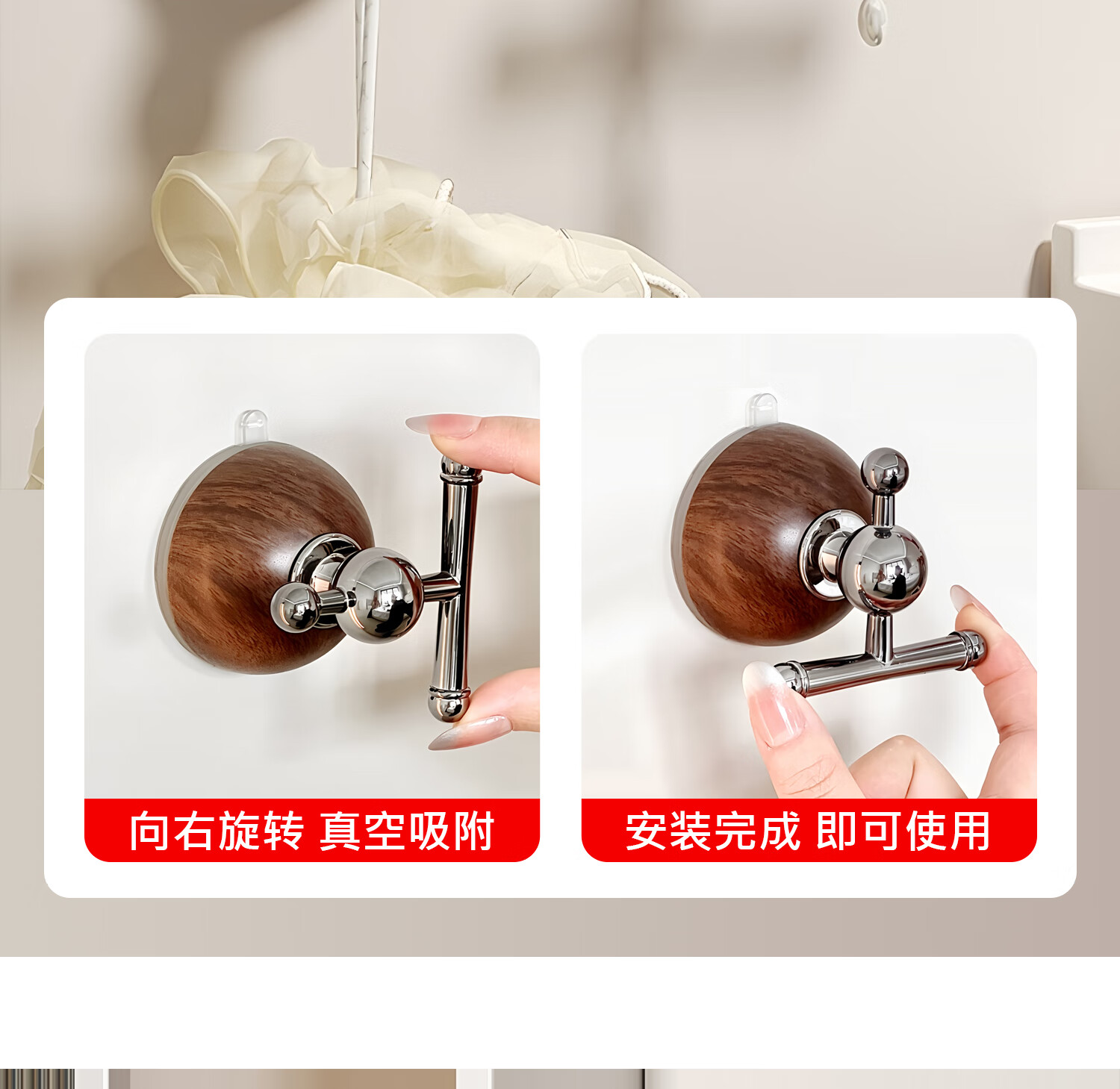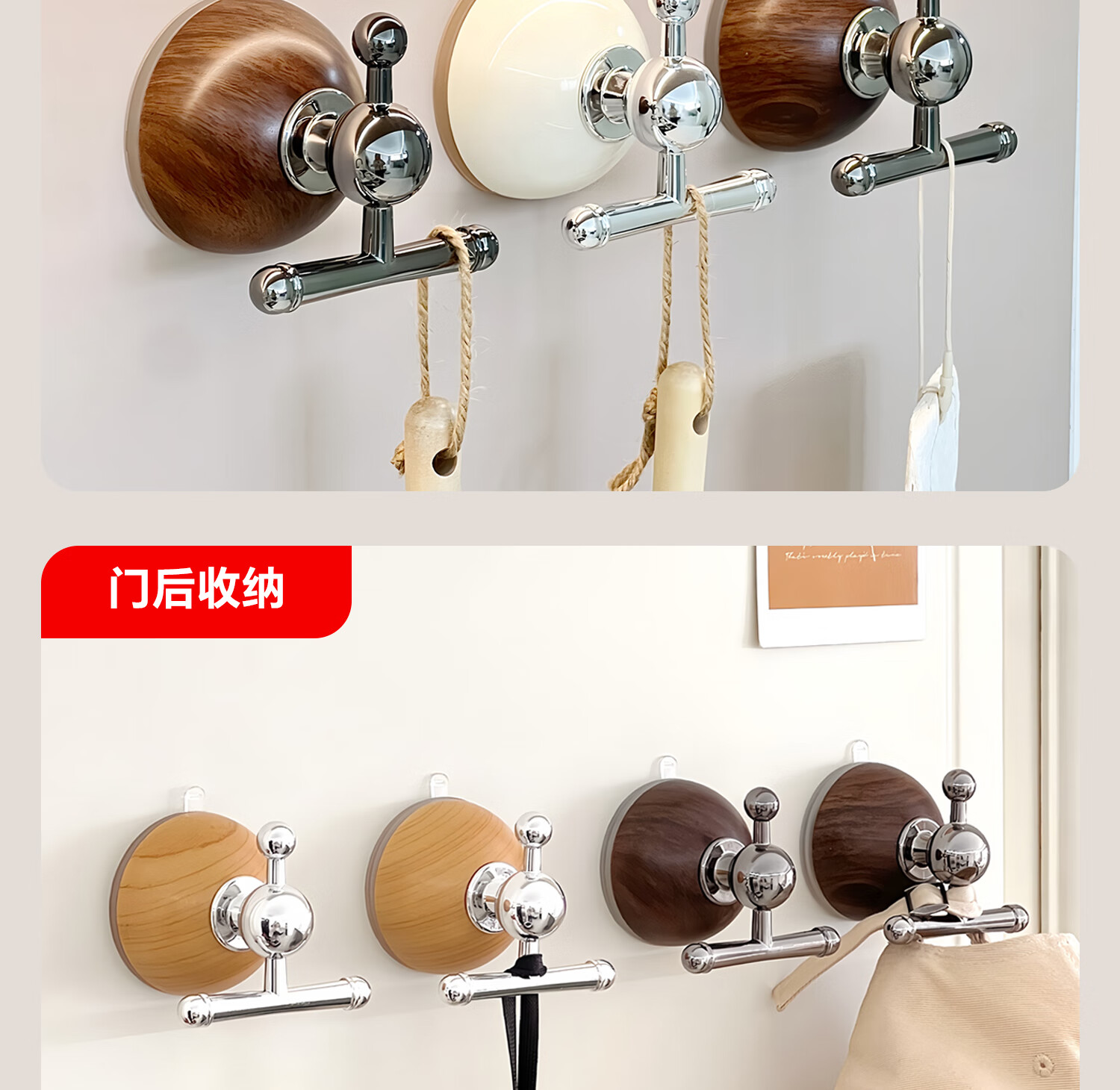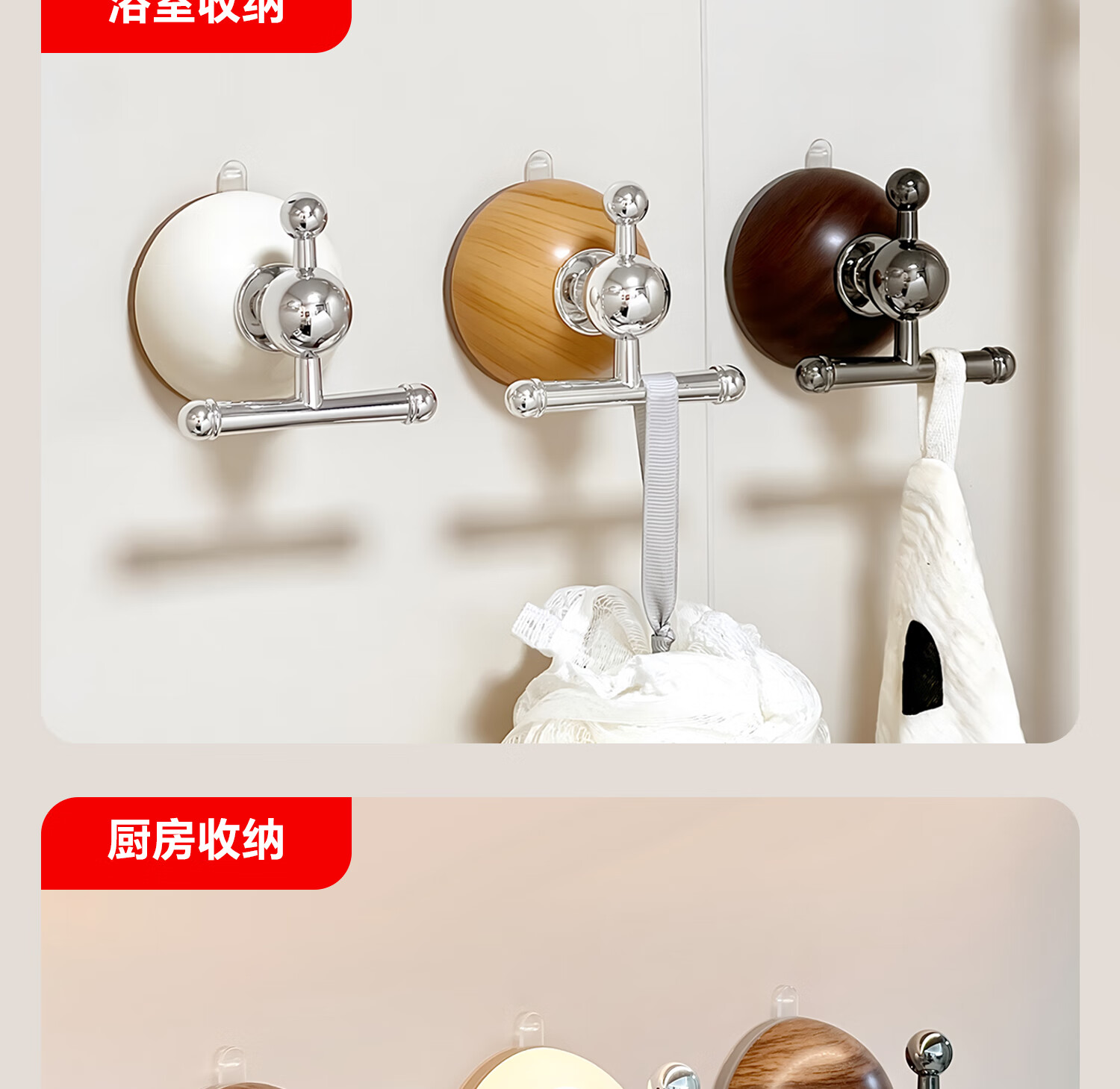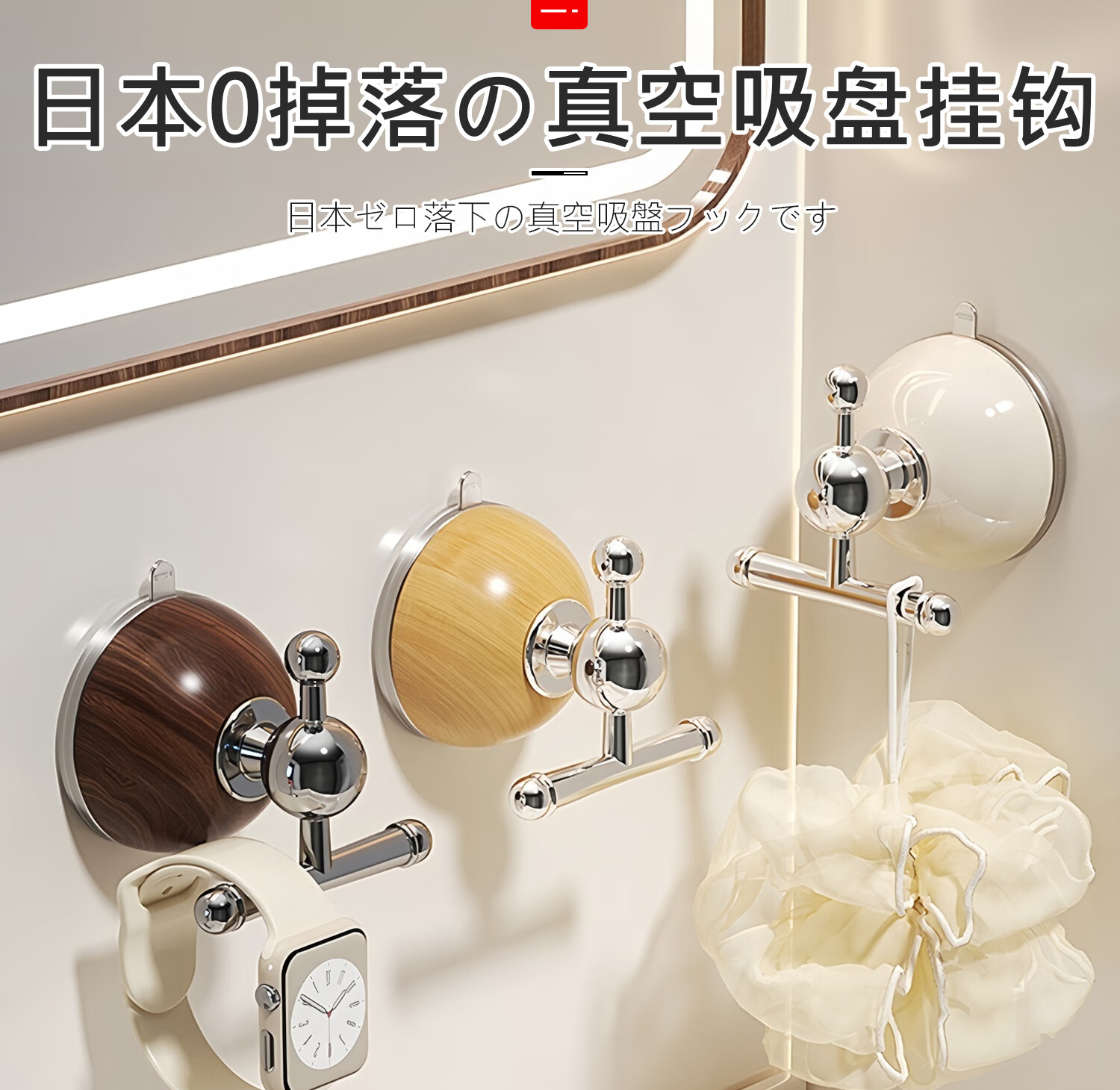 吱凡日本吸盘式真空挂钩强力承重无痕免打孔浴室卫生间挂衣钩旋转粘钩 【3个装】月光白+胡桃木色+原木色