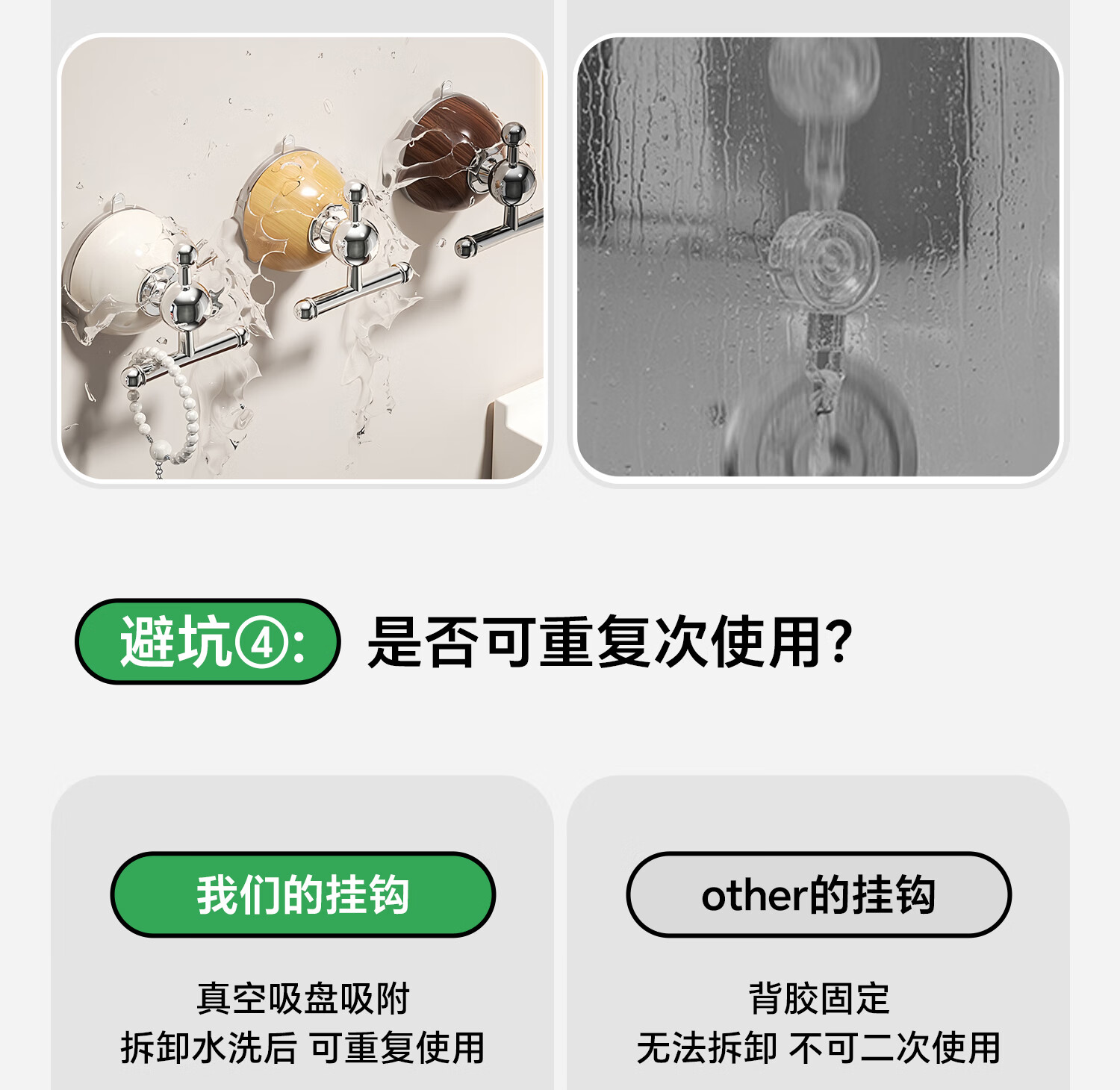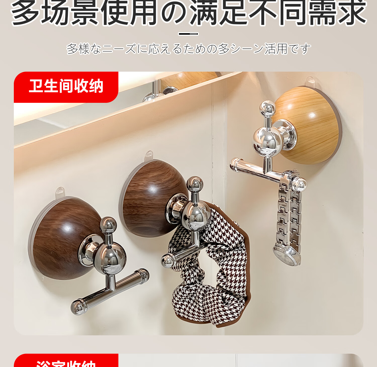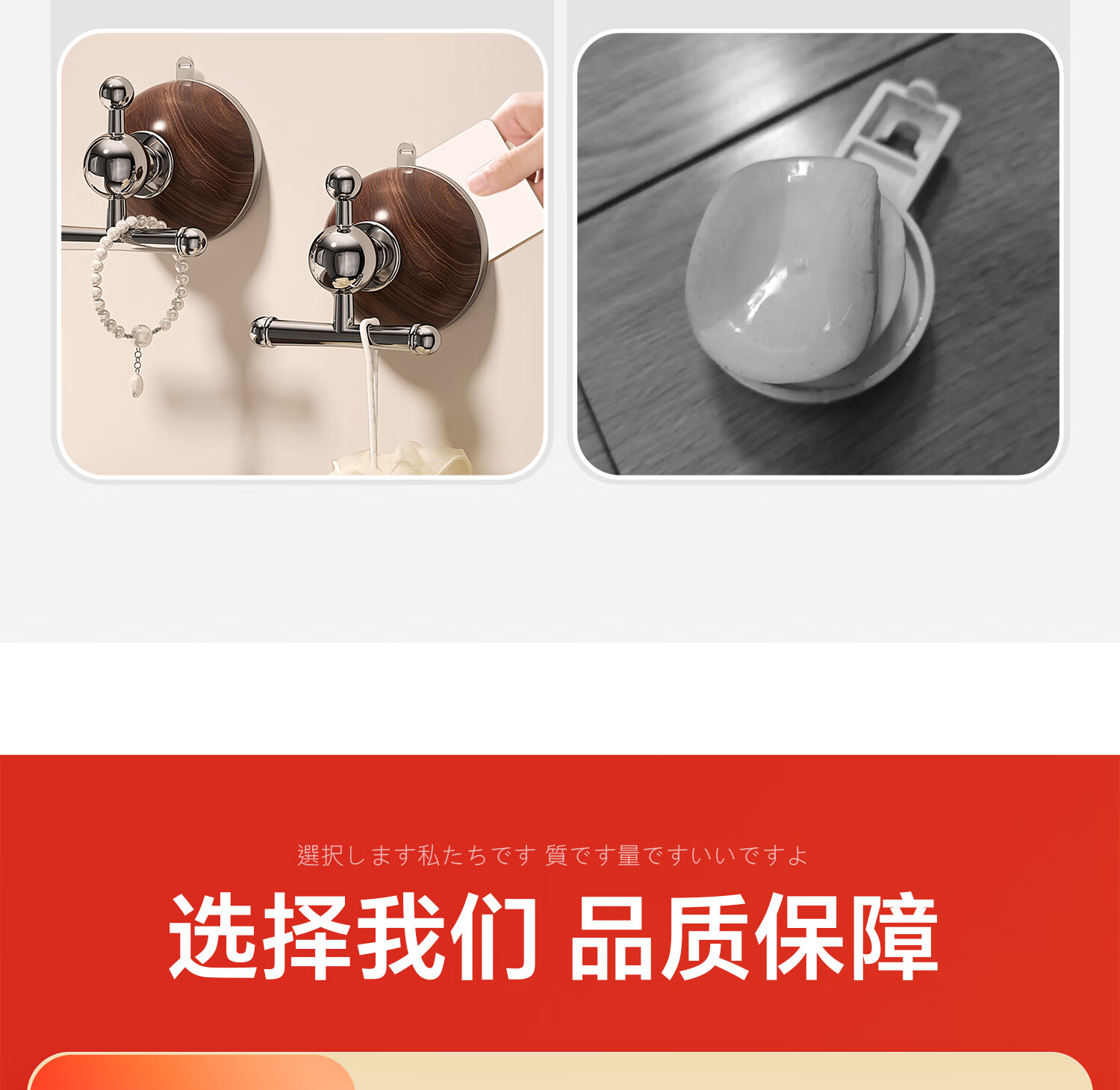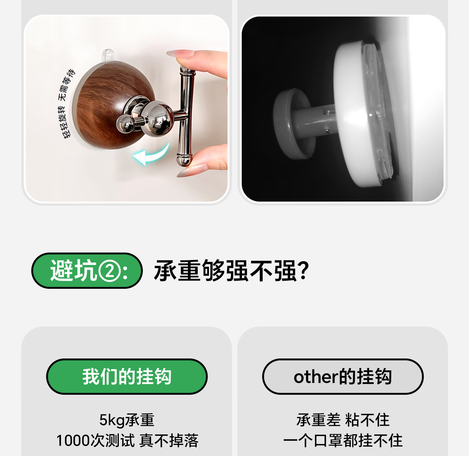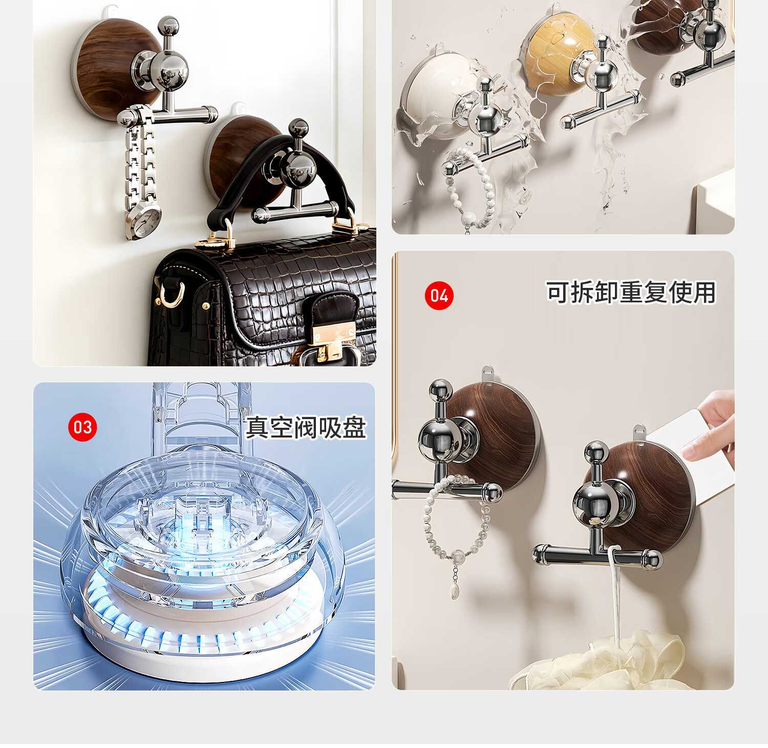 吱凡日本吸盘式真空挂钩强力承重无痕免打孔浴室卫生间挂衣钩旋转粘钩 【3个装】月光白+胡桃木色+原木色