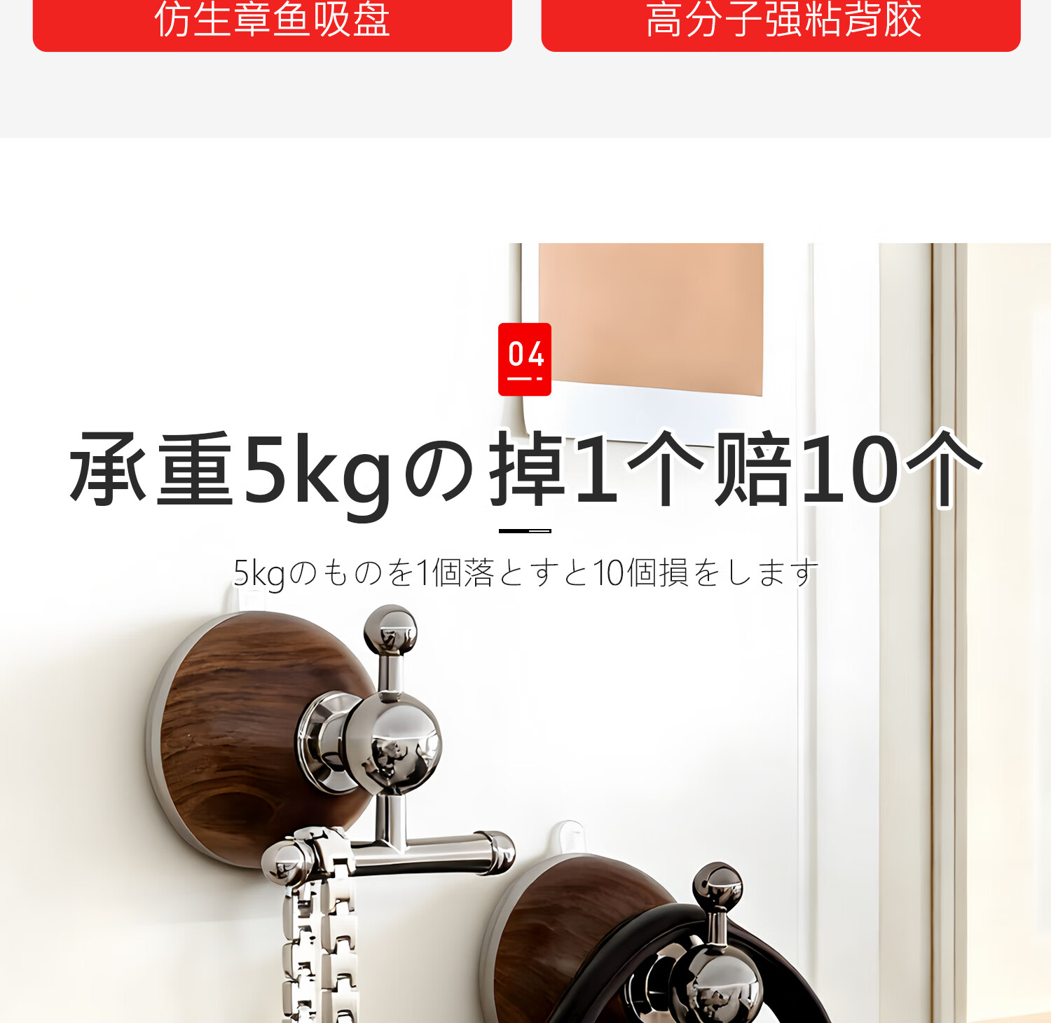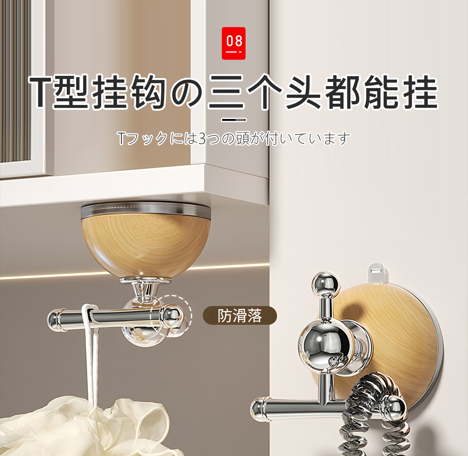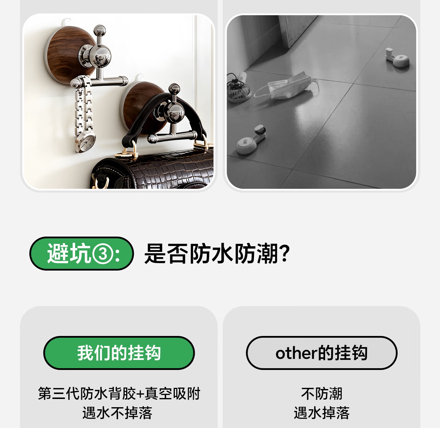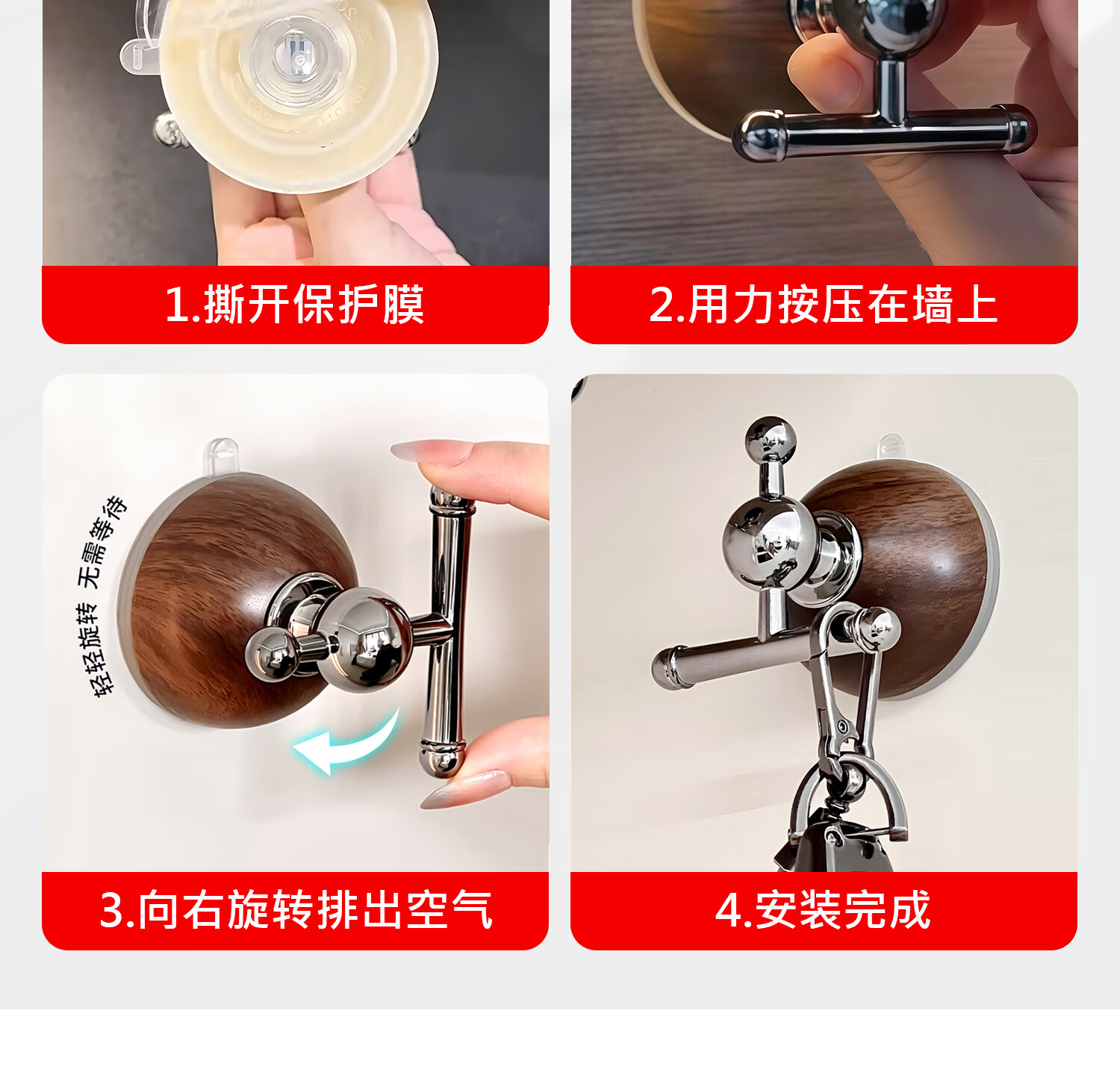吱凡日本吸盘式真空挂钩强力承重无痕免打孔浴室卫生间挂衣钩旋转粘钩 【3个装】月光白+胡桃木色+原木色