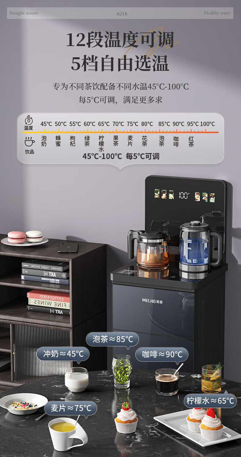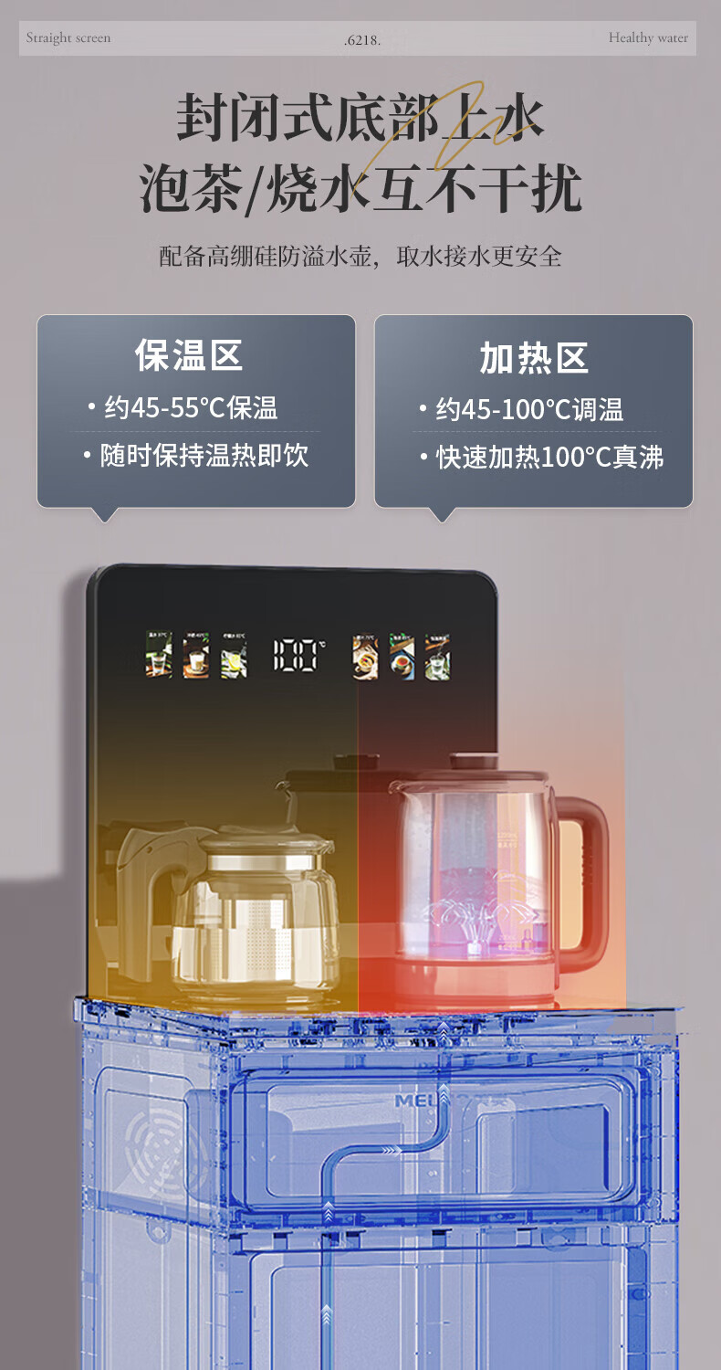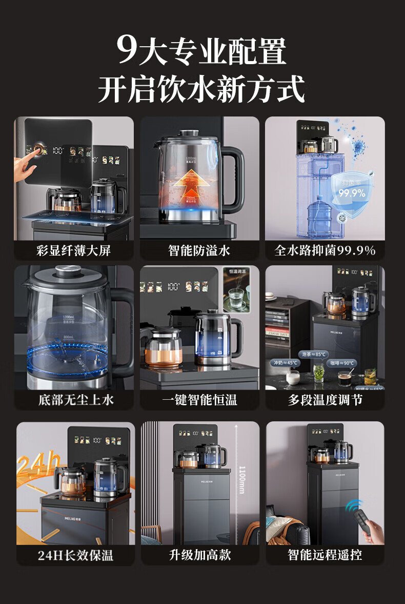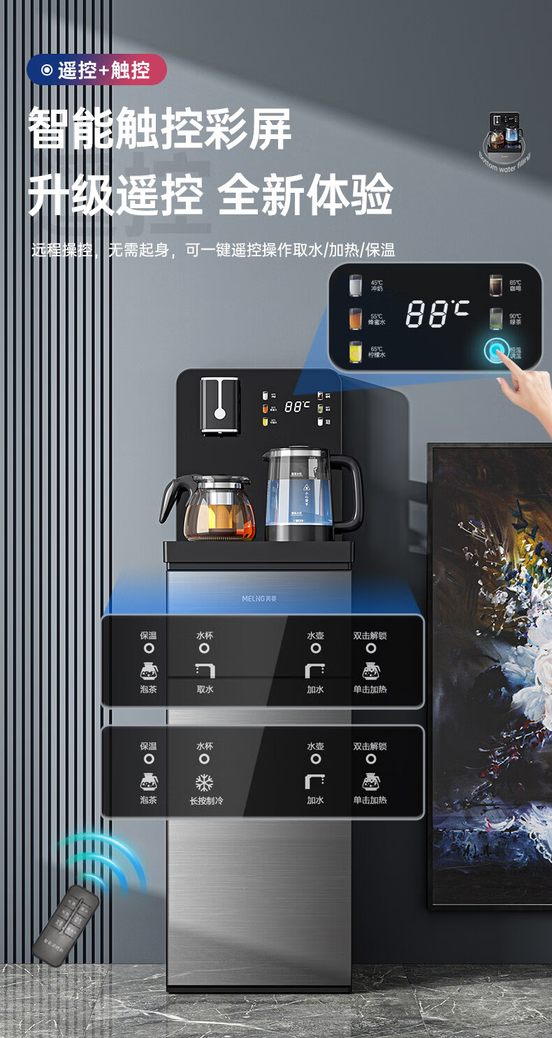 美菱(MeiLing)茶吧机 家用多功能智能遥控温热型立式饮水机 高颜轻奢【24H保温】 制热型
