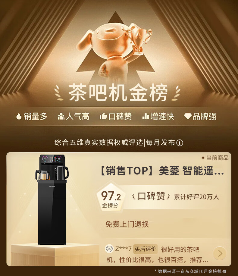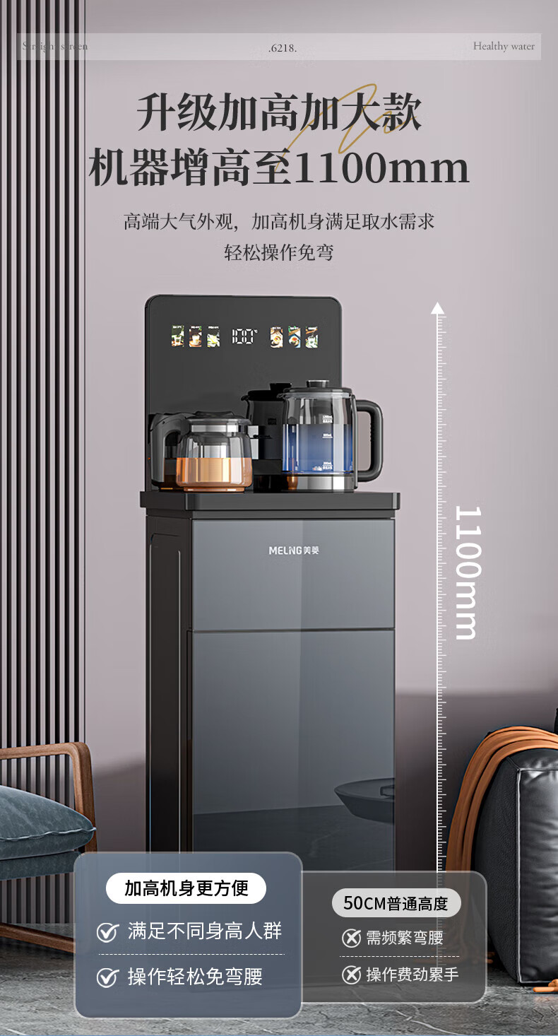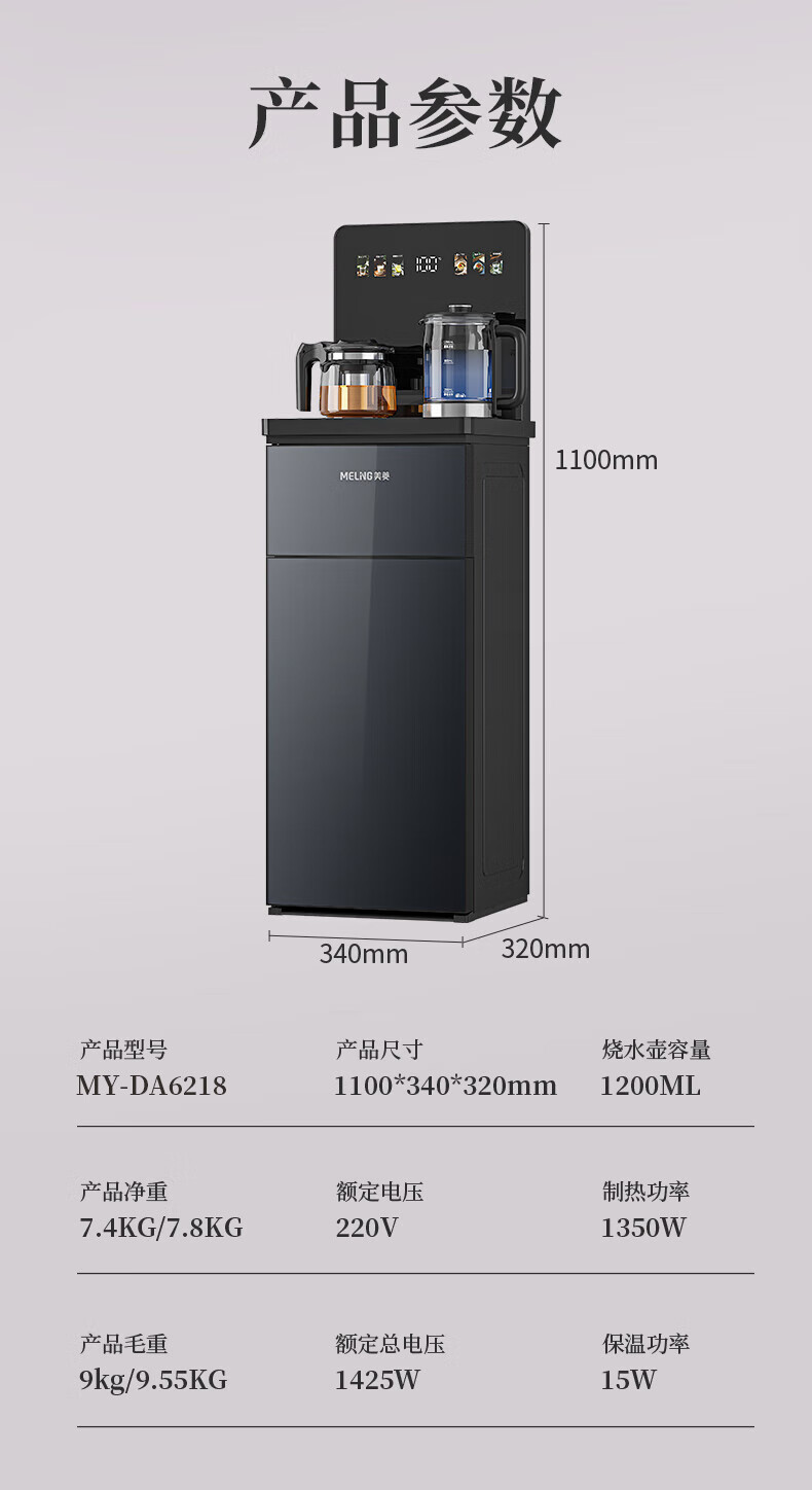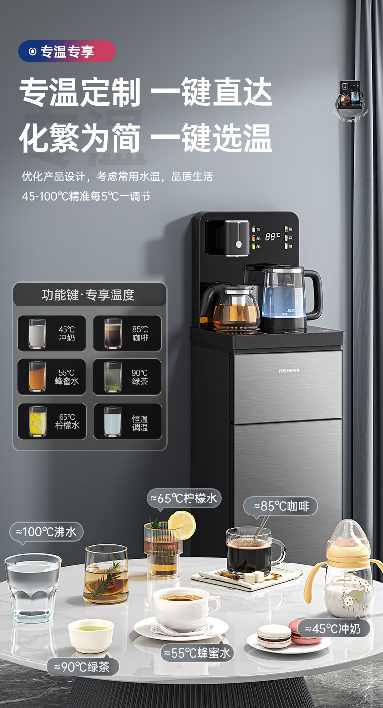美菱(MeiLing)茶吧机 家用多功能智能遥控温热型立式饮水机 高颜轻奢【24H保温】 制热型