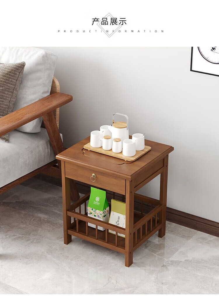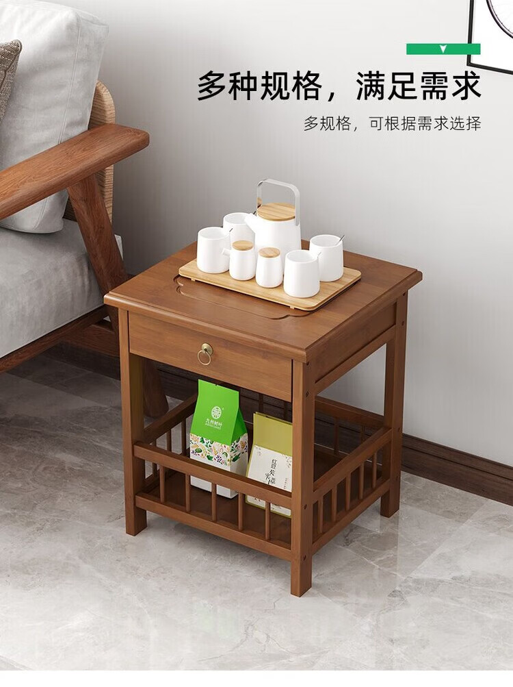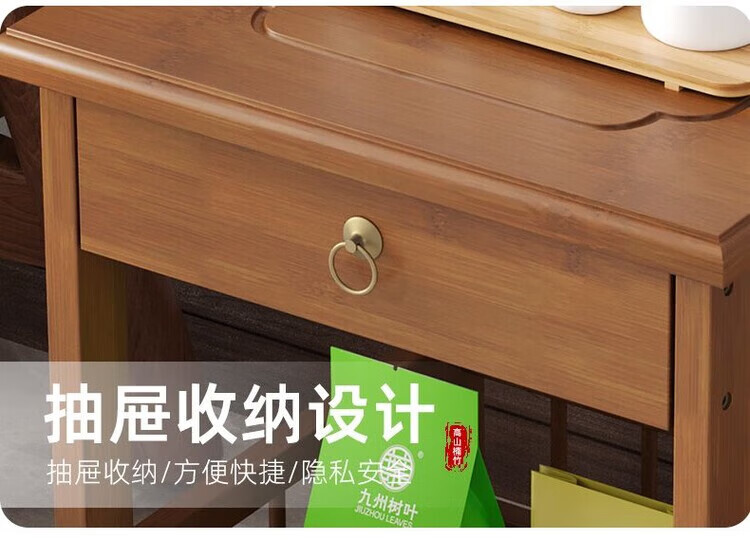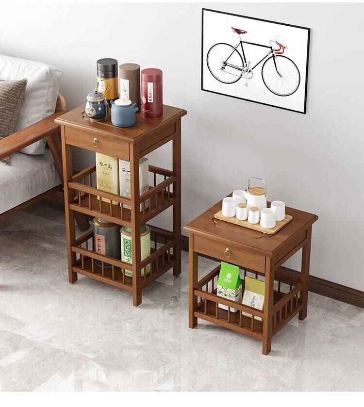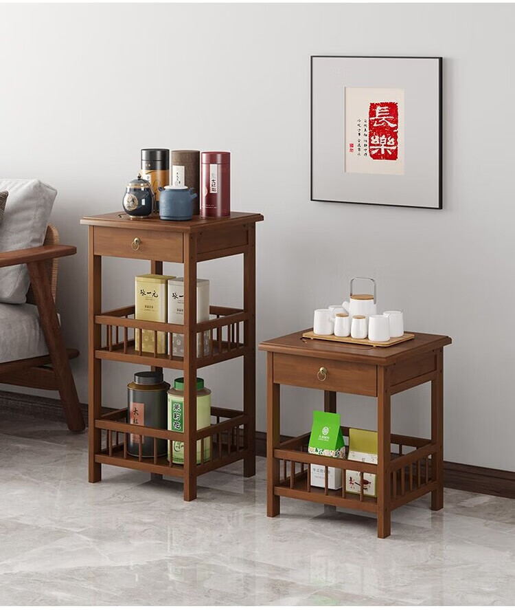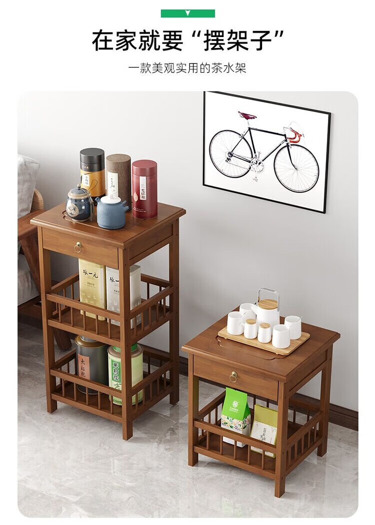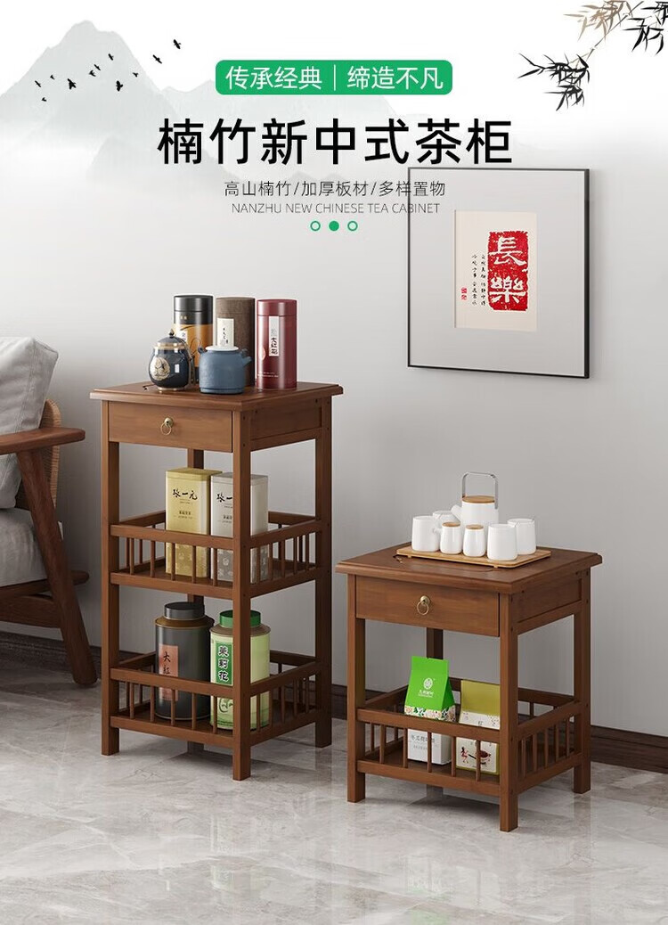 倘然之家简易茶水柜中式博古架小型茶几客厅家用边几置物架方桌茶叶收纳架 两层小号收纳架基础款 甄选高山楠竹新中式茶柜