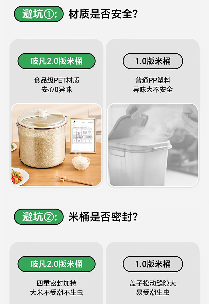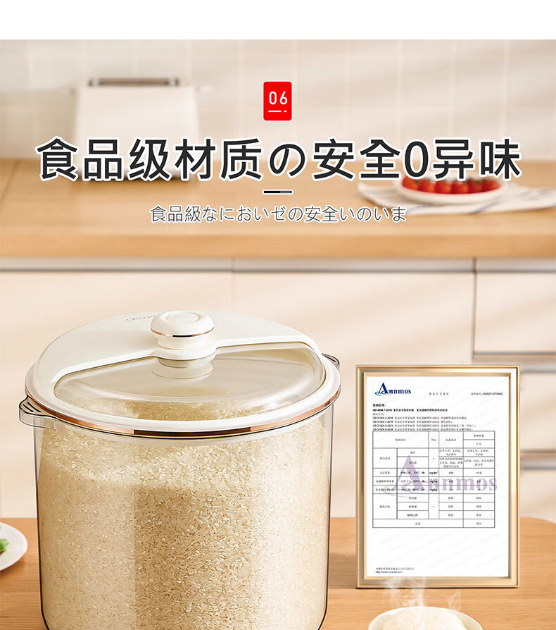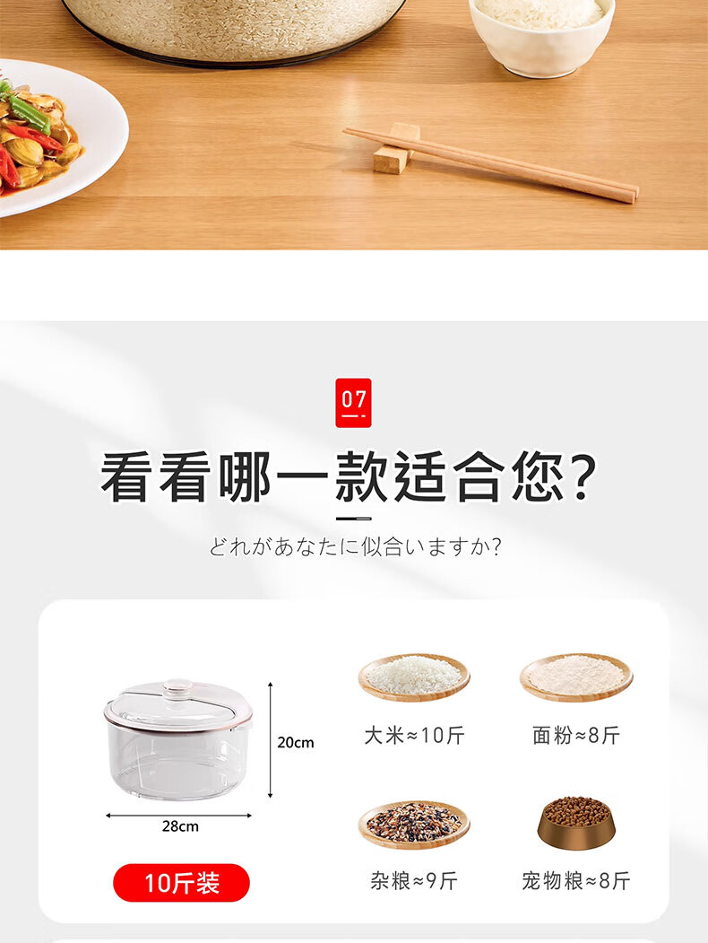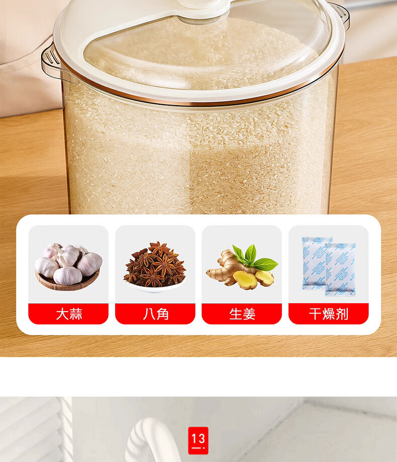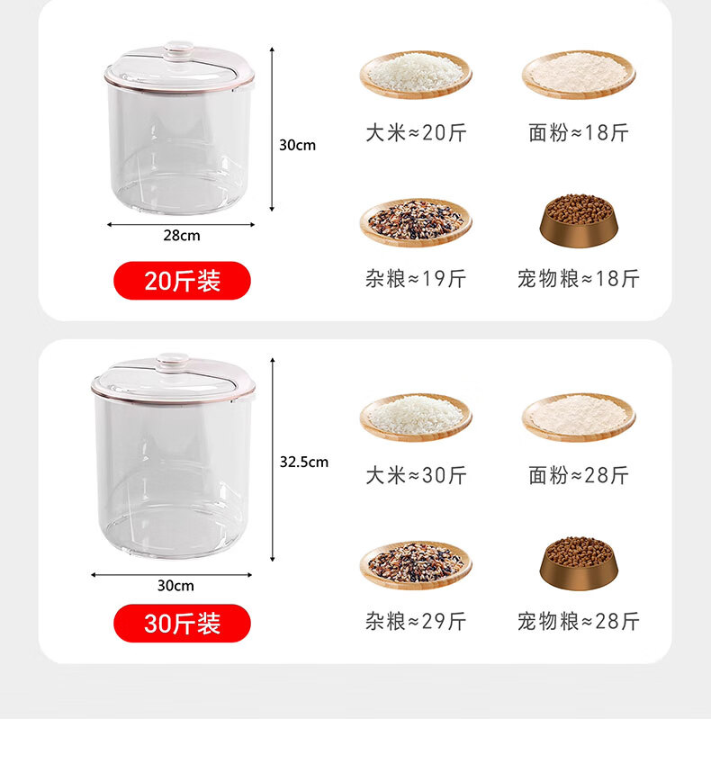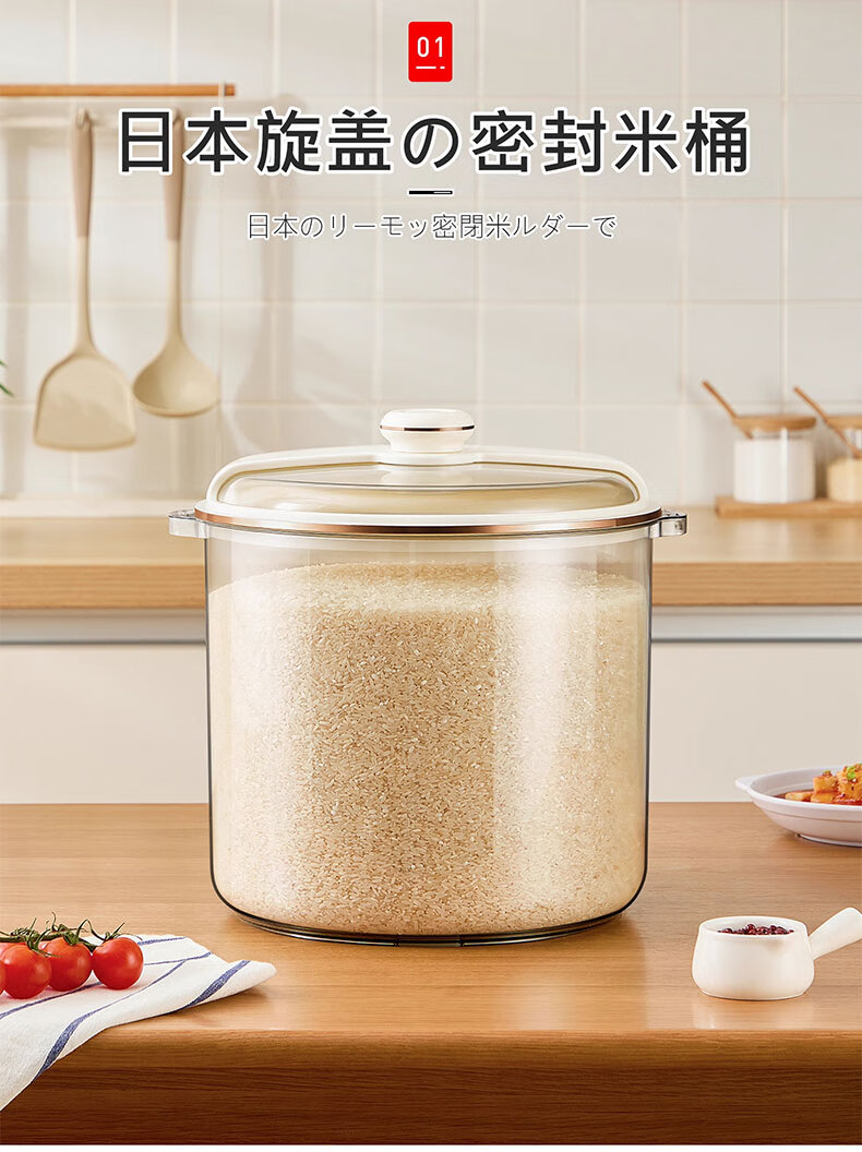 吱凡日本米桶家用密封防虫防潮食品级储米桶米箱大米面粉储存容器米缸 10斤小号28*20cm【四重密封 | 防虫防潮】