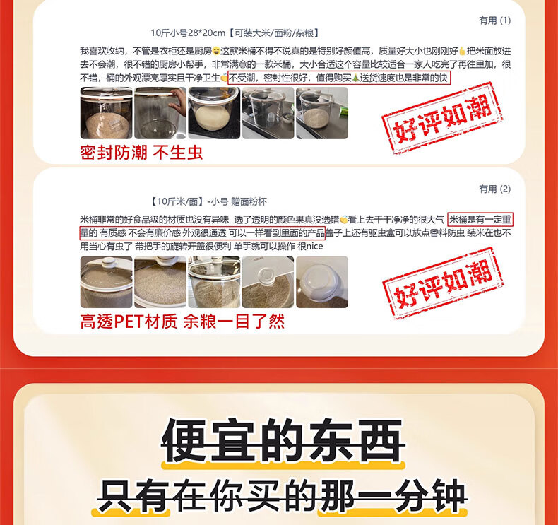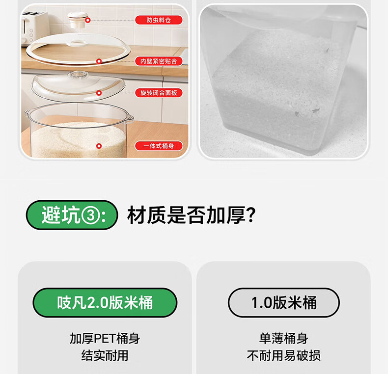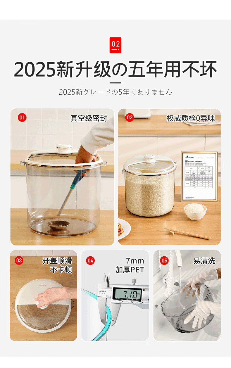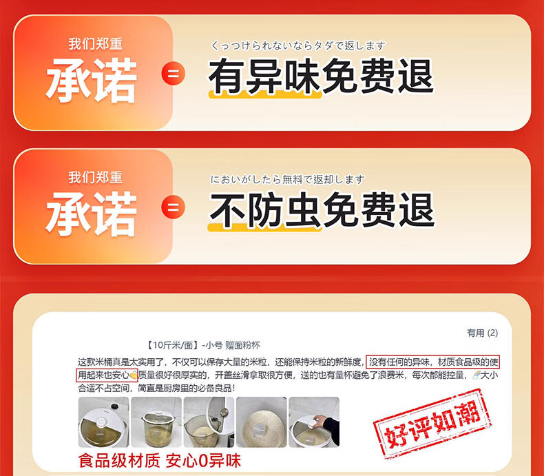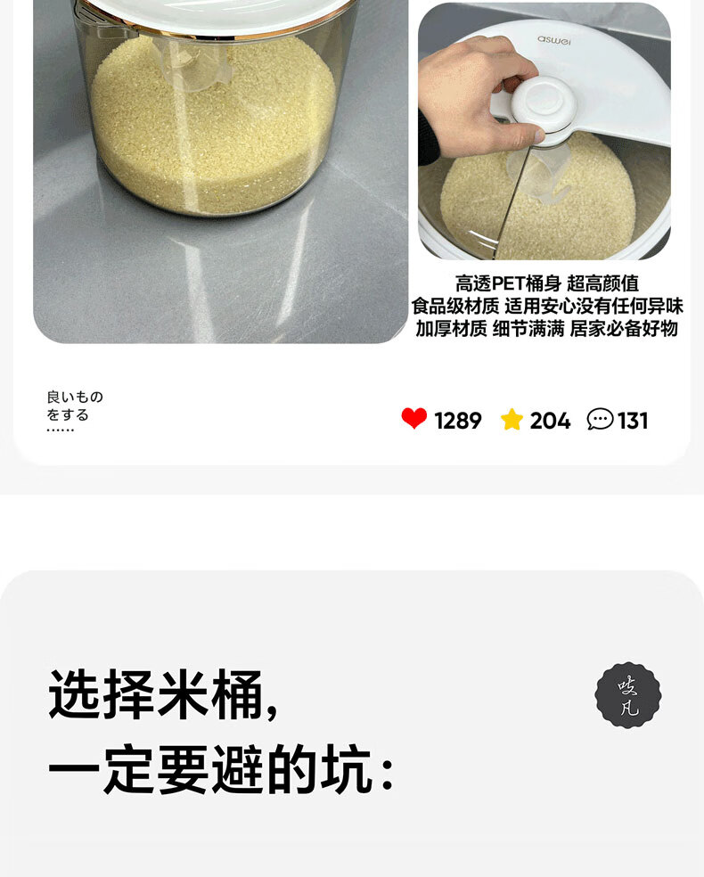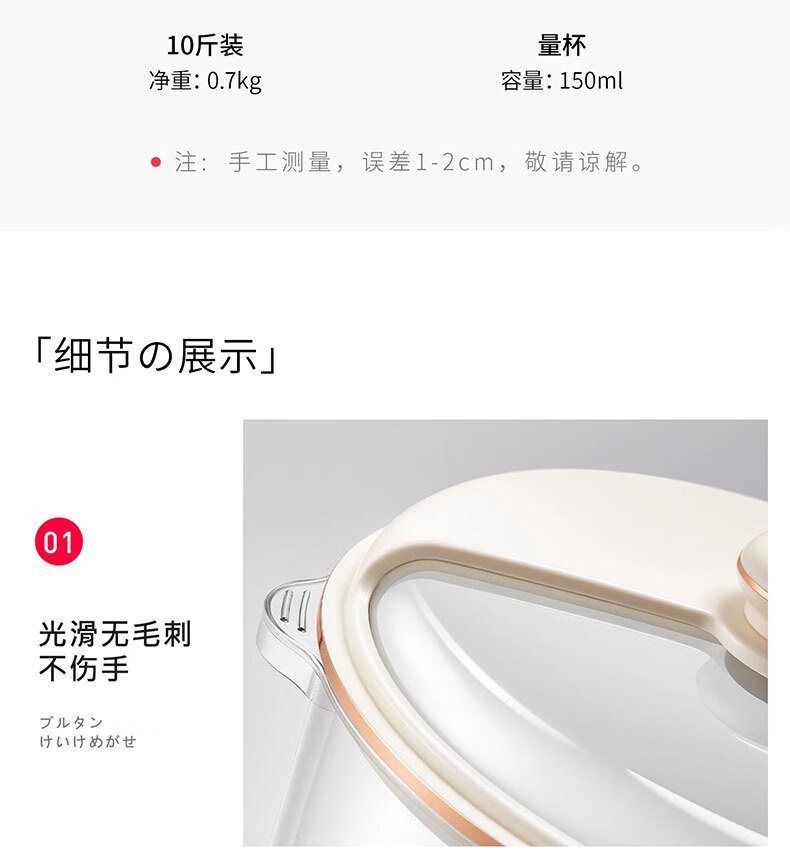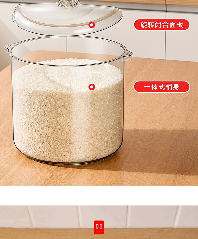吱凡日本米桶家用密封防虫防潮食品级储米桶米箱大米面粉储存容器米缸 10斤小号28*20cm【四重密封 | 防虫防潮】