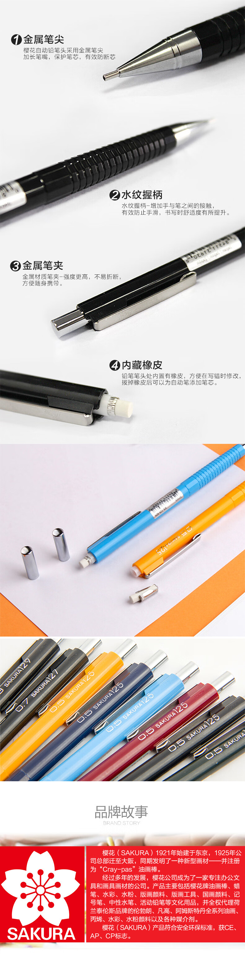 樱花(SAKURA)防断自动铅笔热门商品活动铅笔绘图铅笔 避震笔芯防断 0.5mm 黑色【日本进口】