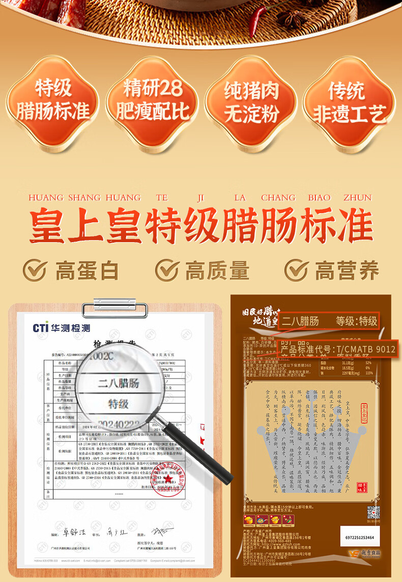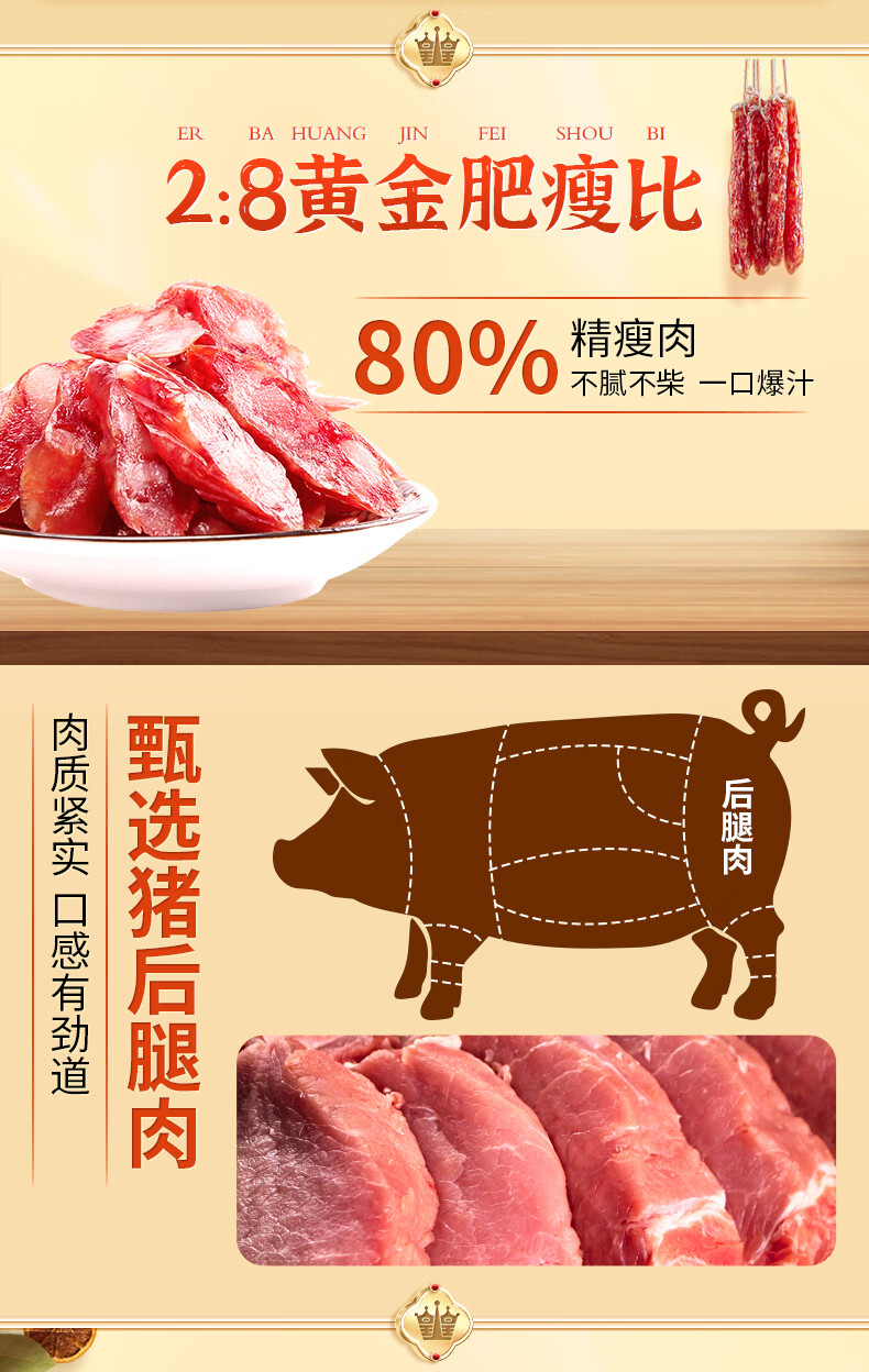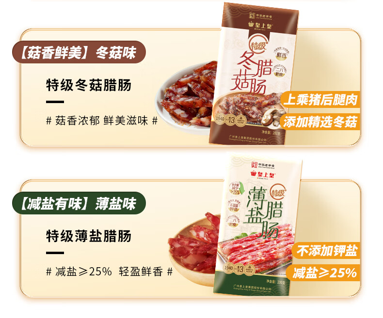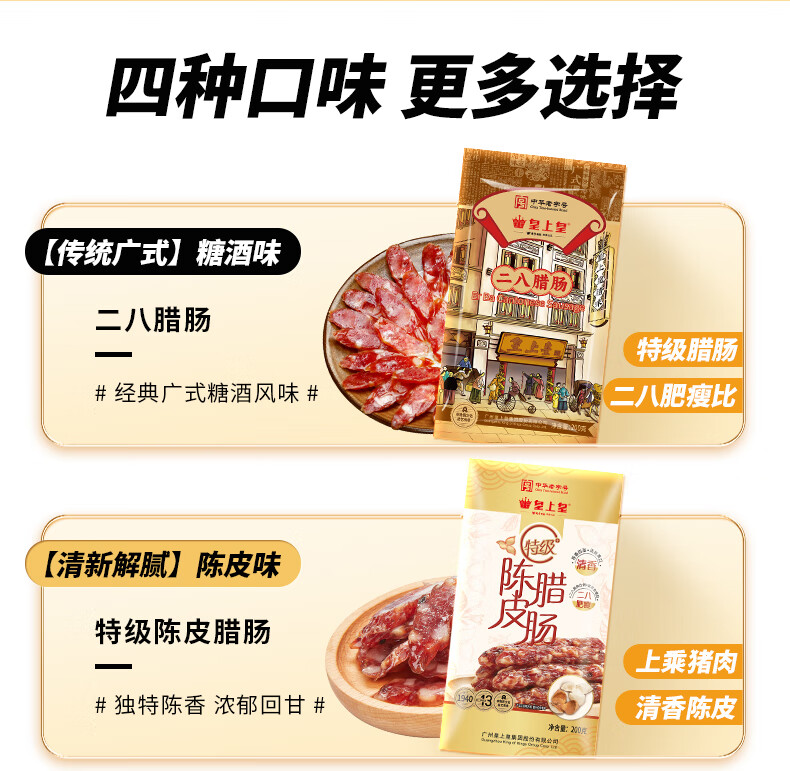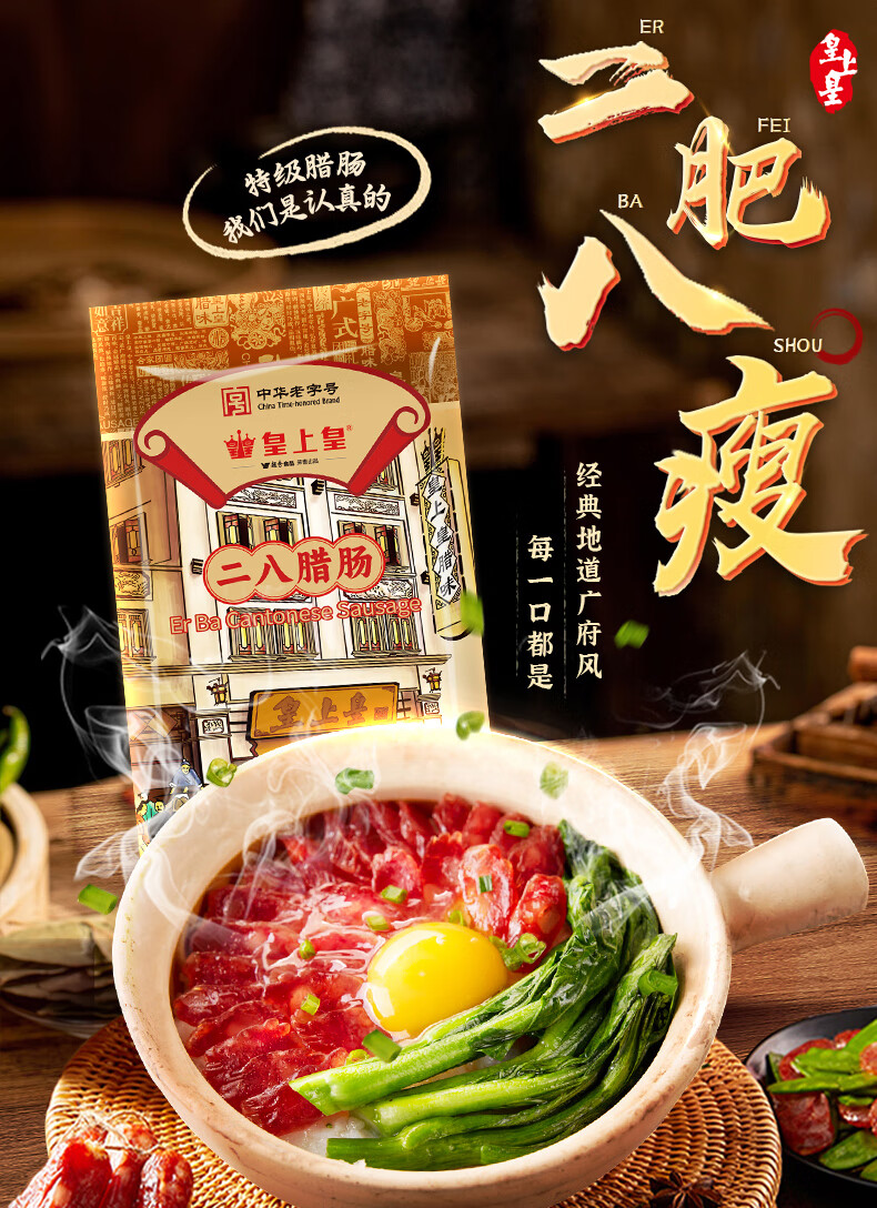 皇上皇特级二八薄盐腊肠广式煲仔饭腊肠广东甜肠广州腊味特产200g