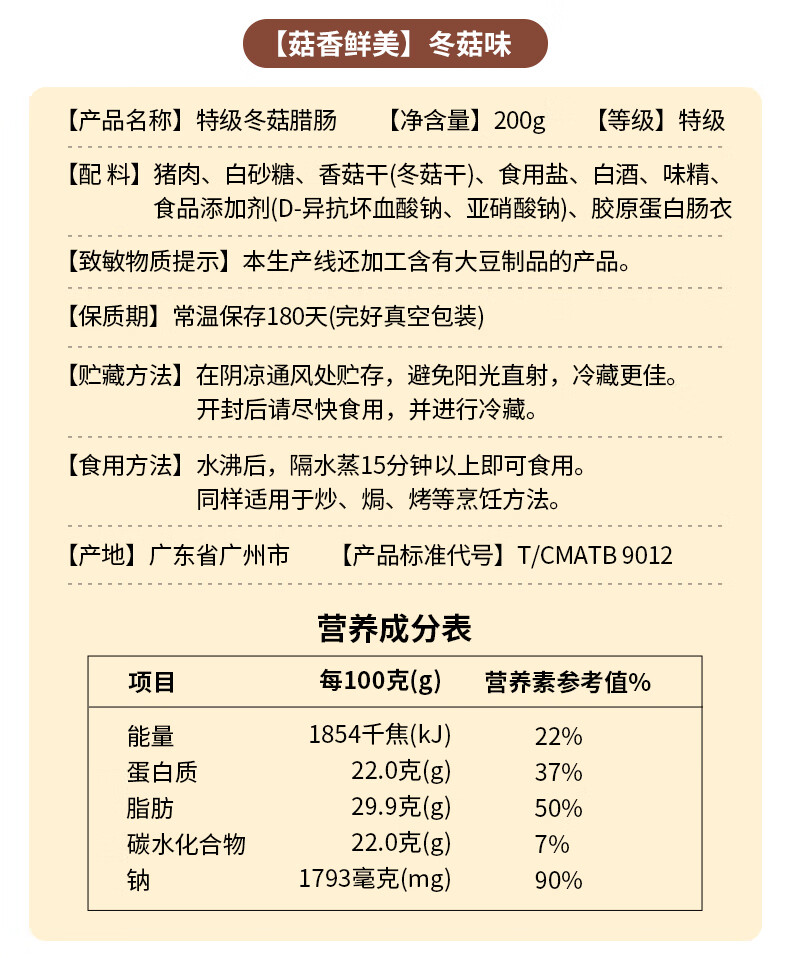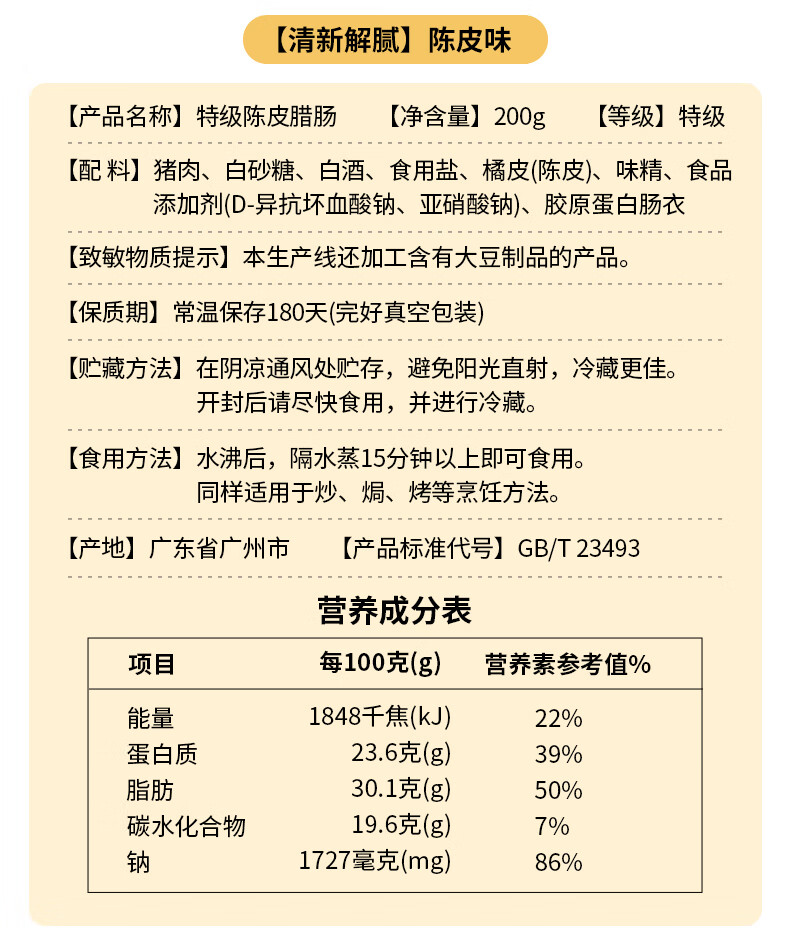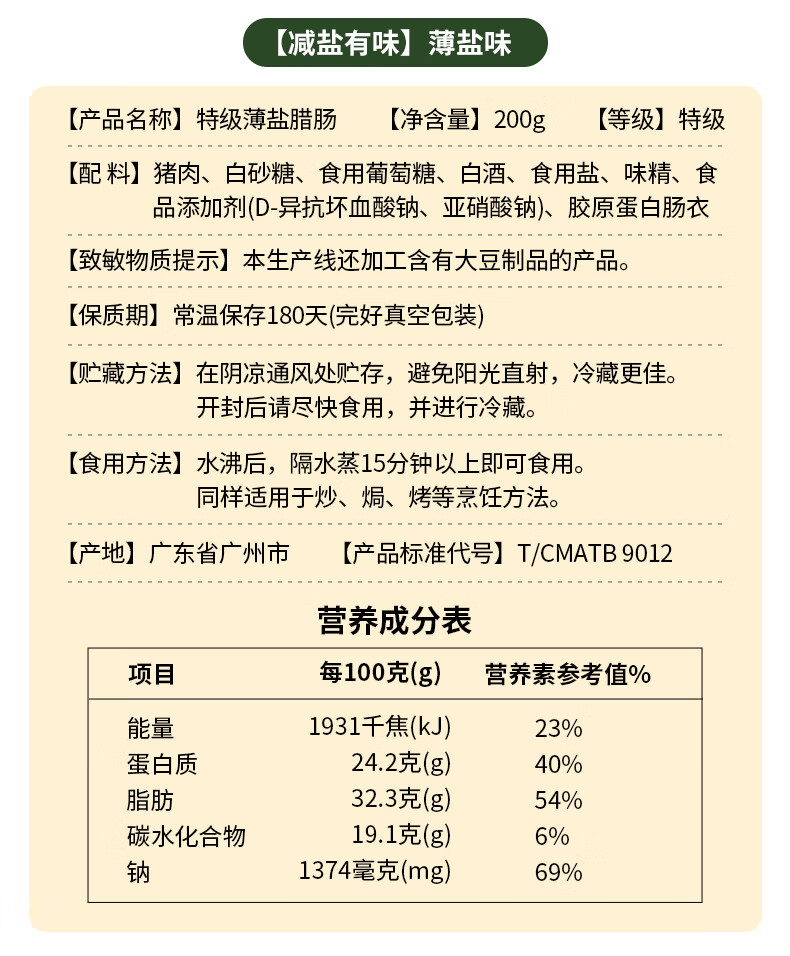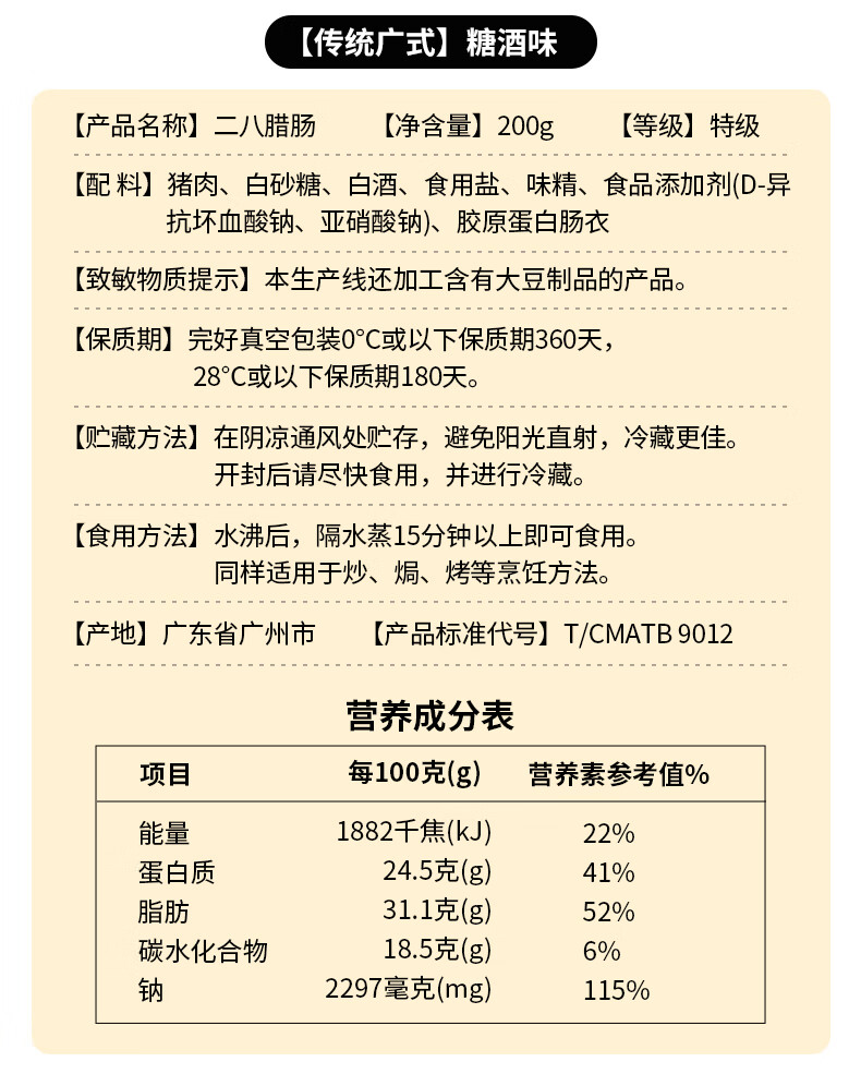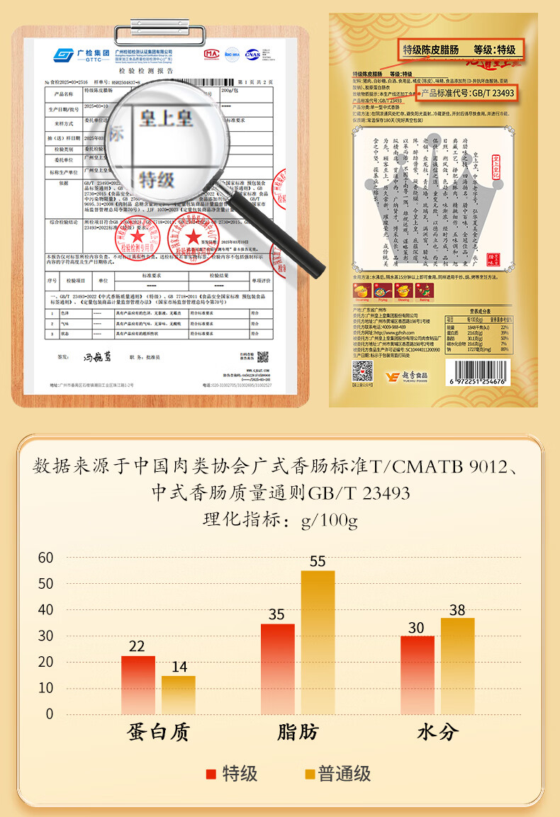 皇上皇特级二八薄盐腊肠广式煲仔饭腊肠广东甜肠广州腊味特产200g
