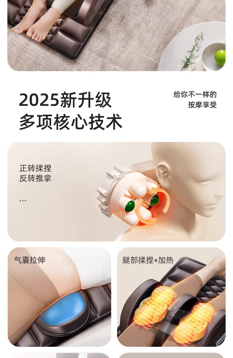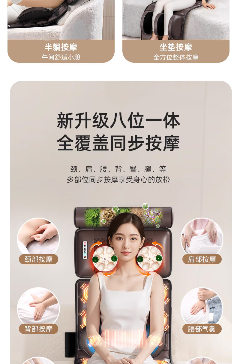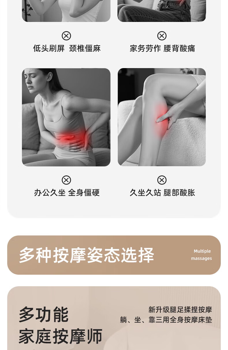 联想按摩器全自动揉捏全身颈椎按摩仪器腰背躺垫靠垫椅颈肩背一体 生日礼物送母亲长辈妈妈婆高档实用