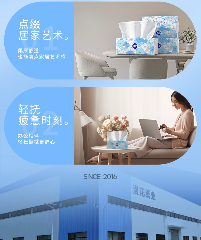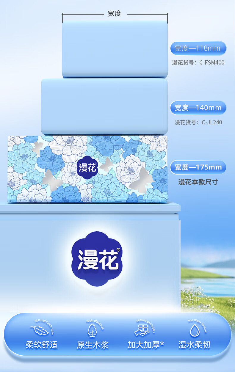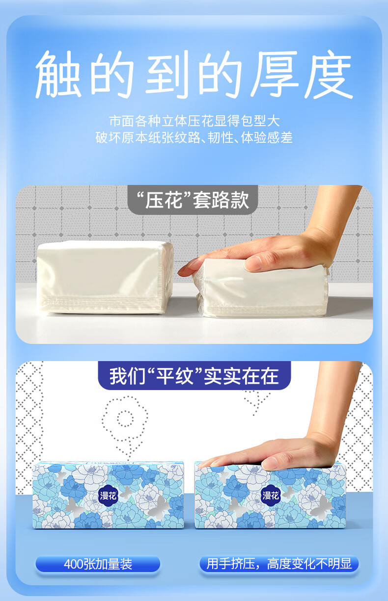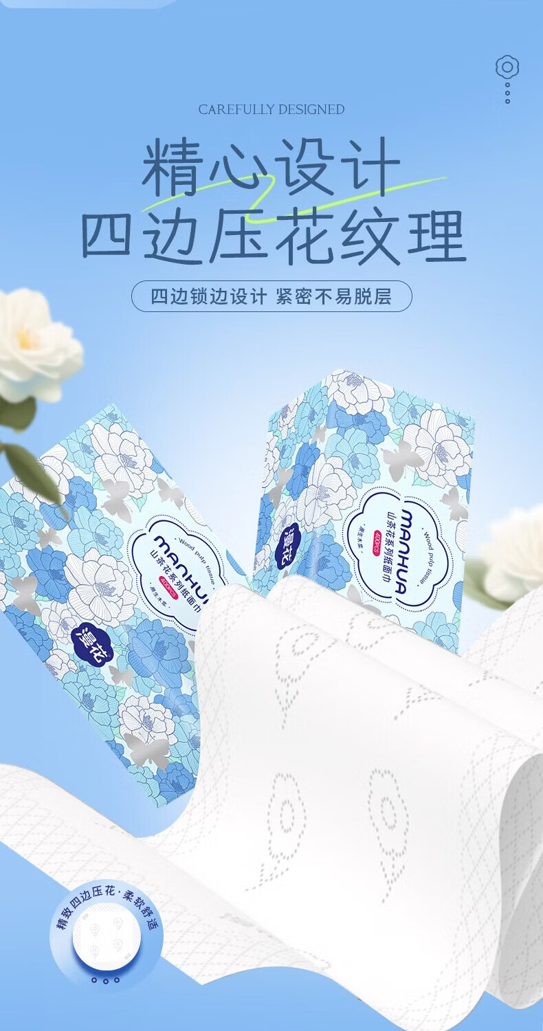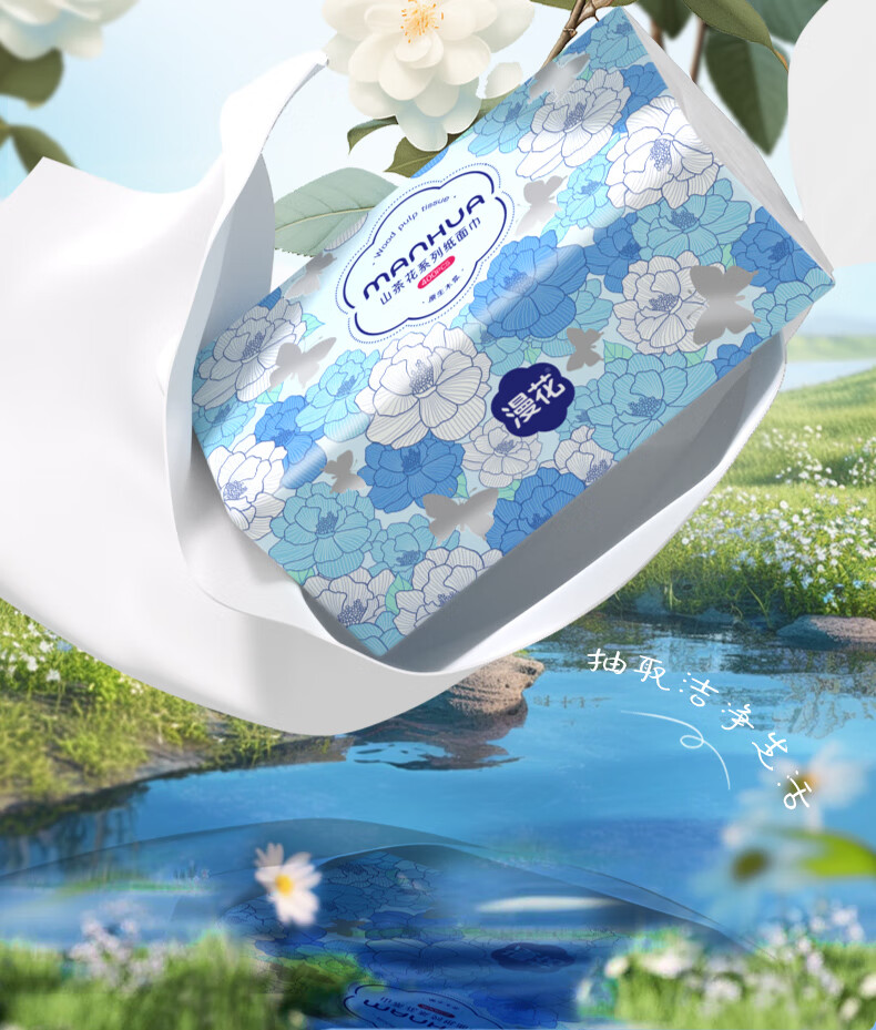漫花山茶花大包抽纸纸巾大尺寸餐巾纸面巾纸擦手家用卫生纸原木纸抽纸 山茶花抽纸 5层 400张*18包
