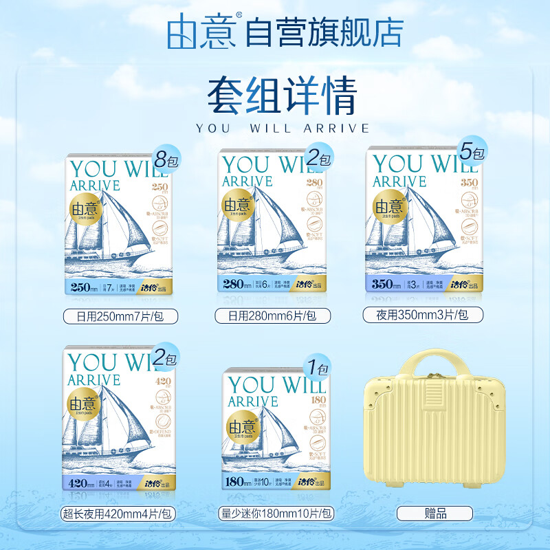 由意卫生巾薄款日夜套合整箱组合18包101片赠行李箱 京东自营
