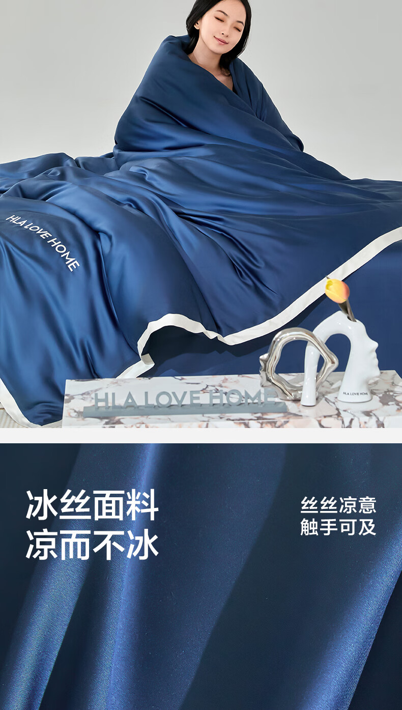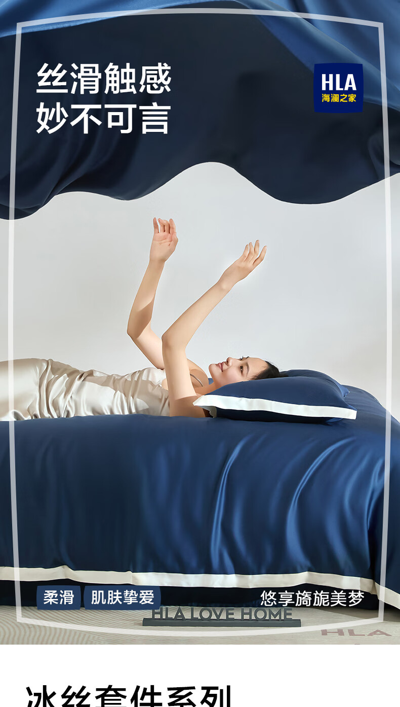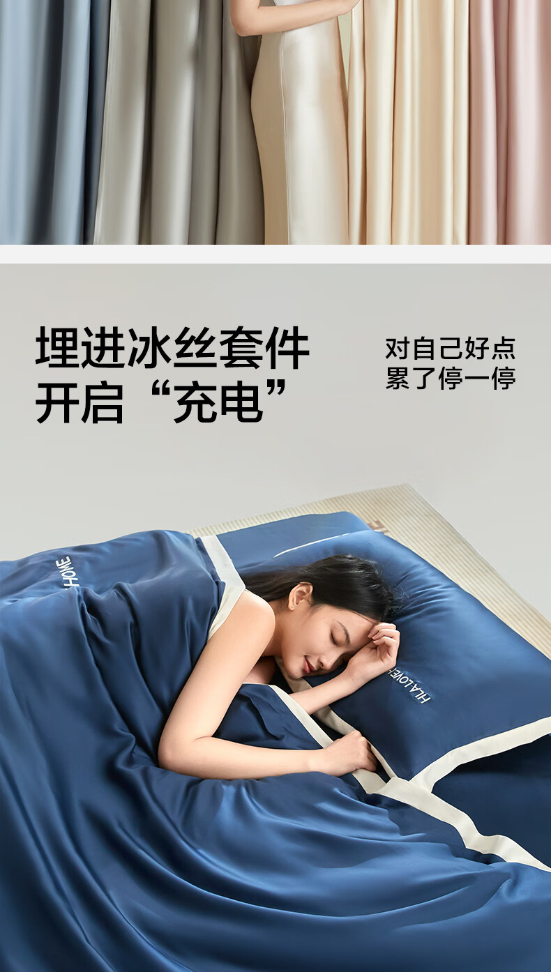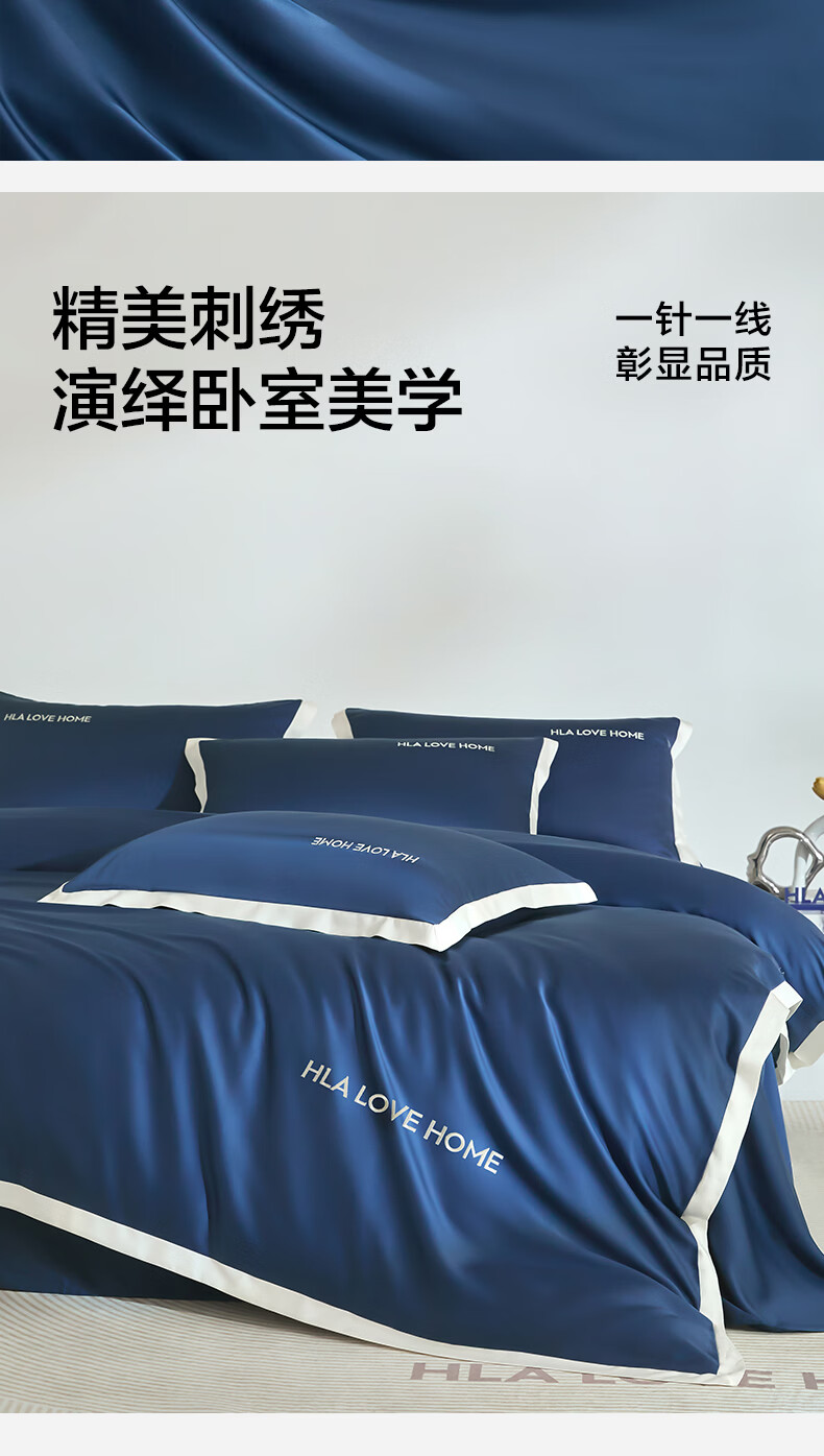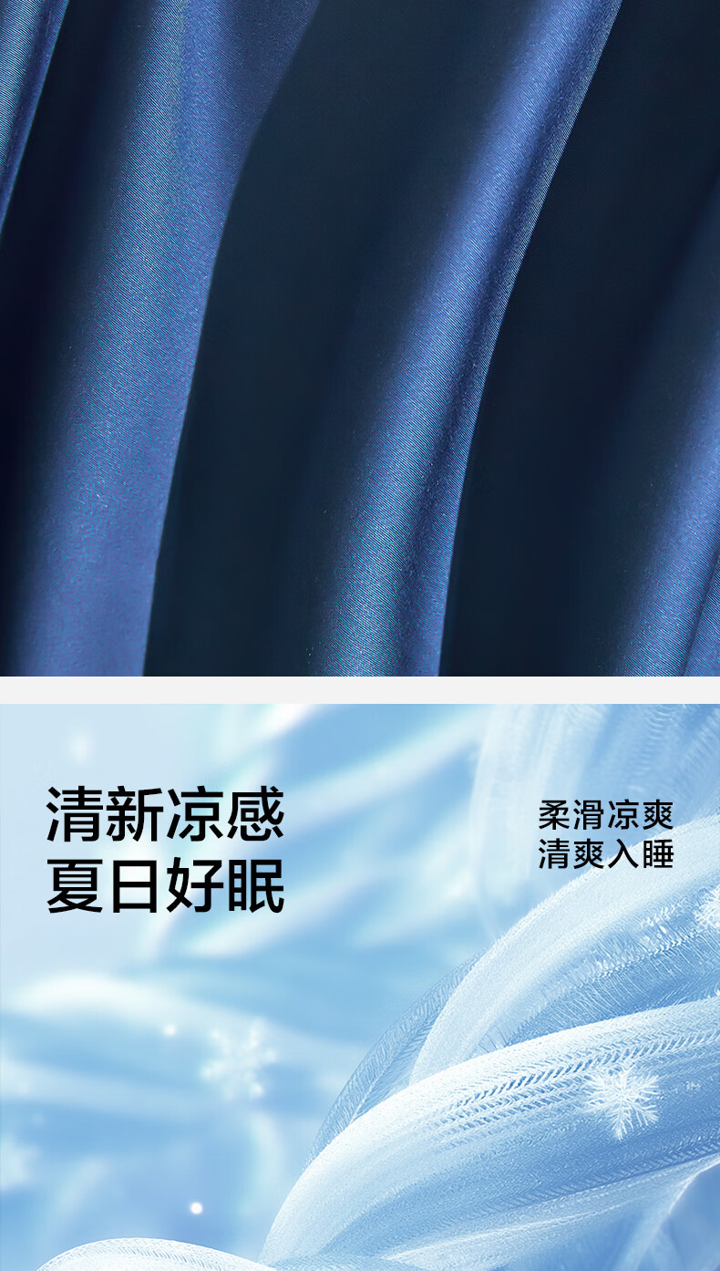 海澜之家(HLA)抗菌冰丝四件套A类裸睡单人夏天凉感轻奢套件床单被罩床上三件套 深蓝【抗菌冰丝 A类裸睡级】 三件套被套150*200 床单款 160*230