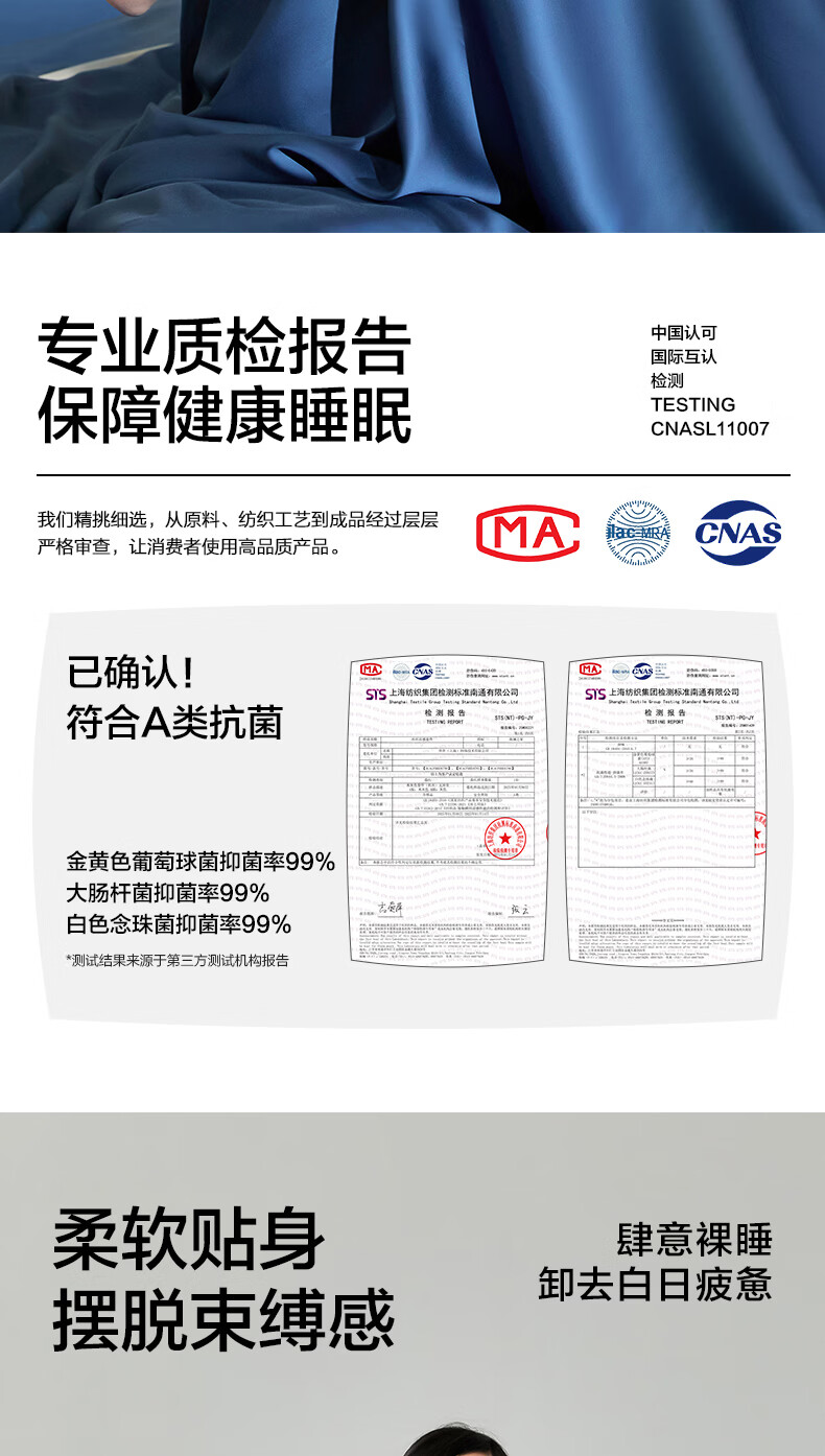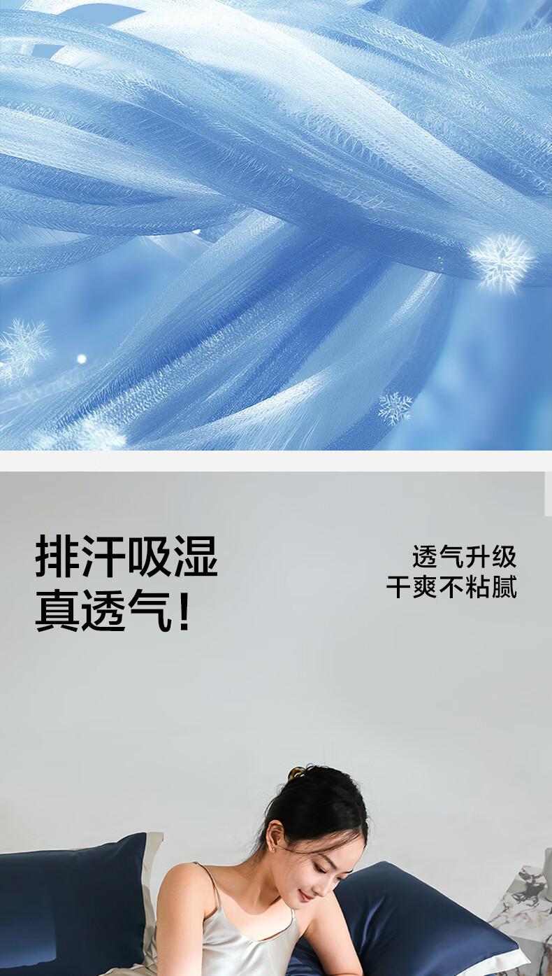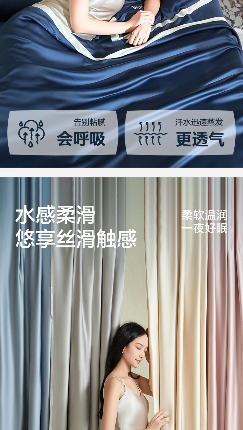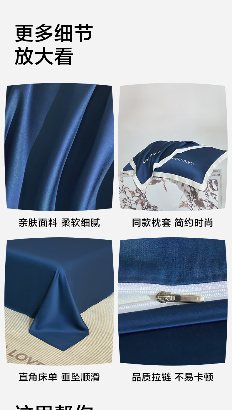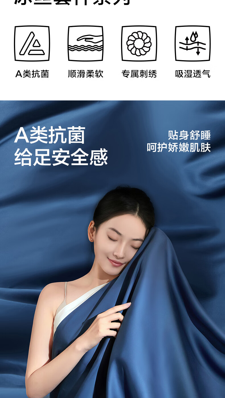 海澜之家(HLA)抗菌冰丝四件套A类裸睡单人夏天凉感轻奢套件床单被罩床上三件套 深蓝【抗菌冰丝 A类裸睡级】 三件套被套150*200 床单款 160*230