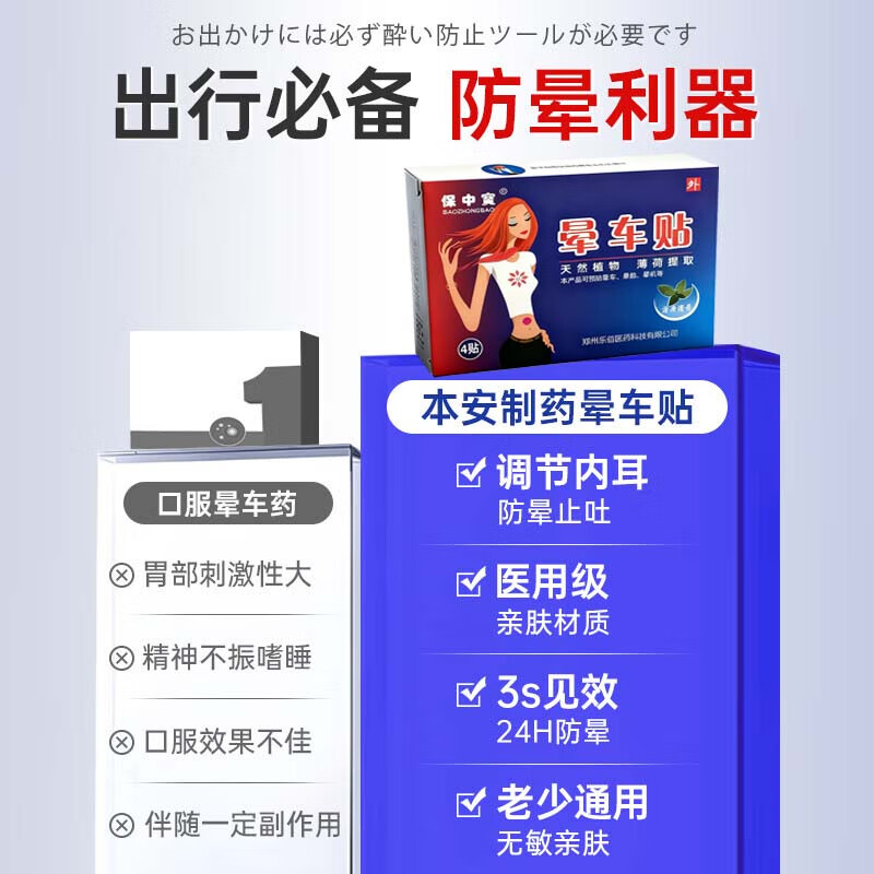 保中寳晕车神器 儿童晕车贴成人 晕车药晕车贴 防晕车贴老年人 6岁以上 1盒【4贴装】