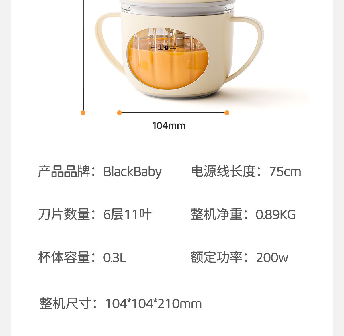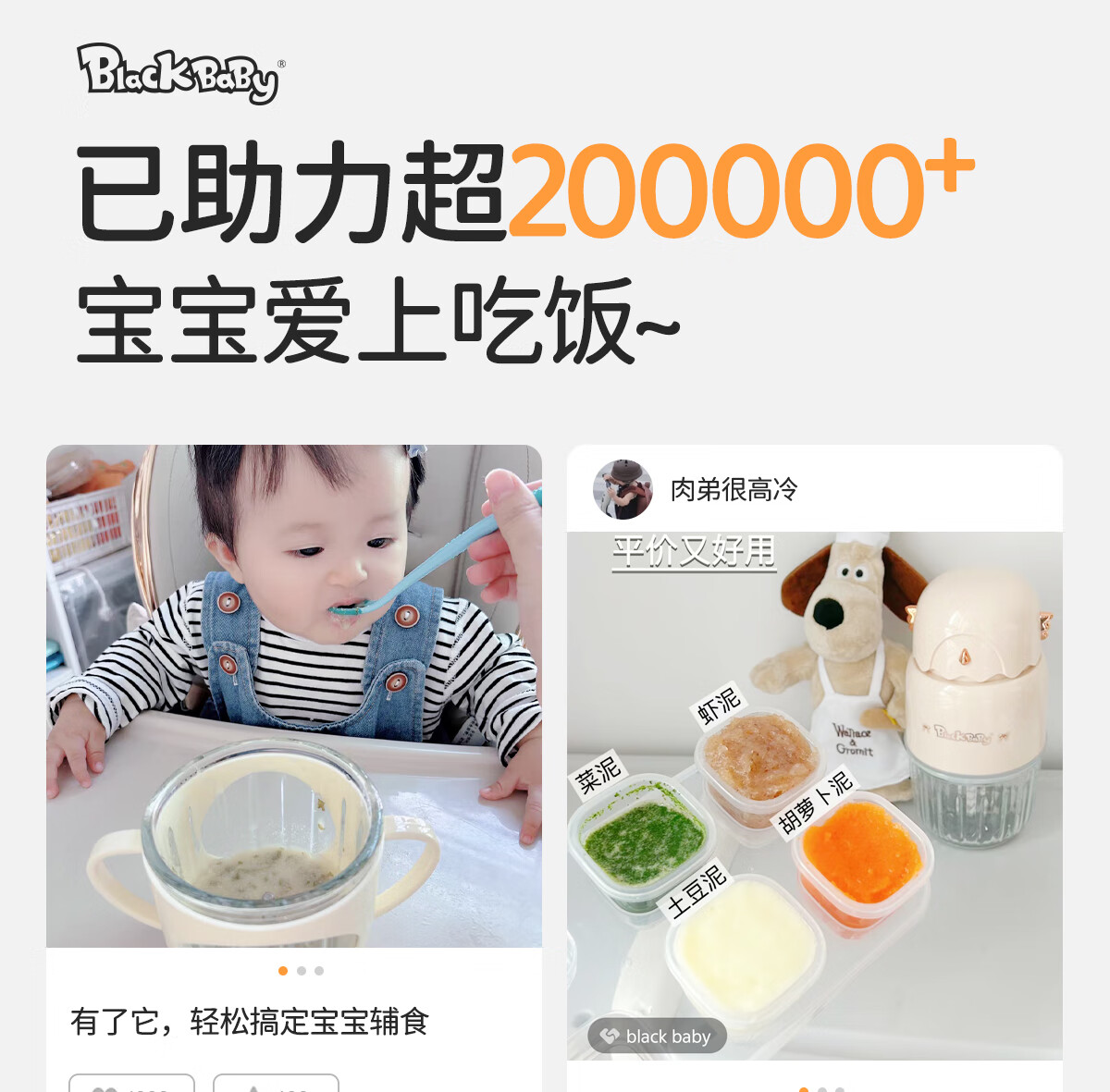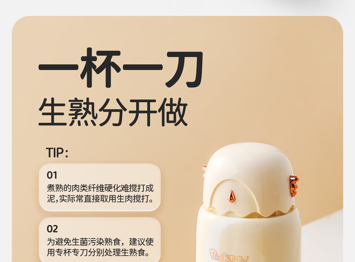 BLACK BABY辅食机婴儿打泥机料理机 多功能研磨搅拌一体宝宝米糊机辅食工具 【8叶刀-单杯单刀】肉蔬果打泥