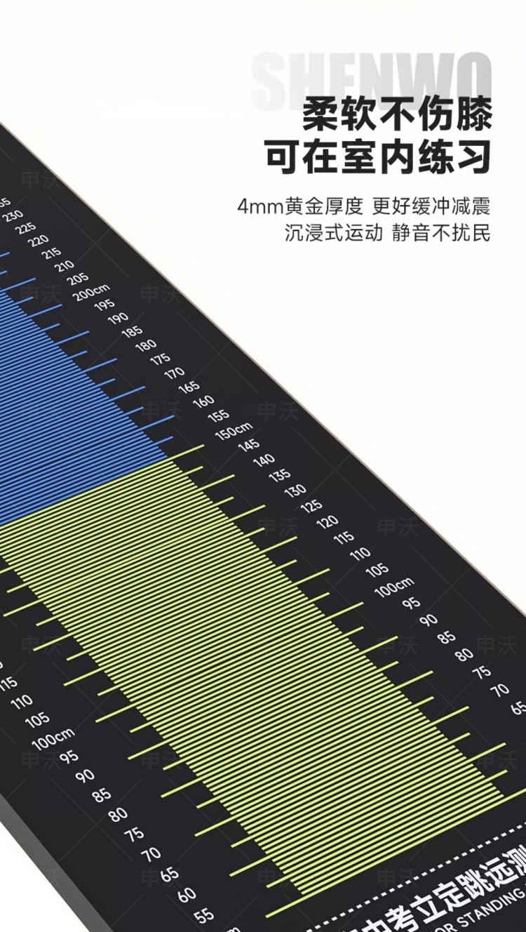 申沃立定跳远测试专用垫子防滑家用训练中考跳远考试垫体育学生 【中考专用款】330*90cm*4mm【距离刻度70-280CM】