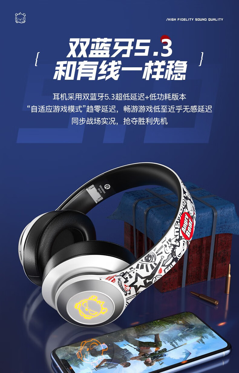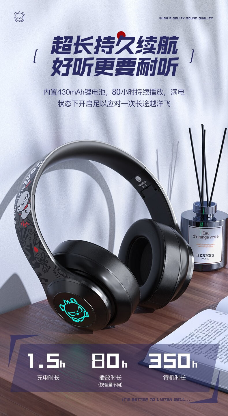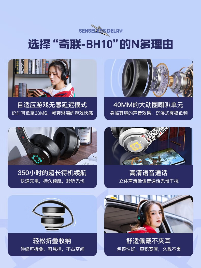 奇联BH10蓝牙耳机头戴式无线重低音降噪电竞吃鸡游戏耳麦适用于苹果安卓手机台式笔记本电脑男女生 升级版白色-RGB呼吸灯-80H续航
