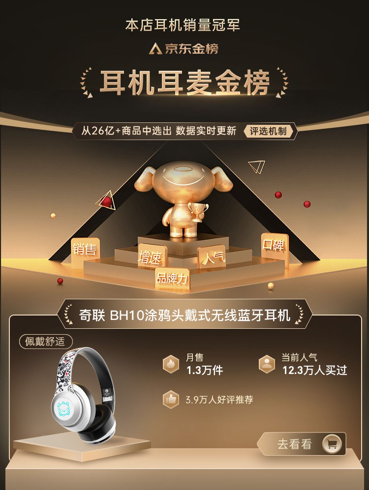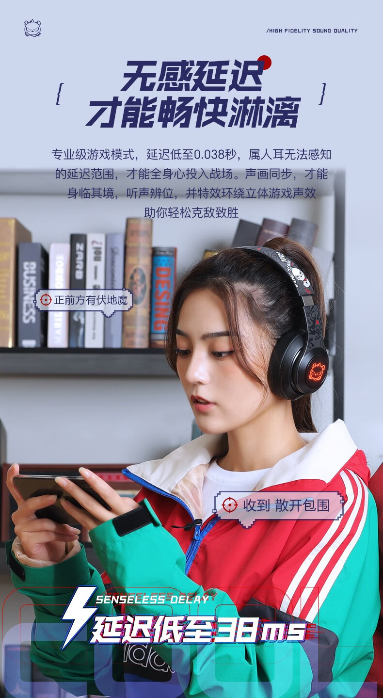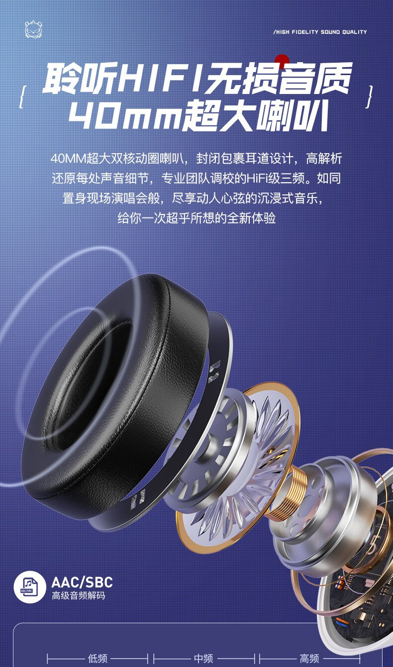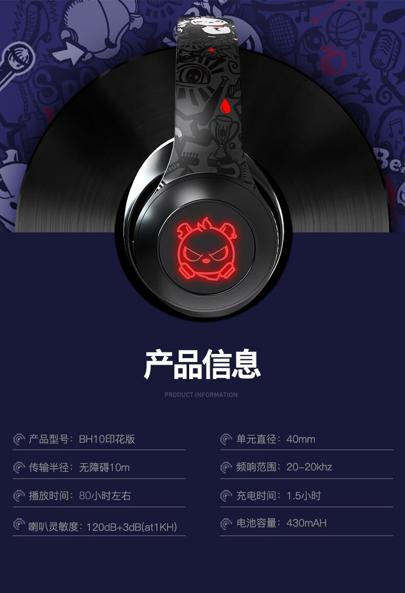 奇联BH10蓝牙耳机头戴式无线重低音降噪电竞吃鸡游戏耳麦适用于苹果安卓手机台式笔记本电脑男女生 升级版白色-RGB呼吸灯-80H续航