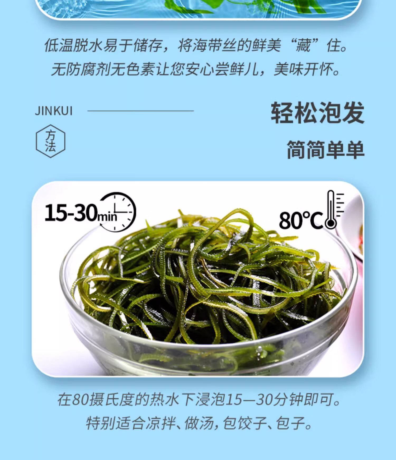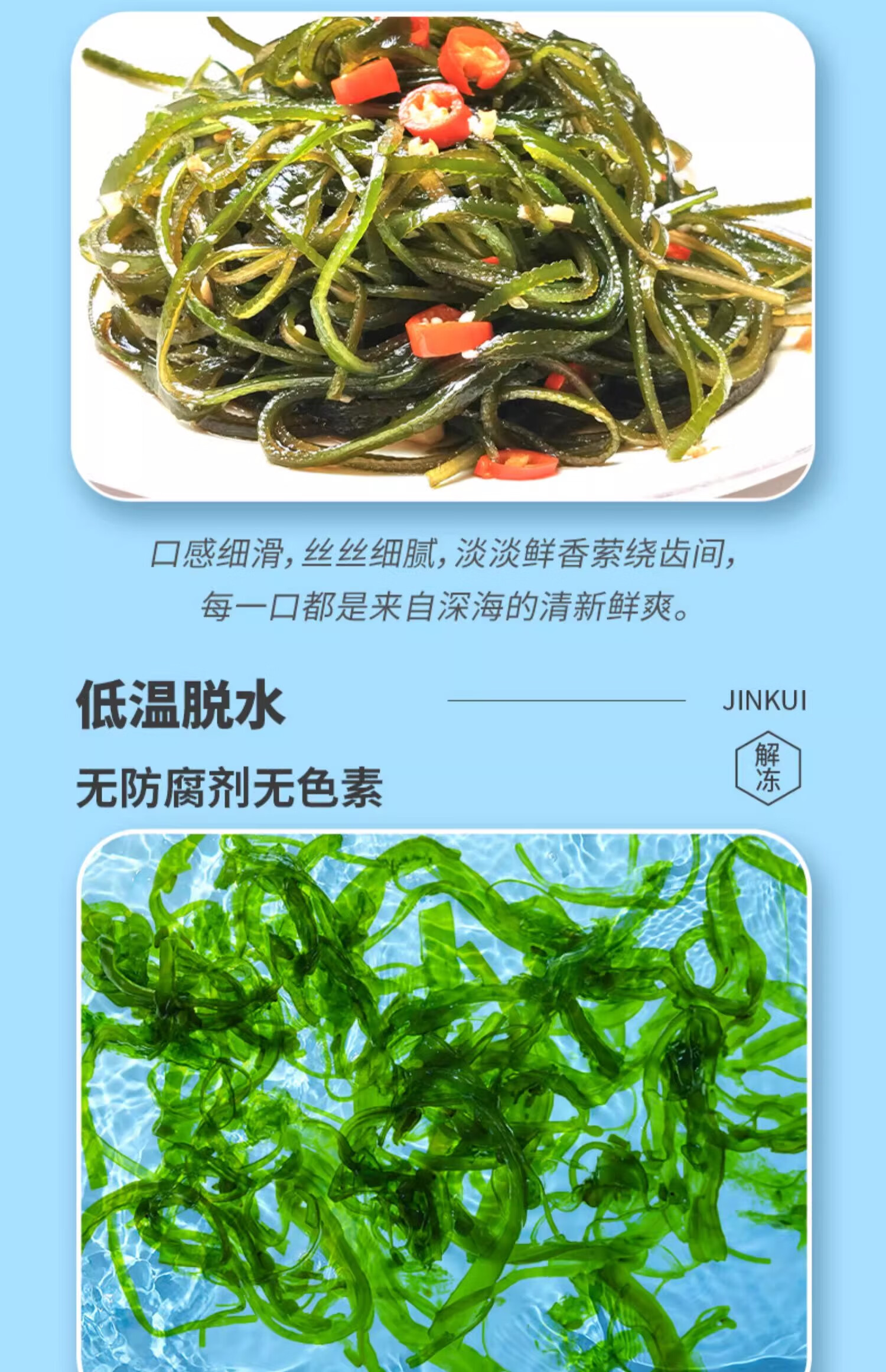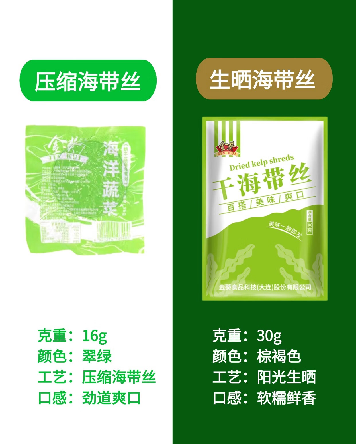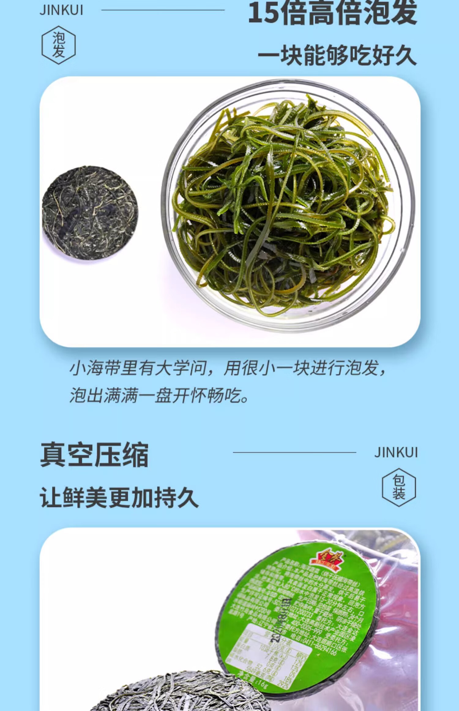 金葵0脂压缩海带丝真空干海带丝泡发海带丝烘干海带丝凉菜 96g (压缩海带丝16g*6块)
